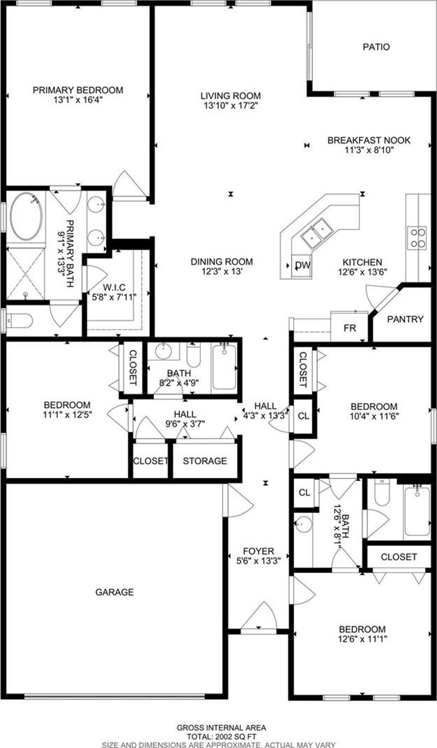 The split-bedroom floor plan ensures privacy for the primary suite, while the additional bedrooms are connected by a convenient Jack-and-Jill bathroom. The kitchen serves as the heart of the home, centrally located to keep everyone connected during meals or gatherings. Enjoy your mornings or evenings on the covered patio that overlooks the peaceful backyard.