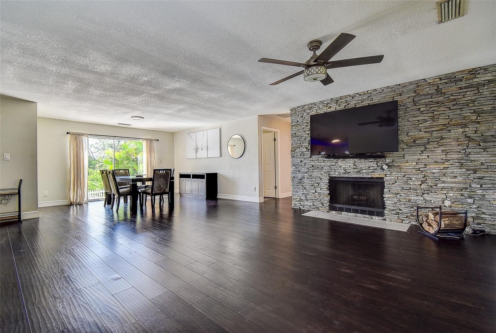 Welcome to this beautifully updated 3-bedroom, 2.5-bath solid block home featuring a 2-car garage and timeless curb appeal with a paver driveway and walkway. Step inside and you’ll immediately notice the warm, inviting atmosphere highlighted by a stunning custom rock accent wall makes the fireplace the focal point of the family room — the perfect centerpiece for cozy evenings or entertaining friends and family.