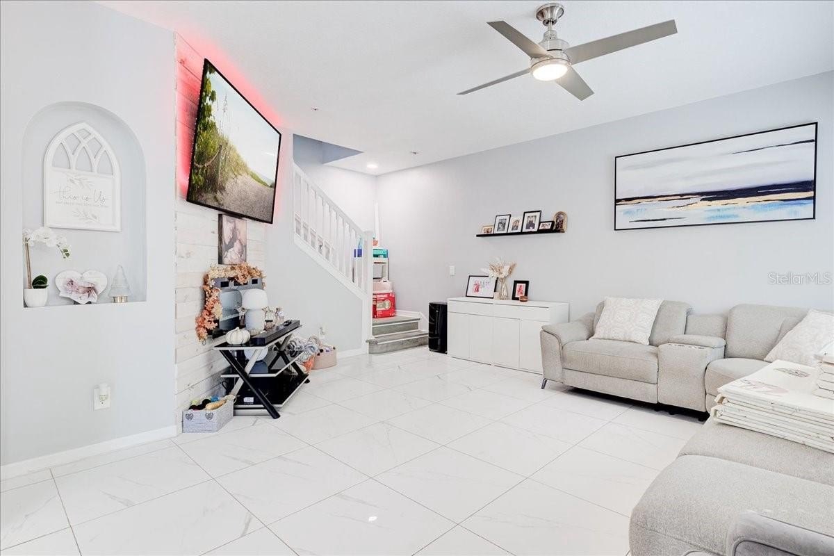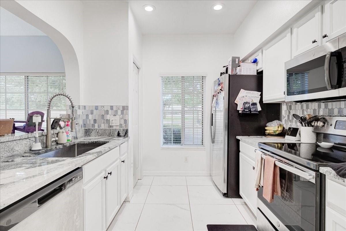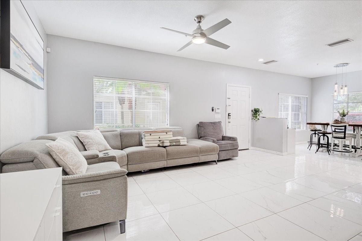 Welcome to this beautifully maintained home located in the desirable gated community of Lakeside Village, where all condo buildings surround a peaceful lake, creating a serene and inviting atmosphere. This home is truly move-in ready with all appliances replaced, A/C installed in 2019 and New Roof 2024. Inside, you'll find porcelain tile flooring downstairs and vinyl flooring/tile upstairs. The open and bright layout is enhanced by 2” window blinds on all windows and ceiling fans in every room, ensuring comfort and modern style throughout. The kitchen and bathrooms are finished with elegant granite countertops, adding a touch of luxury throughout.