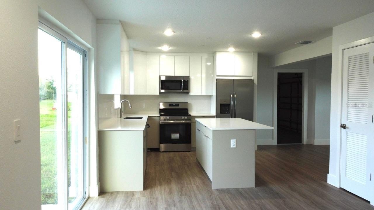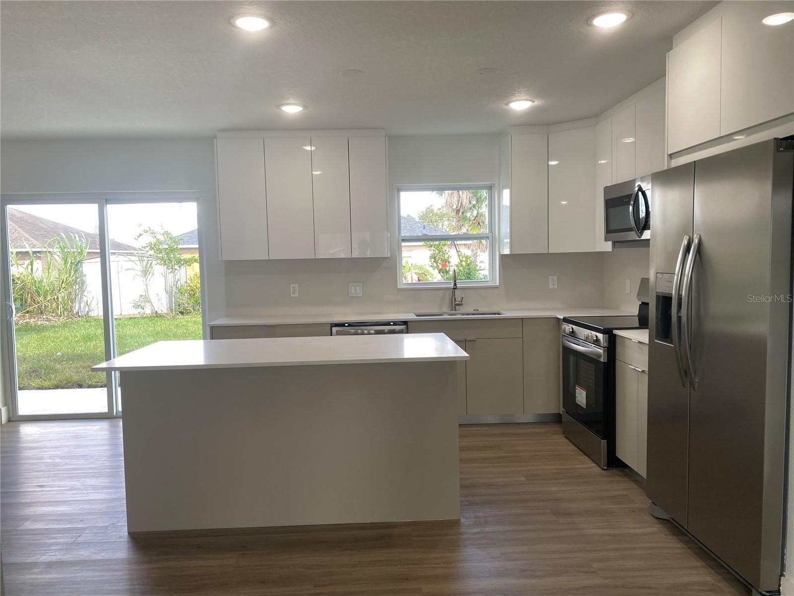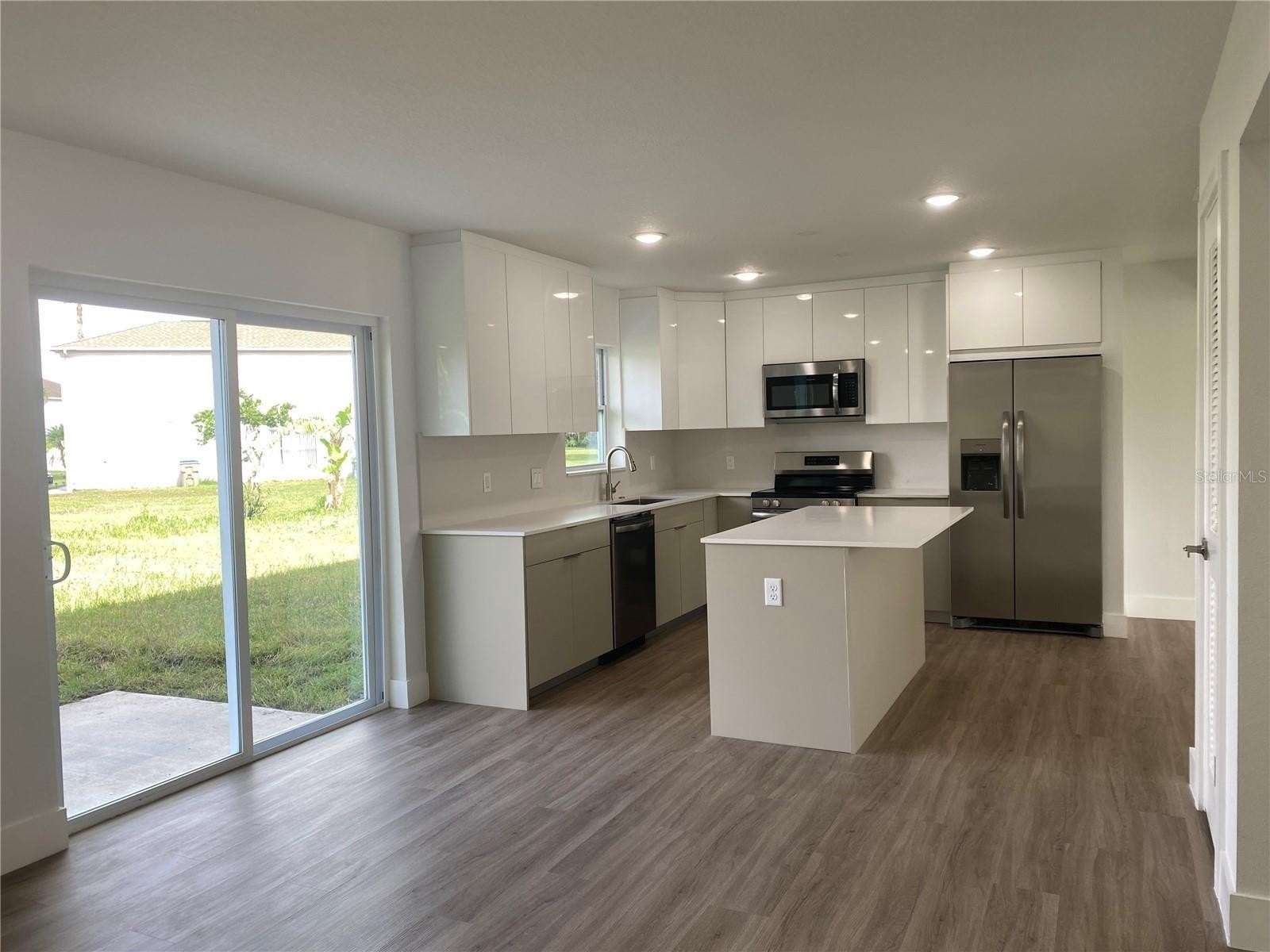 The kitchen features new stainless steel appliances, elegant quartz countertops, a full backsplash, and an oversized island ideal for entertaining. The roof was replaced in 2018. Enjoy a large fenced backyard with plenty of space for a pool or outdoor living area.