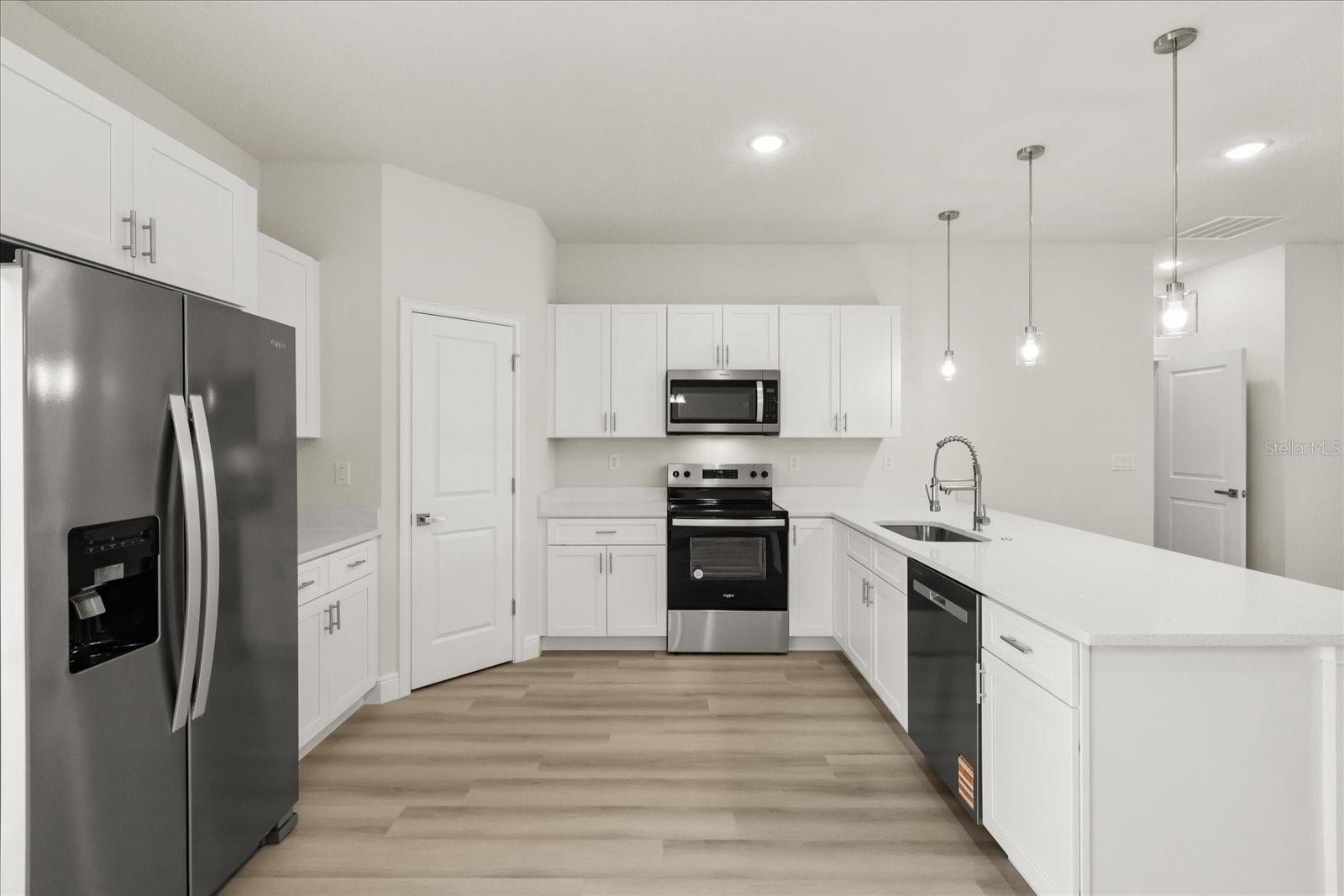 Space, style and a location you'll love at a great price point! Be the first to occupy this new 4/2 with 2-car garage, backing up to Horizon Academy School property. As you enter, you will notice that the high ceilings throughout lend to the open feel of the home. The kitchen offers generous lighting, quartz counters, upgraded SS appliances and a pantry closet. There is luxury vinyl plank flooring throughout the home, except for the Primary Bathroom, which is tiled. The Primary Bath offers everything you could ask for: Separate room for water closet, a shower, separate soaking tub, higher double vanity with quartz counter and lots of space. There are window treatments throughout the home as well. You will love the location of this home in Marion Oaks Unit 2. It is just four miles from I-75 and less than two miles to the new Aldi, only five minutes away! When completed, Marion Oaks new Publix will be just three miles away. Marion County’s newest high school is under construction in Marion Oaks, just four miles away. Buyer will assume existing Builder’s Warranty, with an extended 2-10 Warranty. Also, a Sentricon system has been installed for subterranean termite protection. Transferrable to Buyer at Closing. Buyer may continue warranty with annual fee. Come see this beautiful home in a growing area. You will want to make it yours! Seller is licensed Realtor.