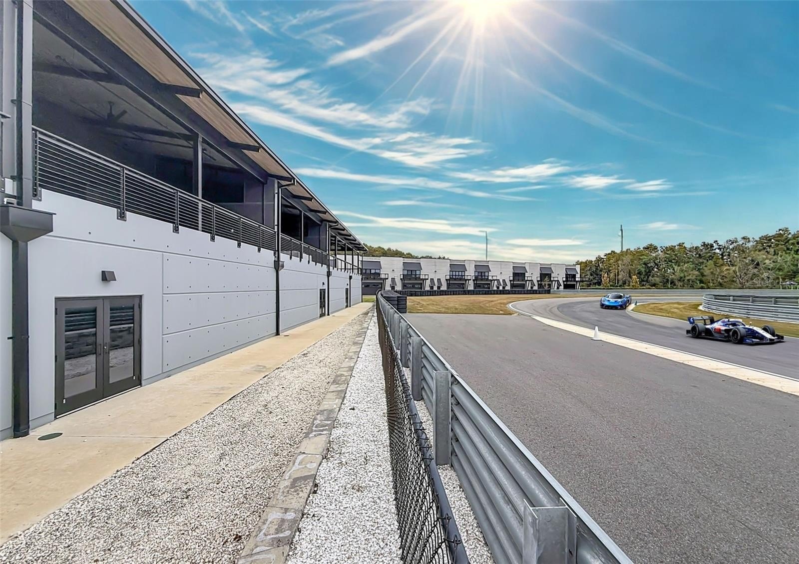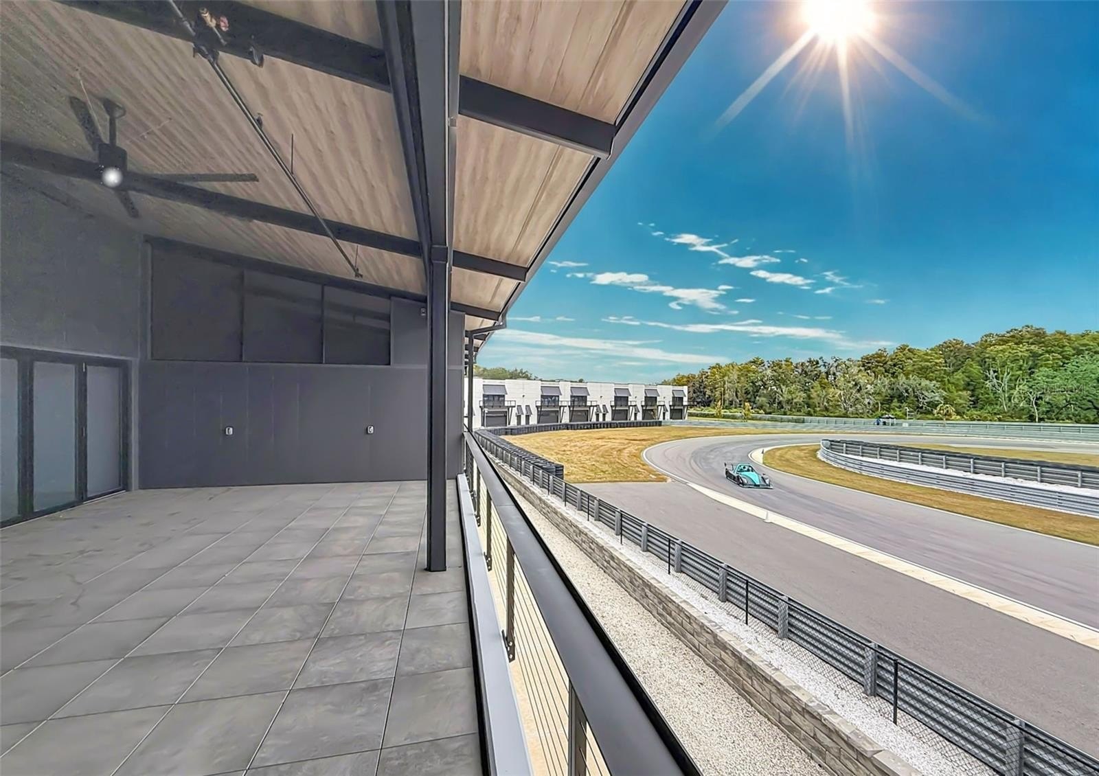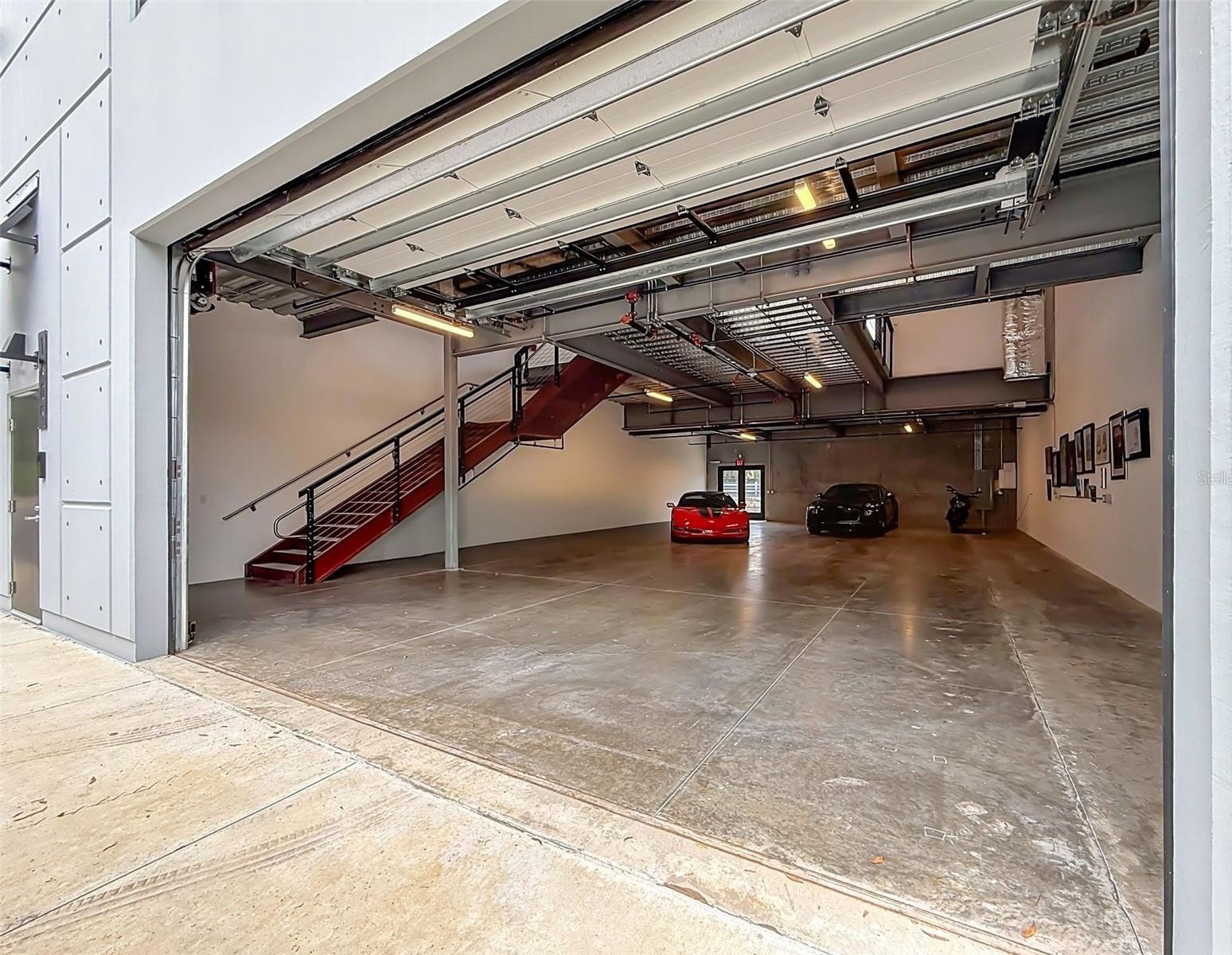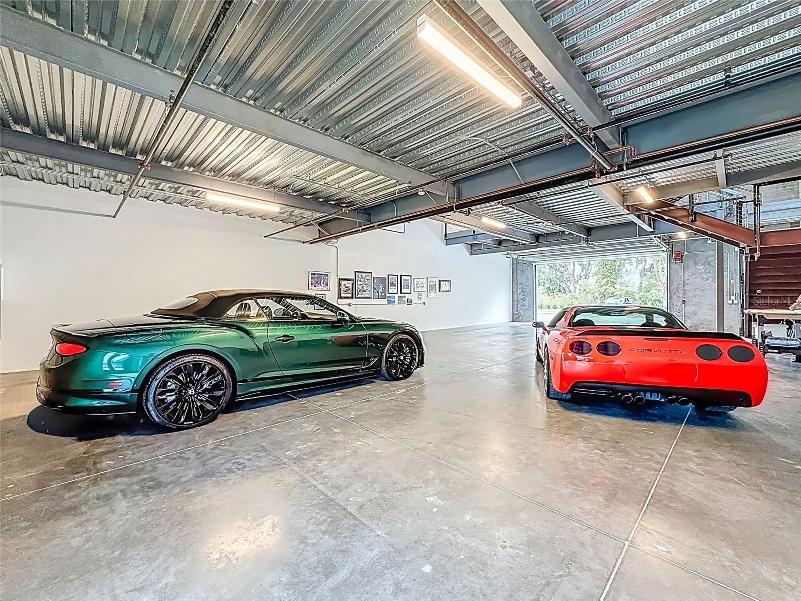 One or more photo(s) has been virtually staged. Motor Enclave Garage Condo Unit #1405 — a rare, premium track-front position overlooking the heart of The Motor Enclave’s 1.72-mile road course and the Event Center beyond. Very few units offer this level of direct vantage and depth of vertical space. If you’ve been waiting for a buildout that is not raw slab or a single loft, but one where the most time-consuming structural AND expensive to build, elements are already completed — this is it. Unit #1405 delivers approx. 4,840± sq.ft. total under roof, with about 4,140± sq.ft. of usable interior / walkable space spread across three interior levels PLUS a 700± sq.ft. covered trackside balcony. This is a true multi-story configuration — not just a single mezzanine platform. The main level is wide, open, and ready for lifts, car display, golf carts, tools, storage, or vehicle staging bays — with polished concrete floors, exposed steel, clean drywall, and a steel staircase already in place. The second level transitions into a massive entertainment zone, where a dramatic wall of accordion glass doors fully opens to the huge covered balcony — creating a seamless indoor/outdoor venue for watching cars rotate through the bend below. The balcony includes motorized roll-down screens for comfort, shading, and privacy — a perfect environment for weekend race-watching, golden hour cocktails, or morning espresso during lapping sessions. Up on the 3rd level, the elevation + privacy make this an ideal location for a private office, sim racing studio, conference suite — or even a potential fully enclosed bedroom retreat if an owner wants to create a more residential-styled upper “hideout.” This top level has the scale and separation to function as a true upper deck rather than a catwalk mezz. Each level includes fire suppression sprinklers, and HVAC is already installed to this unit as part of The Motor Enclave construction standards. Electrical and water rough-ins are also positioned for future bathroom(s), wet bar, or kitchenette build, allowing a buyer to personalize to their specific vision without starting from scratch. Located on 200+ acres at the I-75 / I-4 interchange in Tampa, The Motor Enclave is the largest private garage community in the world — purpose-built for authentic, active motorsport lifestyle. Herman Tilke-designed circuit, a 2-acre skid pad for autocross, 100 acres of off-road trails, resort-style pool, plus the 37,000 sq.ft. Event Center for major activations, corporate functions, car launches, social events, and automotive culture gatherings. This is not simply storage — this is a clubhouse for people who live cars. Premium track-front multi-story units like #1405 almost never become available. Schedule your private showing today!