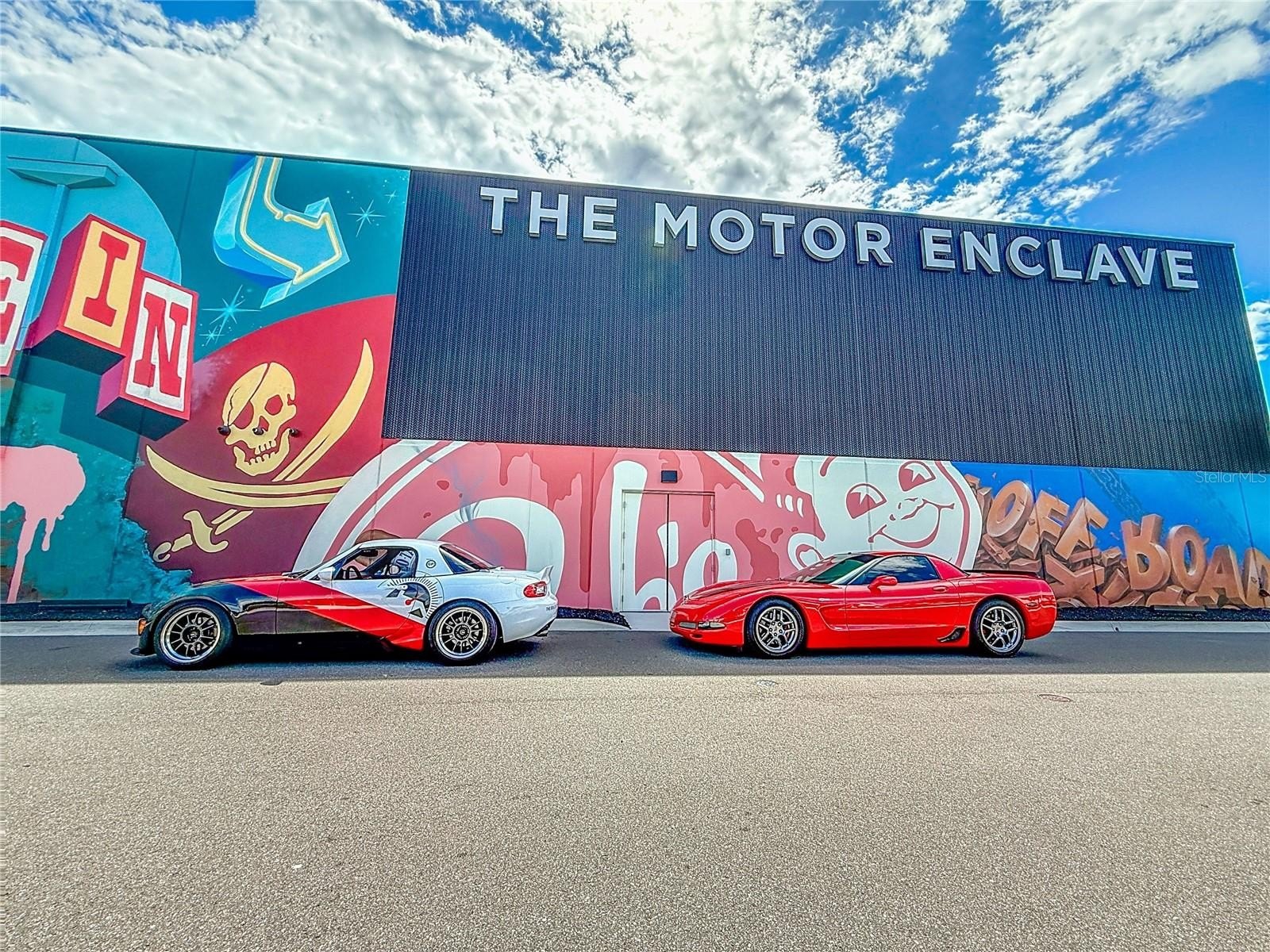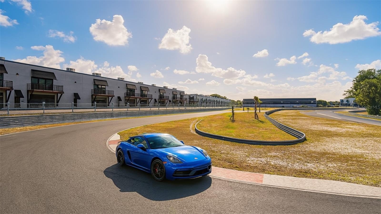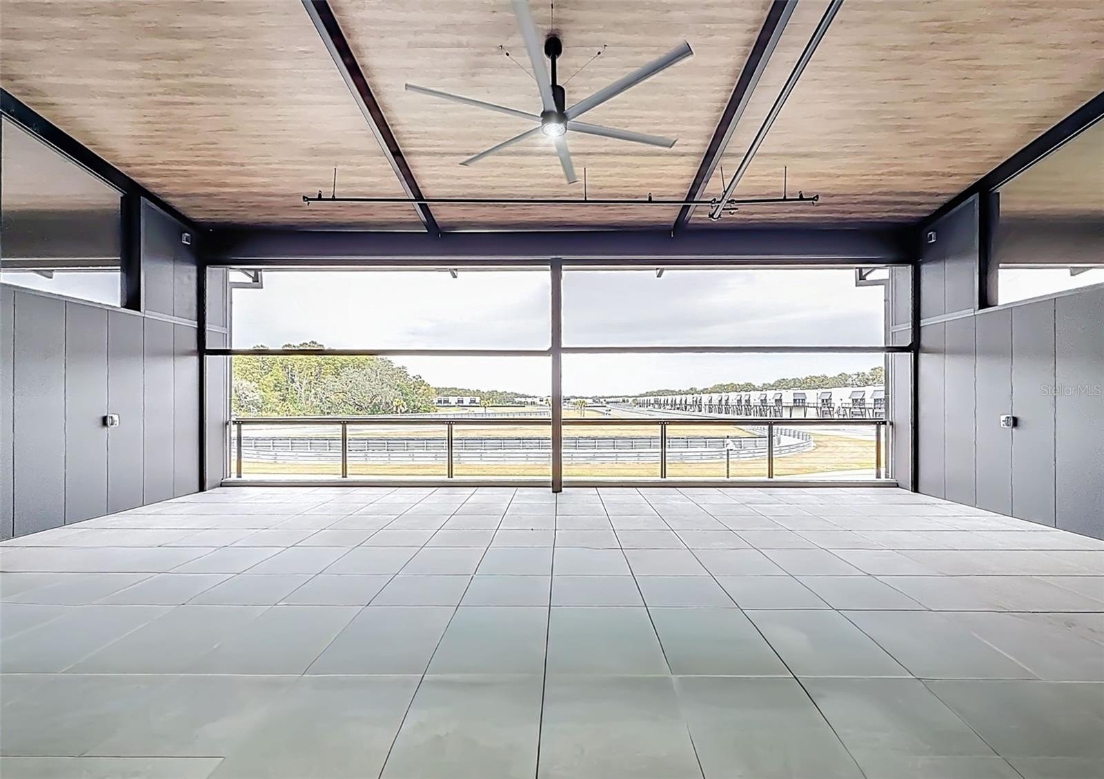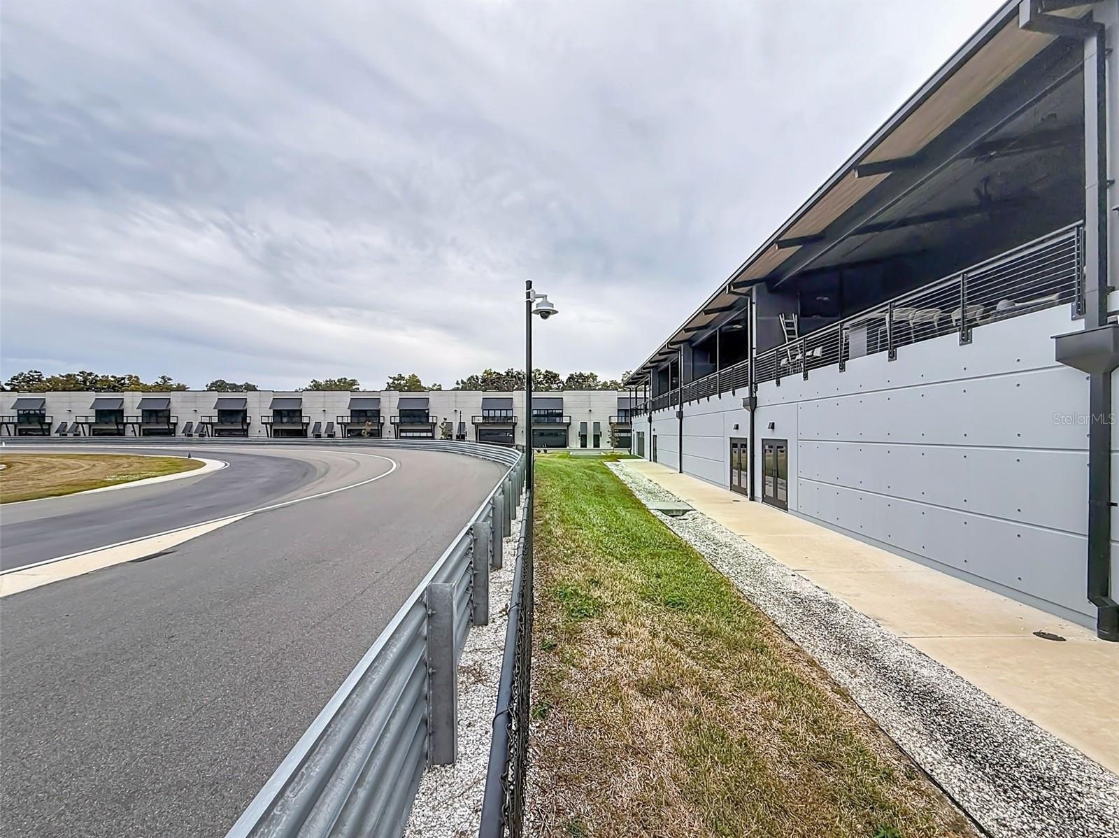 One or more photo(s) has been virtually staged. Motor Enclave Garage Condo Unit #1405 — a rare, premium track-front position overlooking the heart of The Motor Enclave’s 1.72-mile road course and the Event Center beyond. Very few units offer this level of direct vantage and depth of vertical space. If you’ve been waiting for a buildout that is not raw slab or a single loft, but one where the most time-consuming structural AND expensive to build, elements are already completed — this is it. Unit #1405 delivers approx. 4,840± sq.ft. total under roof, with about 4,140± sq.ft. of usable interior / walkable space spread across three interior levels PLUS a 700± sq.ft. covered trackside balcony. This is a true multi-story configuration — not just a single mezzanine platform. The main level is wide, open, and ready for lifts, car display, golf carts, tools, storage, or vehicle staging bays — with polished concrete floors, exposed steel, clean drywall, and a steel staircase already in place. The second level transitions into a massive entertainment zone, where a dramatic wall of accordion glass doors fully opens to the huge covered balcony — creating a seamless indoor/outdoor venue for watching cars rotate through the bend below. The balcony includes motorized roll-down screens for comfort, shading, and privacy — a perfect environment for weekend race-watching, golden hour cocktails, or morning espresso during lapping sessions. Up on the 3rd level, the elevation + privacy make this an ideal location for a private office, sim racing studio, conference suite — or even a potential fully enclosed bedroom retreat if an owner wants to create a more residential-styled upper “hideout.” This top level has the scale and separation to function as a true upper deck rather than a catwalk mezz. Each level includes fire suppression sprinklers, and HVAC is already installed to this unit as part of The Motor Enclave construction standards. Electrical and water rough-ins are also positioned for future bathroom(s), wet bar, or kitchenette build, allowing a buyer to personalize to their specific vision without starting from scratch. Located on 200+ acres at the I-75 / I-4 interchange in Tampa, The Motor Enclave is the largest private garage community in the world — purpose-built for authentic, active motorsport lifestyle. Herman Tilke-designed circuit, a 2-acre skid pad for autocross, 100 acres of off-road trails, resort-style pool, plus the 37,000 sq.ft. Event Center for major activations, corporate functions, car launches, social events, and automotive culture gatherings. This is not simply storage — this is a clubhouse for people who live cars. Premium track-front multi-story units like #1405 almost never become available. Schedule your private showing today!