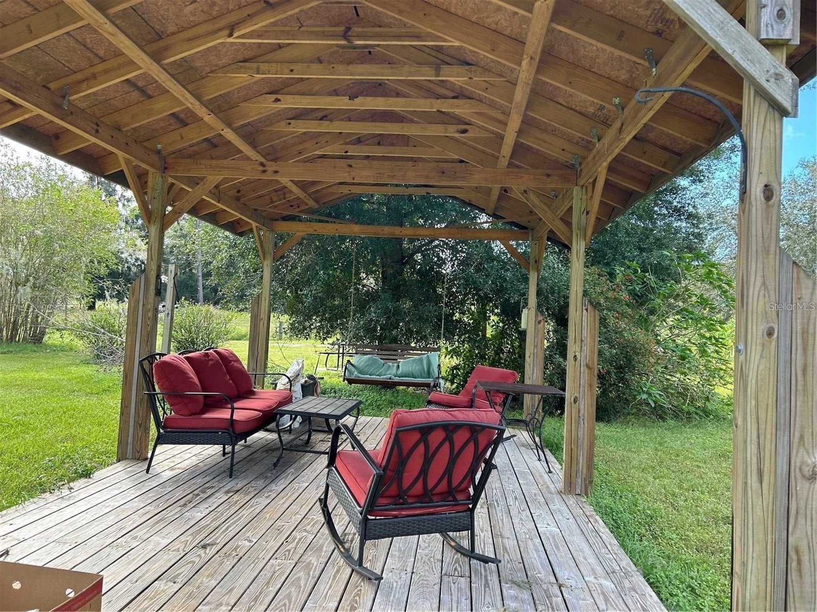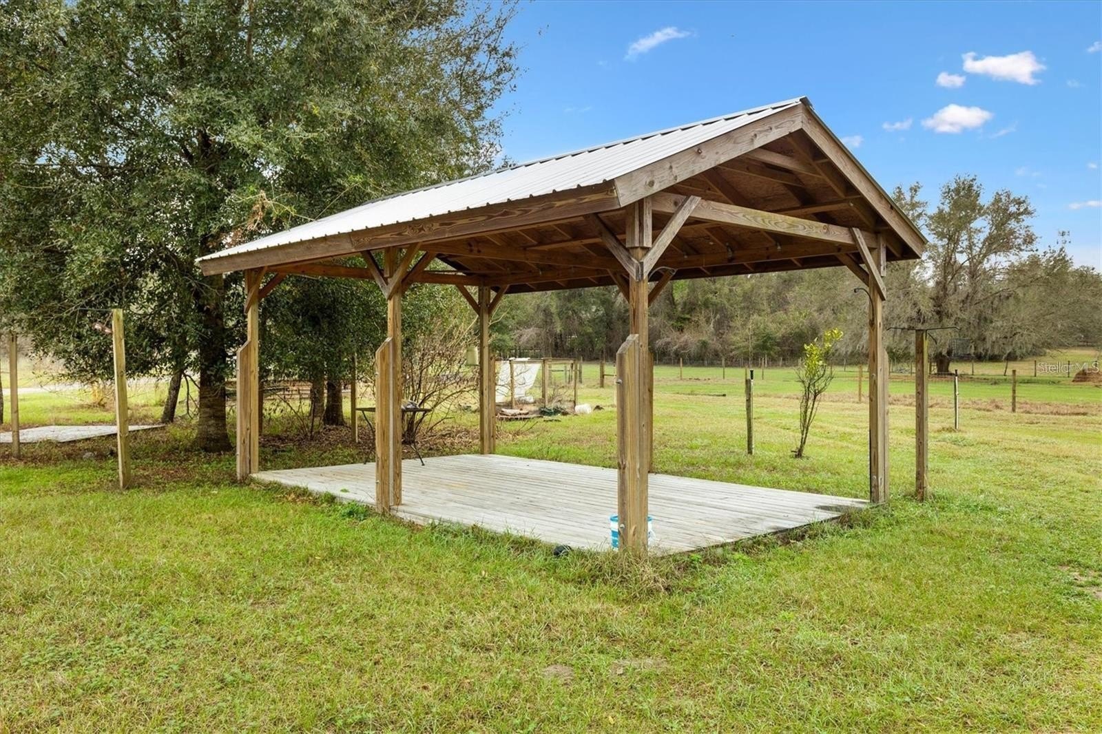 A **3-bedroom, 2-bath modular home** sits on the property in **livable condition**, featuring a **large back patio**, **supply room**, and **peaceful gazebo** with open views of the land.