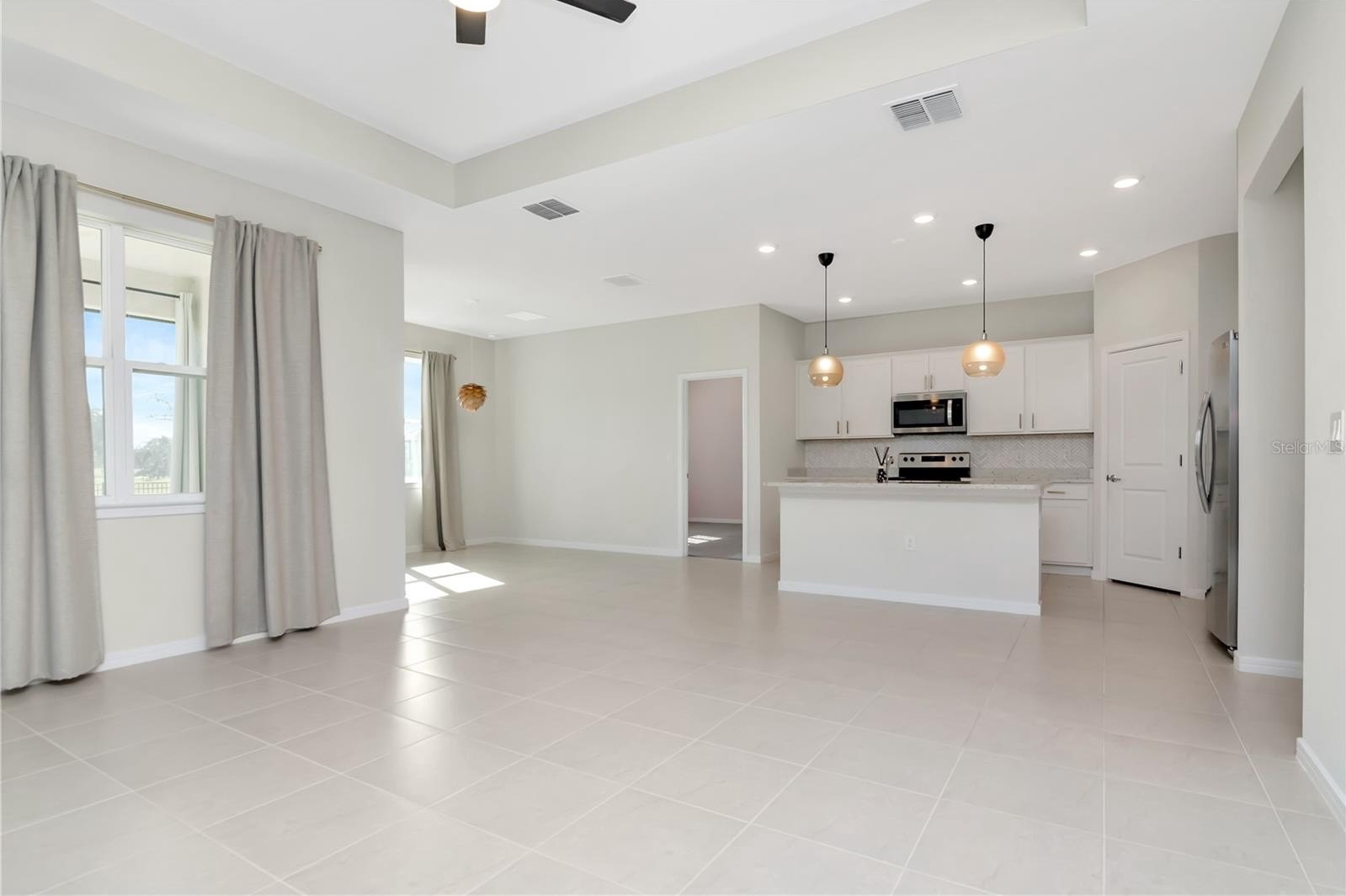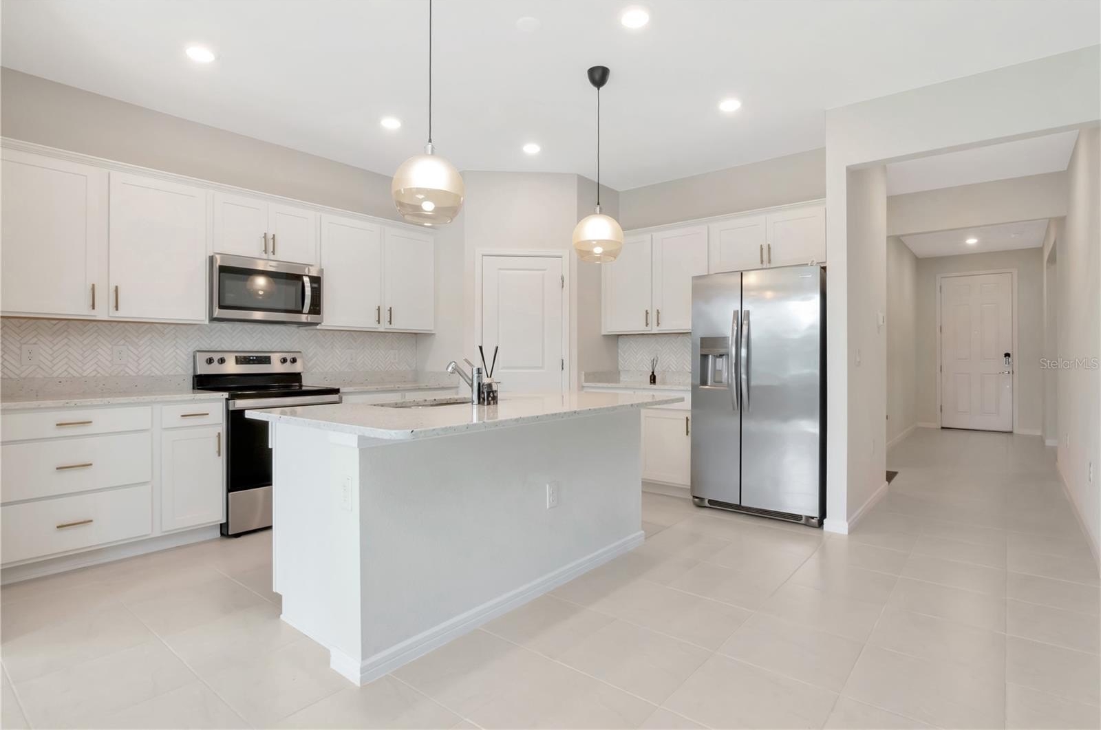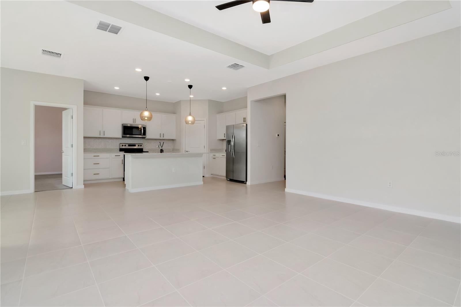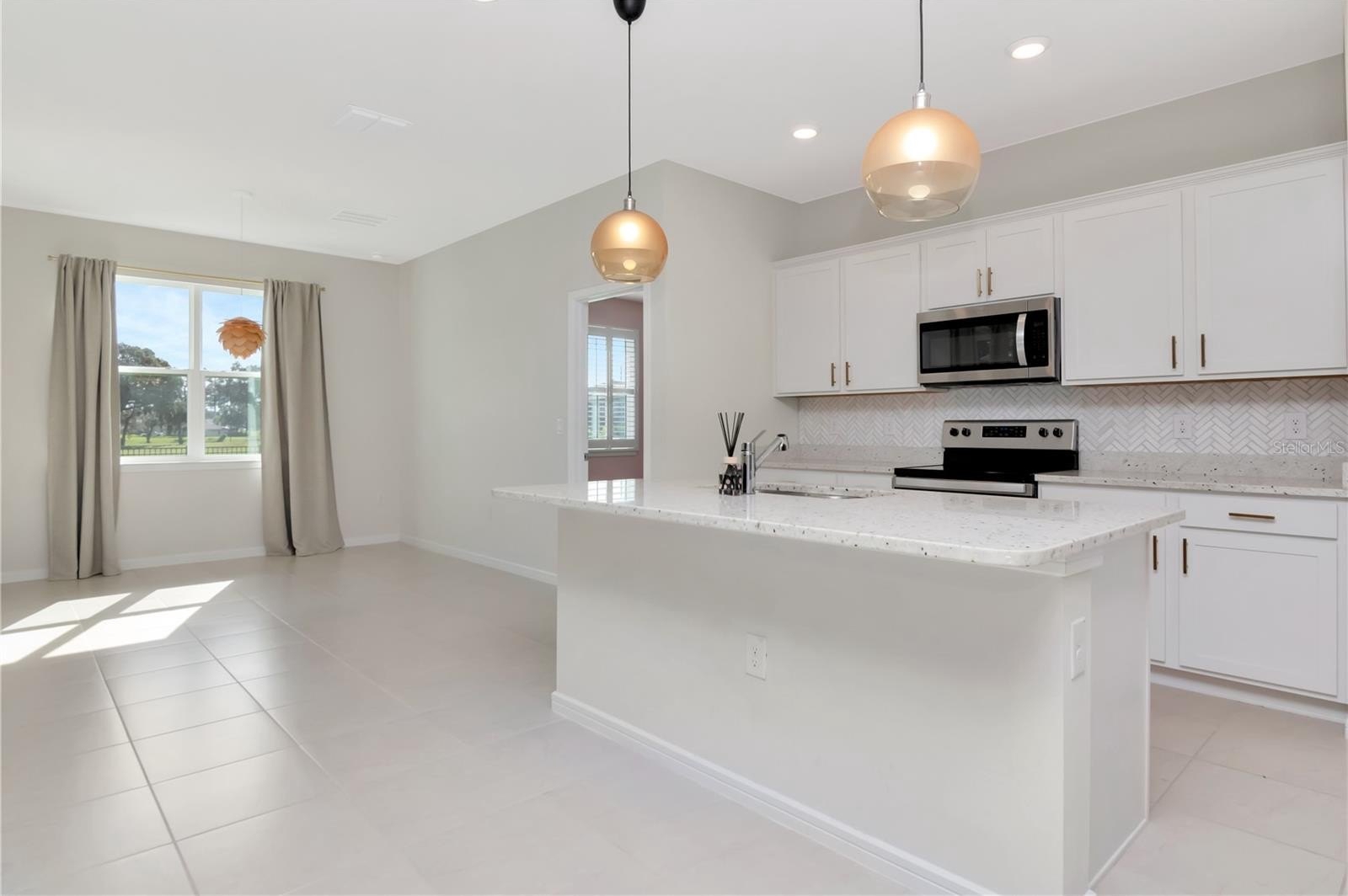 One or more photo(s) has been virtually staged. A rare opportunity in the gated community of Oaks of Pasco, this Cedar Floor Plan by Pulte single-story 3-bedroom, 2-bathroom home offers an open floor plan, quartz upgrades, and a backyard with NO rear neighbors overlooking the golf course. With 1,635 square feet of living space, split floor plan, 2-car garage, and a screened lanai, this home is the perfect balance of comfort, style, and function. Step inside to open and high ceilings with tons of natural light, upgraded lighting and ceiling fans in every room and a home with a neutral color palette. The gourmet kitchen features a large center island with pendant lighting, crisp white cabinetry with crown molding and upgraded hardware, quartz countertops, stainless steel appliances, and a corner closet pantry. The dining area is off the kitchen with sliding glass doors opening to the screened lanai, creating an effortless indoor-outdoor lifestyle. The primary suite offers a private retreat with a large walk-in closet, plantation shutters, and a spa-inspired en-suite bath with dual quartz vanities, shower, and upgraded finishes. Two additional bedrooms with built-in closets and a full bathroom with quartz countertops and tub-shower combo provide comfort and space for family or guests. The outdoor living is just as impressive, with a rear covered lanai that has a panoramic screen, oversized backyard, and sweeping views of the 9th green at Silverado Golf Course. Thoughtful upgrades like epoxy garage flooring, a Lift Master garage door opener, plantation shutters, and refreshed landscaping add both beauty and peace of mind. The Oaks of Pasco is one of Zephyrhills’ most sought-after communities, offering quiet streets, mature oak trees, and a location that puts you close to everything. Downtown Zephyrhills is minutes away with charming restaurants, parks, and local events, while Wesley Chapel’s shopping, dining, and Tampa Premium Outlets are a quick drive. With easy access to Tampa, Lakeland, and major highways, this home is as convenient as it is captivating. Homes like this do not come along often. Schedule your private tour today and see why this one sets the bar for location, design, and lifestyle in Zephyrhills.