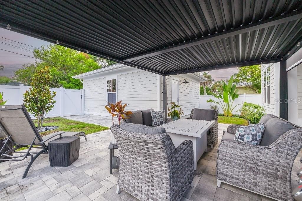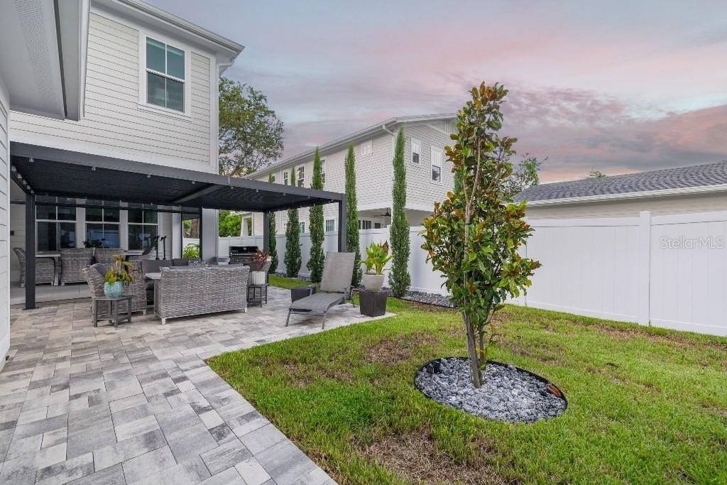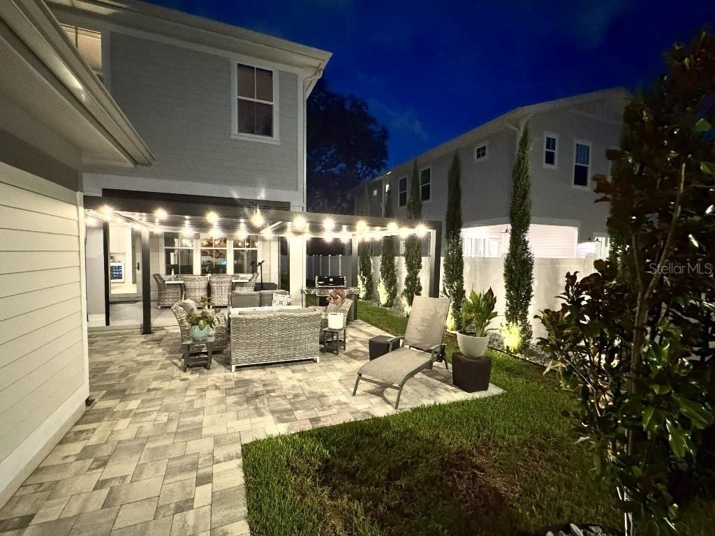 - Beautifully finished private backyard with stone pavers, louvered pergola, lighting and serene ambiance at night