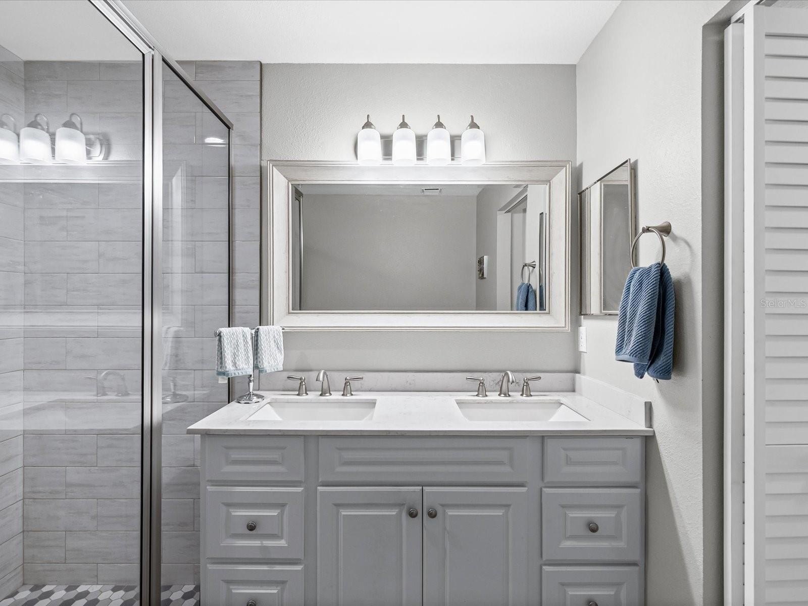 Tucked away in a quiet, peaceful community of just 39 homes, this stunning Glenbrook East townhome offers both space and style. Natural light fills the two-story interior, accentuated by vaulted ceilings and a striking skylight in the living room. The remodeled kitchen (2020) is a showstopper, featuring black Venatino Quartz countertops, elegant white 42" shaker-style cabinets, and plenty of workspace for cooking. The primary suite on the first floor feels like a private retreat, complete with TWO HUGE 6' WIDE CLOSETS providing abundant storage. The master bath is beautifully updated, with a sleek & stylish walk-in shower with floor-to-ceiling tile, and double sinks. Upstairs, you’ll find a large second bedroom, a full bath, and a LOFT-STYLE BONUS ROOM that could easily serve as a third bedroom, office, or guest space. Downstairs, there’s an additional bonus room ideal for a home office or study, plus a convenient half bath and laundry area. Step outside through sliding doors to your covered, SCREENED PATIO, perfect for relaxing or entertaining. This home is move-in ready with a five-year-old A/C system and BRAND NEW WINDOWS. Windows are impact-rated, dual-glazed Low-E (installed at a cost of $12,000) that enhance energy efficiency, reduce noise, and provide storm protection. Additionally, the property is NOT IN A FLOOD ZONE. The community offers a sparkling pool, beautiful oak trees, and a pet-friendly walking area. You’ll also enjoy two dedicated parking spaces plus ample guest parking. Located in highly desirable Palm Harbor, this home provides easy access to top-rated schools, pristine Gulf beaches, Honeymoon Island, the Pinellas Trail, and a wide variety of dining, shopping, and medical facilities—all just minutes from St. Pete–Clearwater International Airport.This is a wonderful home in an exceptional location—come see it today!