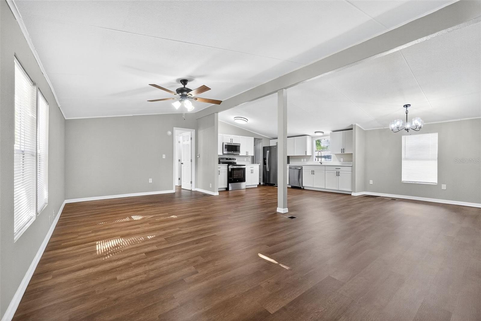 One or more photo(s) has been virtually staged. This beautifully remodeled 3-bedroom, 2-bath home is truly move-in ready, offering peace of mind with a new roof, new A/C, and new water heater. Step inside to an open, inviting layout featuring luxury vinyl plank flooring throughout and a fully updated kitchen with quartz countertops and stainless steel appliances.