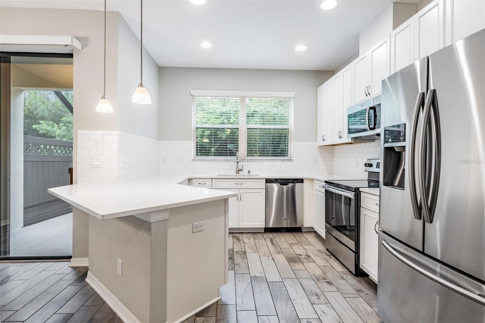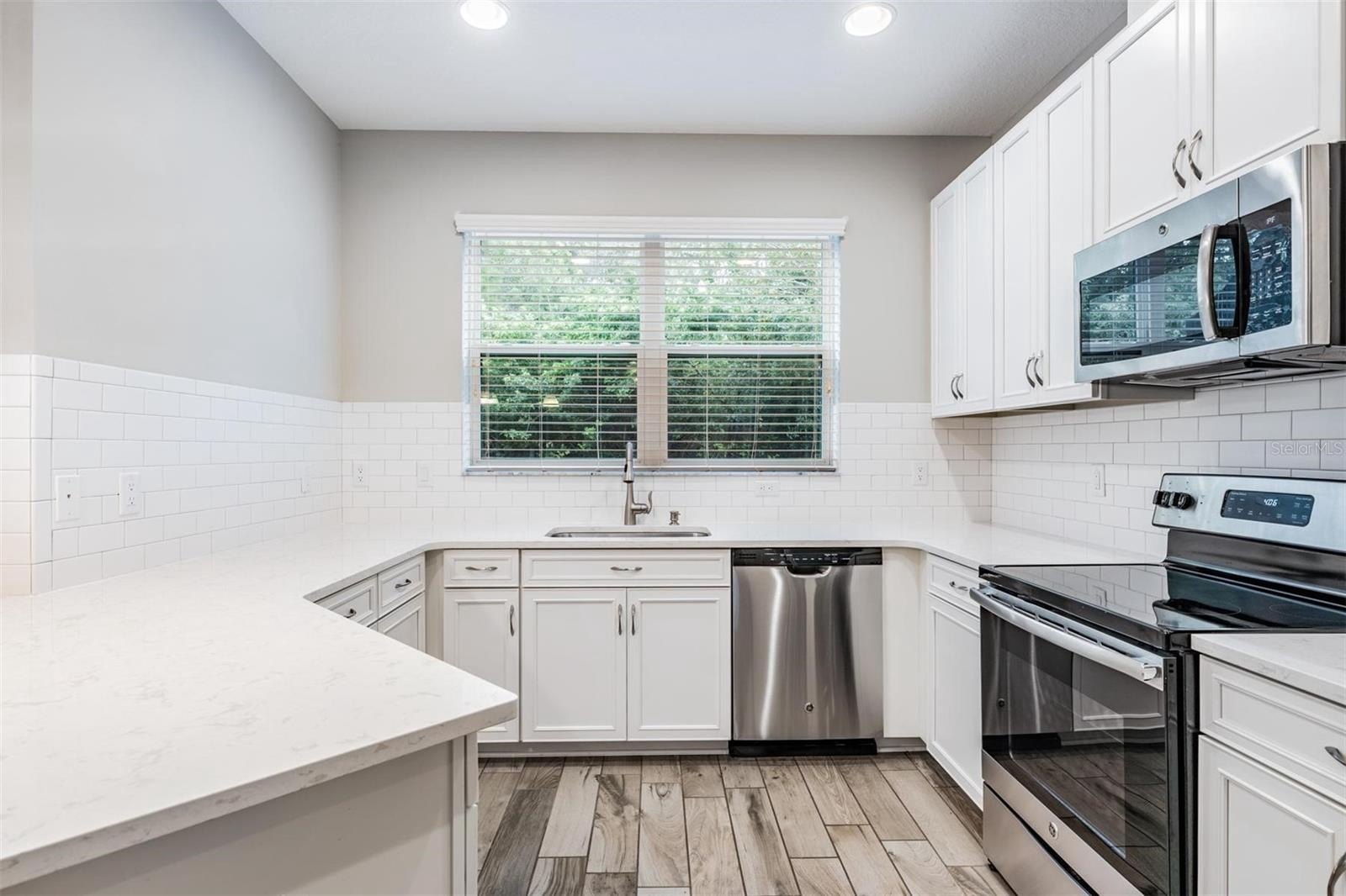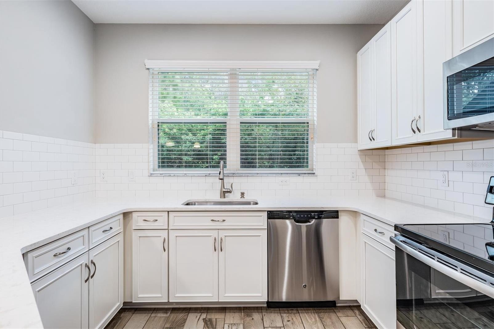Welcome to easy living in the gated community of West Lake in Westchase! This move-in ready townhome is waiting for its new owner. As you step inside, you're welcomed by a spacious open-concept floor plan. The beautiful kitchen features quartz counters with plenty of eat in/prep space, white shaker cabinets, a generous pantry, and stainless steel appliances. Stylish tile plank floors flow throughout the main level, leading to a tranquil conservation view and a covered lanai, ideal for relaxing. For added convenience, a half bath is located downstairs. Upstairs, you'll find three bedrooms and two bathrooms, including a spacious primary suite with dual sinks and a massive walk-in closet. Additional highlights include upstairs laundry, lawn care, a 1-car garage, and access to the heated community pool. Close to shopping, dining, Tampa International Airport and schools, this location could not get any better! Schedule your private showing today!