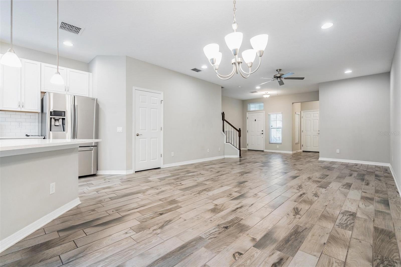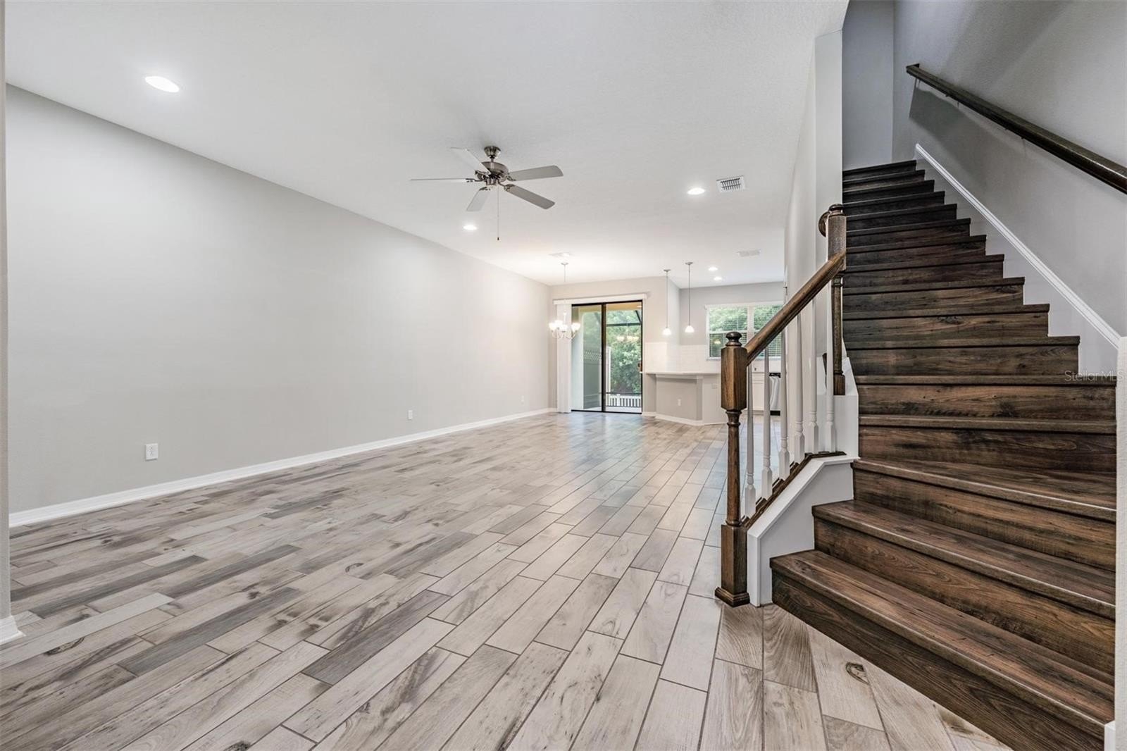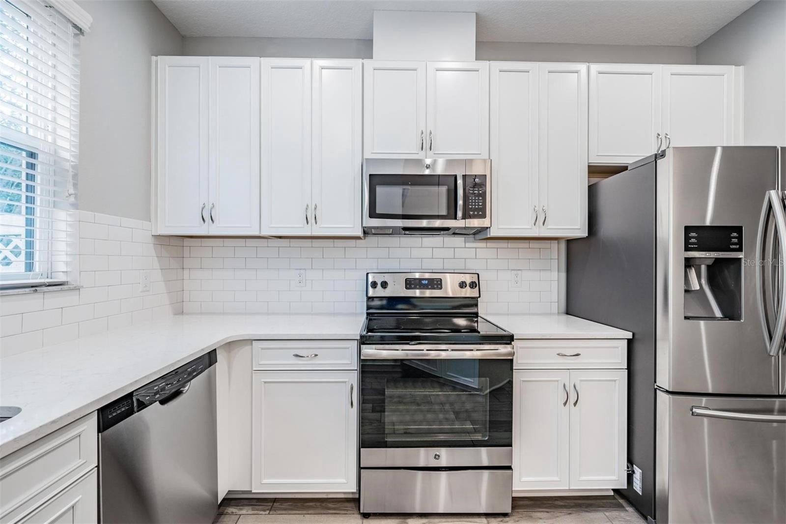 Welcome to easy living in the gated community of West Lake in Westchase! This move-in ready townhome is waiting for its new owner. As you step inside, you're welcomed by a spacious open-concept floor plan. The beautiful kitchen features quartz counters with plenty of eat in/prep space, white shaker cabinets, a generous pantry, and stainless steel appliances. Stylish tile plank floors flow throughout the main level, leading to a tranquil conservation view and a covered lanai, ideal for relaxing. For added convenience, a half bath is located downstairs. Upstairs, you'll find three bedrooms and two bathrooms, including a spacious primary suite with dual sinks and a massive walk-in closet. Additional highlights include upstairs laundry, lawn care, a 1-car garage, and access to the heated community pool. Close to shopping, dining, Tampa International Airport and schools, this location could not get any better! Schedule your private showing today!
