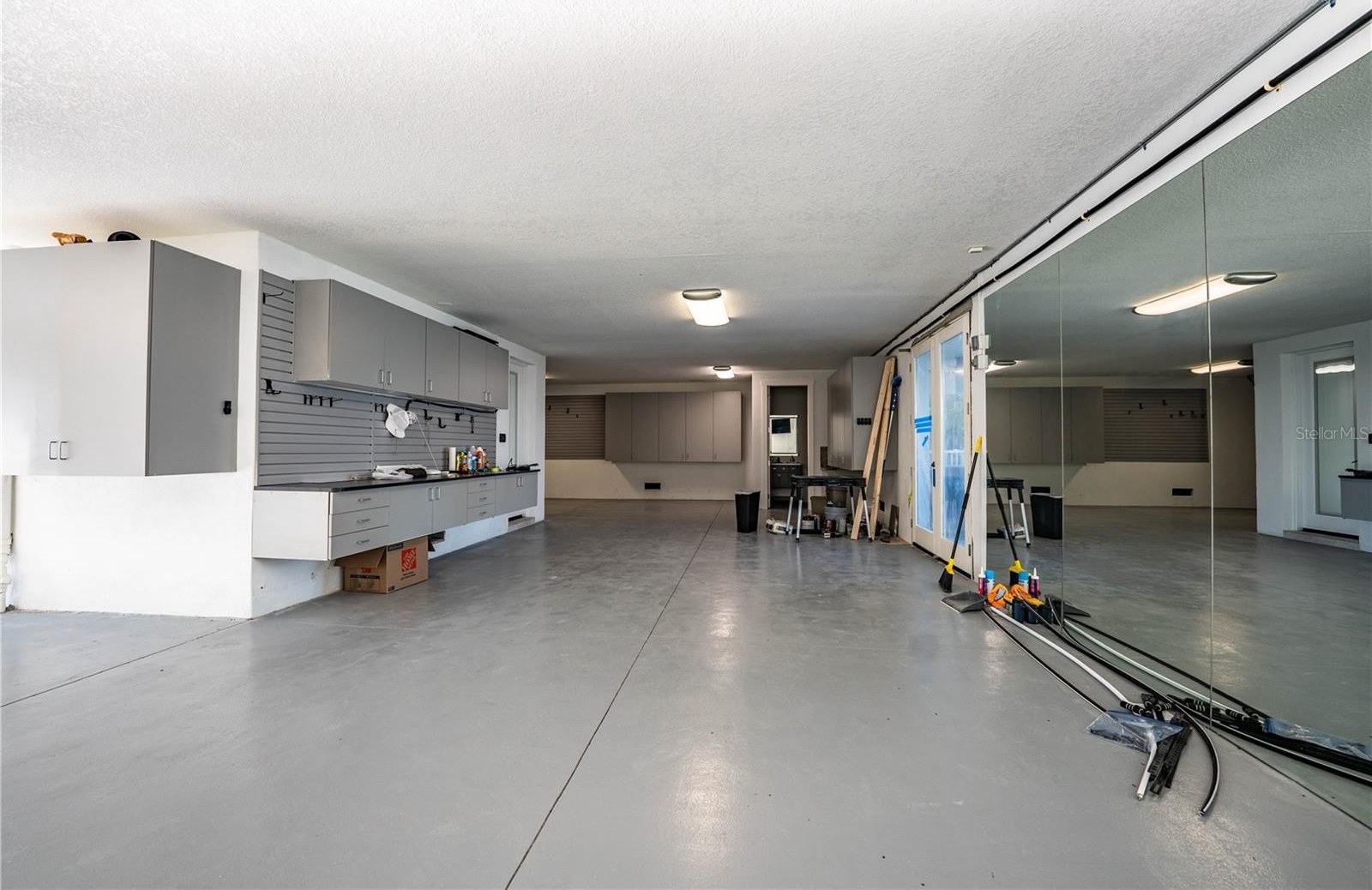 A 3-car garage and tandem parking for 5 cars or use it as a 3-car garage and an exercise area with air-conditioning, mirrors and TV all included! Plenty of custom built-in storage and workbench for all your chores.