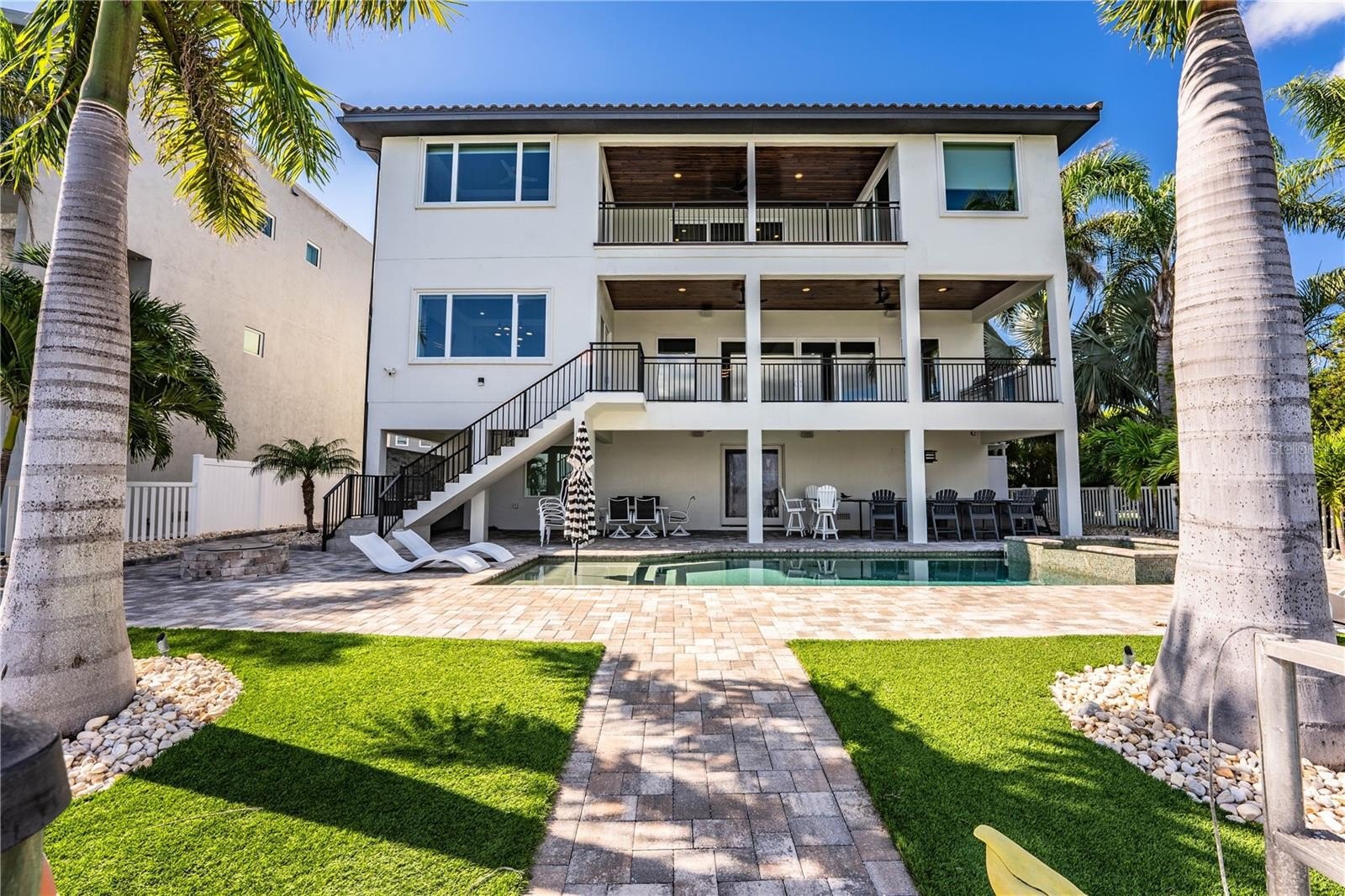 If you are you looking for open water, you've found it on Boca Ciega Bay. Boasting a 30,000 lb high speed boat lift with composite decking, and a step down for easy boat access. When you're not out boating, enjoy fishing off your dock as dolphin and manatee swim-by. Ground level includes heated pool and attached spa and water features. Enjoy sitting around a large stone-built gas fire-pit, surrounded by artificial turf and mature palm trees. Let's begin on the ground level; this property comes with a brand-new outdoor kitchen, equipped with new ice maker, refrigerator, granite countertops and seating for up to 12. All cabinets are outdoor rated. There's more; an additional kitchen area with a gas grill-top BBQ. Sonos speakers carry the music all the way to the dock.