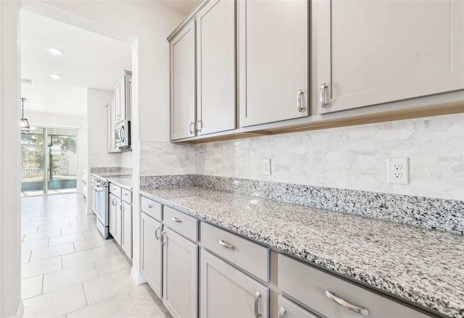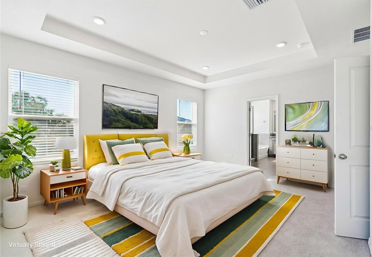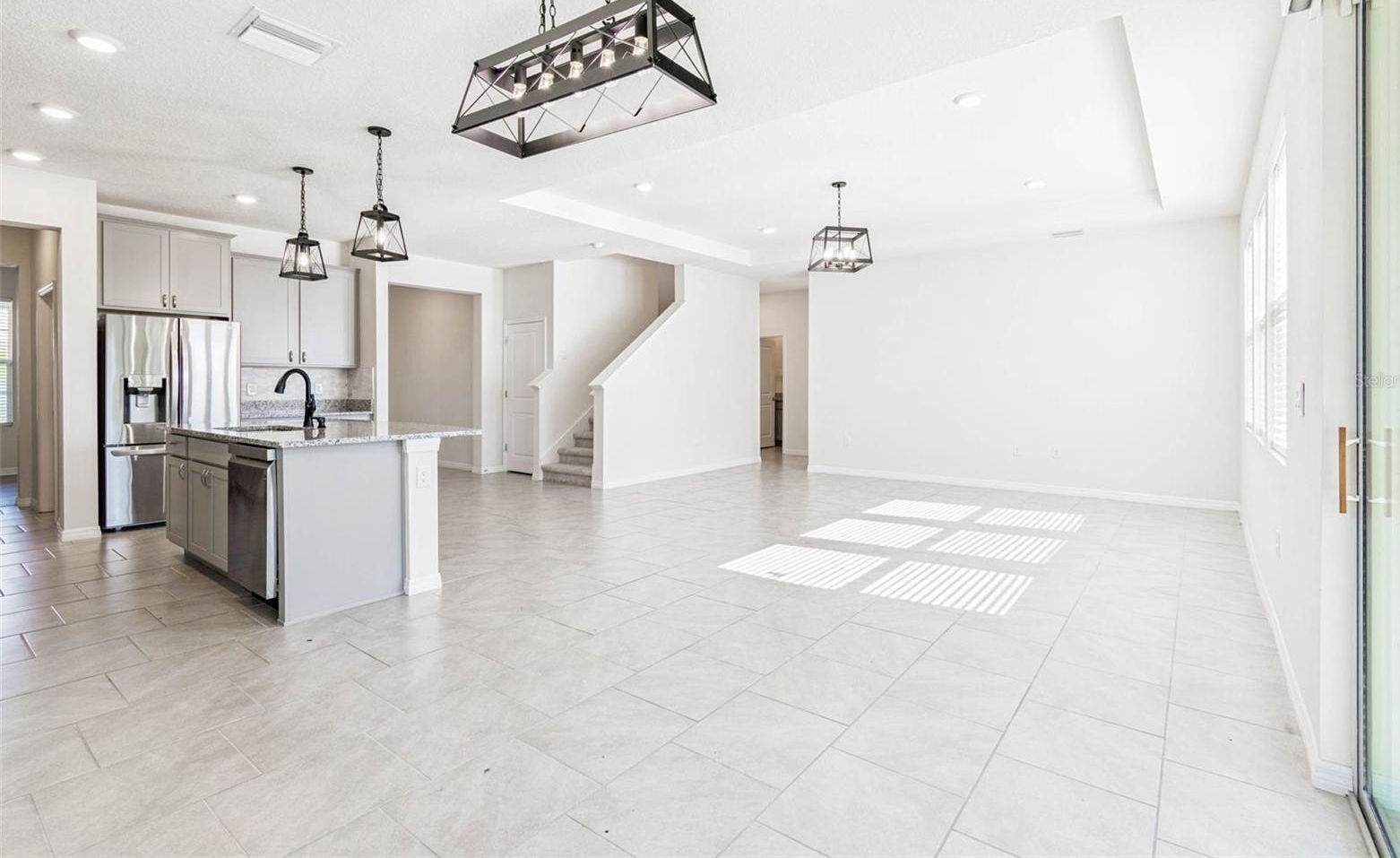 Step inside to a bright, open-concept layout designed for effortless living and entertaining. The spacious living, dining, and kitchen areas flow seamlessly together, enhanced by elegant ceramic tile and waterproof luxury vinyl flooring throughout the main level. The gourmet kitchen is a showstopper featuring granite countertops, stainless steel appliances, and elegant gray wood cabinetry. A large center island offers additional seating, generous prep space, and serves as the perfect gathering spot for family and friends. You’ll also love the huge walk-in pantry and the convenient butler’s pantry connecting the kitchen to the study—ideal for coffee service, extra storage, or prepping for gatherings. The first floor also features a full bedroom and bath, providing ideal accommodations for guests or multi-generational living. Upstairs, the expansive primary suite is a private retreat featuring a luxurious ensuite bath with split granite vanities, a relaxing garden tub, separate walk-in shower, and a private water closet. Two additional generously sized bedrooms share a full bath with dual sinks and a separate shower area. A large loft with a storage closet offers endless possibilities as a media room, playroom, or fitness area. The laundry room comes with washer and dryer and is conveniently located upstairs adding extra convenience to daily living. Enjoy outdoor living at its best on a charming front porch and a fully vinyl-fenced backyard that sits on nearly a quarter-acre lot—perfect for barbecues, pets, or just relaxing under the Florida sunshine. Mirada is more than a neighborhood—it’s a lifestyle! Home to the largest Metro Lagoon in the country, Mirada features a spectacular 15-acre crystal-clear lagoon with something for everyone—sandy beaches, a swim-up bar, kayaking, paddleboarding, a floating obstacle course, splash park, cabanas, and water slides. Socialize on the lagoon event lawn, explore miles of walking and golf cart trails, or visit the tot lots and dog parks. Conveniently located off State Road 52 and just minutes from I-75, Mirada is close to everything. The Market at Mirada offers a Publix, restaurants, and shops right within the community. Nearby attractions include The Grove, Wiregrass Mall, and Tampa Premium Outlets. With its unbeatable combination of luxury, location, and lifestyle—this Mirada beauty truly lets you live the ultimate staycation every day!