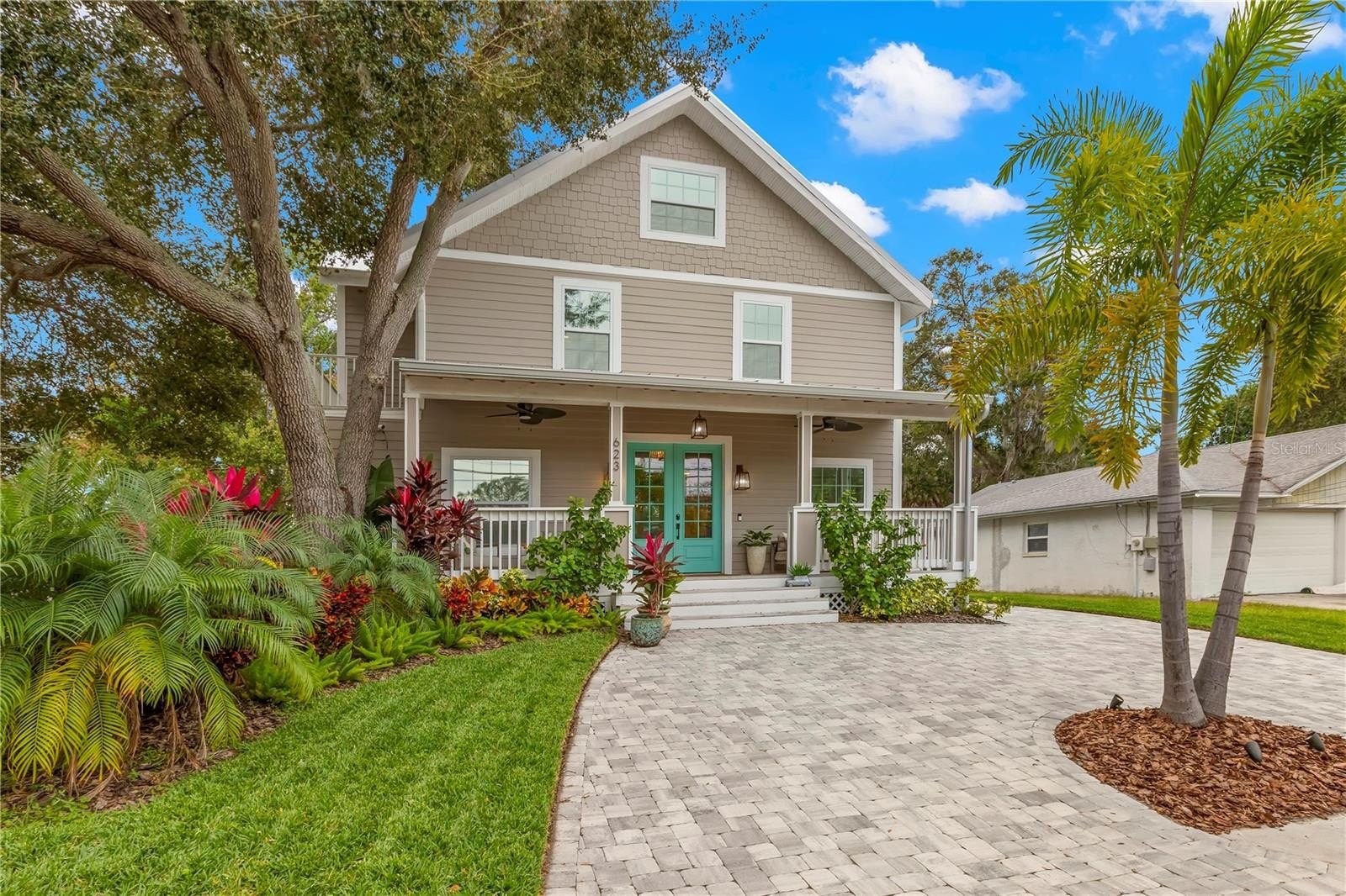 Welcome home to 623 1st Ave N in Safety Harbor FL that is set on a picturesque, tree-lined street, this beautifully reimagined 1925 residence radiates the charm, character, and warmth that define Safety Harbor’s most beloved homes. 4 bedrooms plus a den/home office and 5 full baths. From the moment you step onto the wide front porch framed by mature landscaping and double turquoise doors, the home feels inviting, soulful, and distinctly crafted. This location delivers the ideal Safety Harbor lifestyle. Enjoy effortless walks to downtown cafés, boutiques, 3rd Friday night events, Sunday markets and local festivals, and the iconic Safety Harbor Resort & Spa. Spend weekends exploring the waterfront vistas of Philippe Park, just moments away. Step outside and within minutes, hop onto the 13 mile Ream Wilson Trail for morning rides or evening strolls along the waters of Tampa Bay. Clearwater Beach and Tampa airport remain easily accessible, making travel and coastal adventures wonderfully convenient. Inside, nearly 3,800 square feet unfold with a thoughtful blend of period charm and modern design. Rich millwork, plantation shutters, warm flooring, and a wood-burning fireplace anchor the open main floor and highlight the home’s character. The living and dining spaces flow naturally into the designer kitchen featuring a 9-foot island, marble countertops, stainless steel appliances, pot filler, and an expansive butler’s pantry. A first-floor office with custom built-ins offers an elevated work-from-home environment. At the rear of the home, a set of French doors opens to the backyard, creating a seamless indoor–outdoor connection and enhancing the home’s inviting, relaxed atmosphere. Upstairs, every bedroom is a true ensuite, offering exceptional comfort and privacy. The primary suite includes a large walk-in closet and a spa-inspired bath with a luxury soaking tub, dual vanities, and a multi-jet shower with multiple shower heads. A well-placed second-floor laundry adds daily convenience. The third floor provides flexible space ideal for a media room, playroom, studio, fitness area, or additional guest suite. Outdoor living is a defining element of this property. The welcoming front porch sets the tone for neighborly connection and slow, easy mornings with a cup of coffee. The back deck, accessed through French doors, overlooks a private tropical yard with new sod and irrigation, lush foliage, and fruiting Meyer lemon and lime trees. A charming cottage-style shed enhances the appeal and functionality of the space. A detached, oversized garage has been finished with air conditioning, butcher block counters, and shiplap walls. It includes a 12,000-watt generator hook-up, pegboard walls, built-in cabinets, drawers, and abundant storage, making it an ideal gym, studio, workshop, or climate-controlled utility space. High-end upgrades such as impact windows and doors, CAT 6 internet, stainless steel appliances, marble countertops, and fully updated systems, including HVAC, plumbing, electrical, and water heater (all 2021). A new standing seam metal roof was installed in 2024. Non-flood zone, and no HOA, the home offers peace of mind alongside its unmistakable charm and character. Historic charm. Modern luxury. A walkable coastal lifestyle unlike anything else. Welcome home.