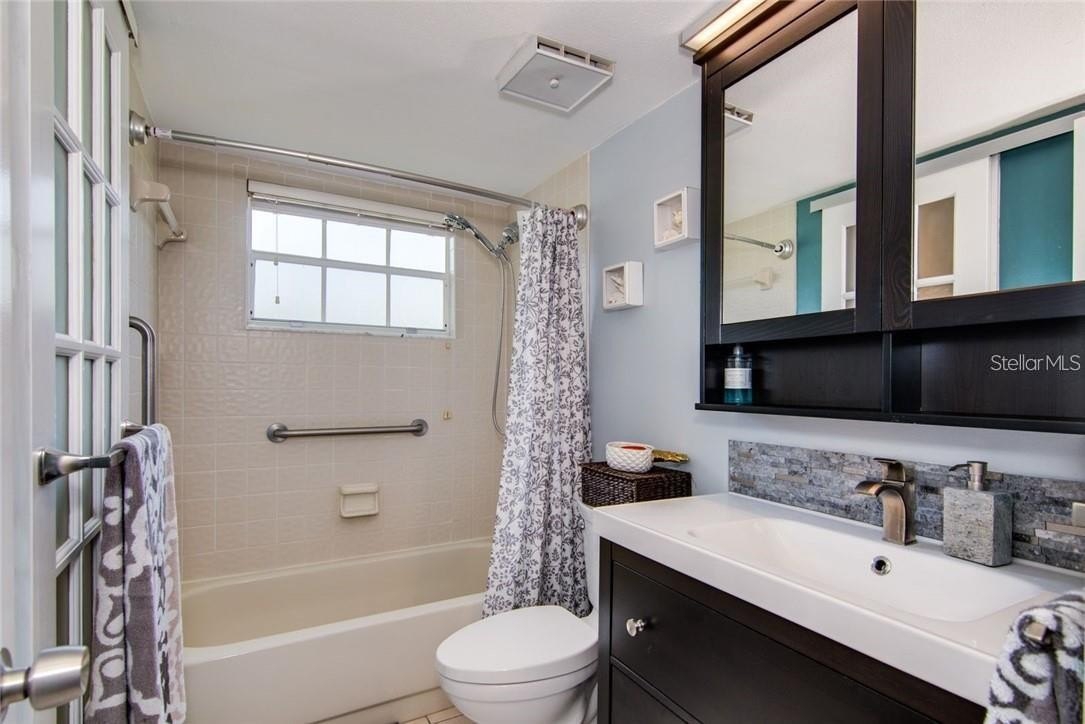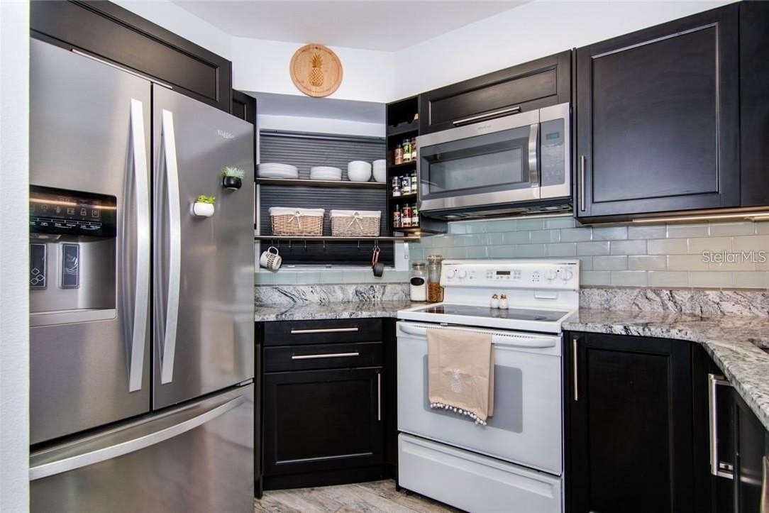 Must see this incredible 1ST Floor 2 bed 1.5 bath condo in one of St Petersburg most desirable community displaying lush Tropical Palm Trees and Gorgeous Flowers. No Flood Zone~Zone X at the Highest Elevation . The kitchen and bathrooms have been carefully and precisely updated displaying a barn door separating Jack & Jill bathrooms. This unit features a HUGE master bedroom with modern shiplap wall and barn door to spacious closet. See beautiful Montagna Italian design Glazed Luxury Vinyl Tile flooring throughout. The screened in Beachy Linai provides additional lounging space to drink your coffee in the morning sun or have a drink in the evening breeze. New Air Conditioner-Condenser installed 4-2022. Stones Throw monthly fee includes a Beautiful Pool, Hot tub Spa, Tennis Courts, Pickle Ball, BBQ Grills, Self Carwash, Water, Trash Removal, Cable, High Speed Internet & Clubhouse. Stones Throw is approximately a 10 minute drive to incredible Gulf Beaches at St Pete Beach & Treasure Island, 15 minutes to I-275, 13 minutes to Downtown St Pete, 5 minutes to State of the Art Hospitals and 2 minutes to Tyrone Mall with amazing restaurants, shops and excellent public transportation