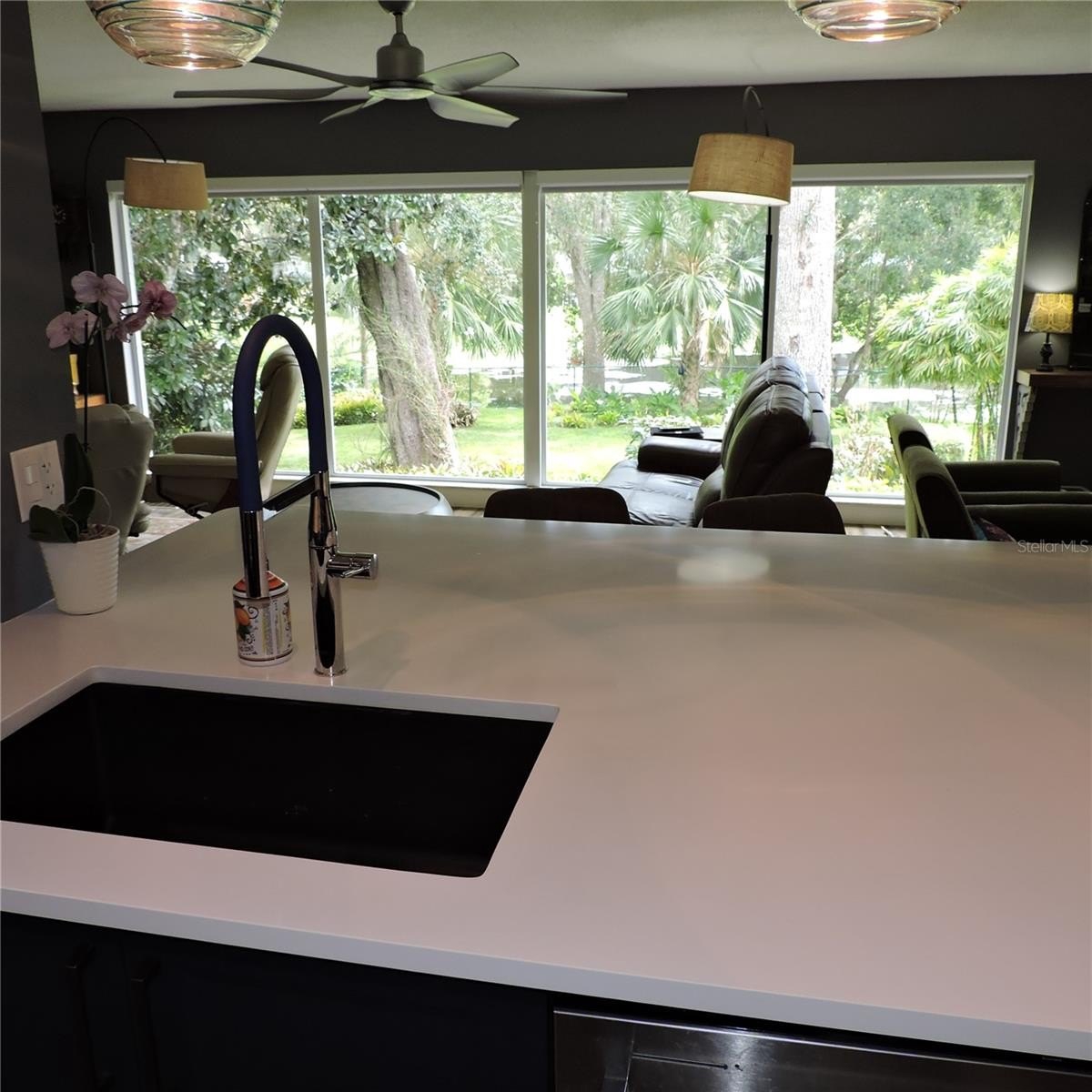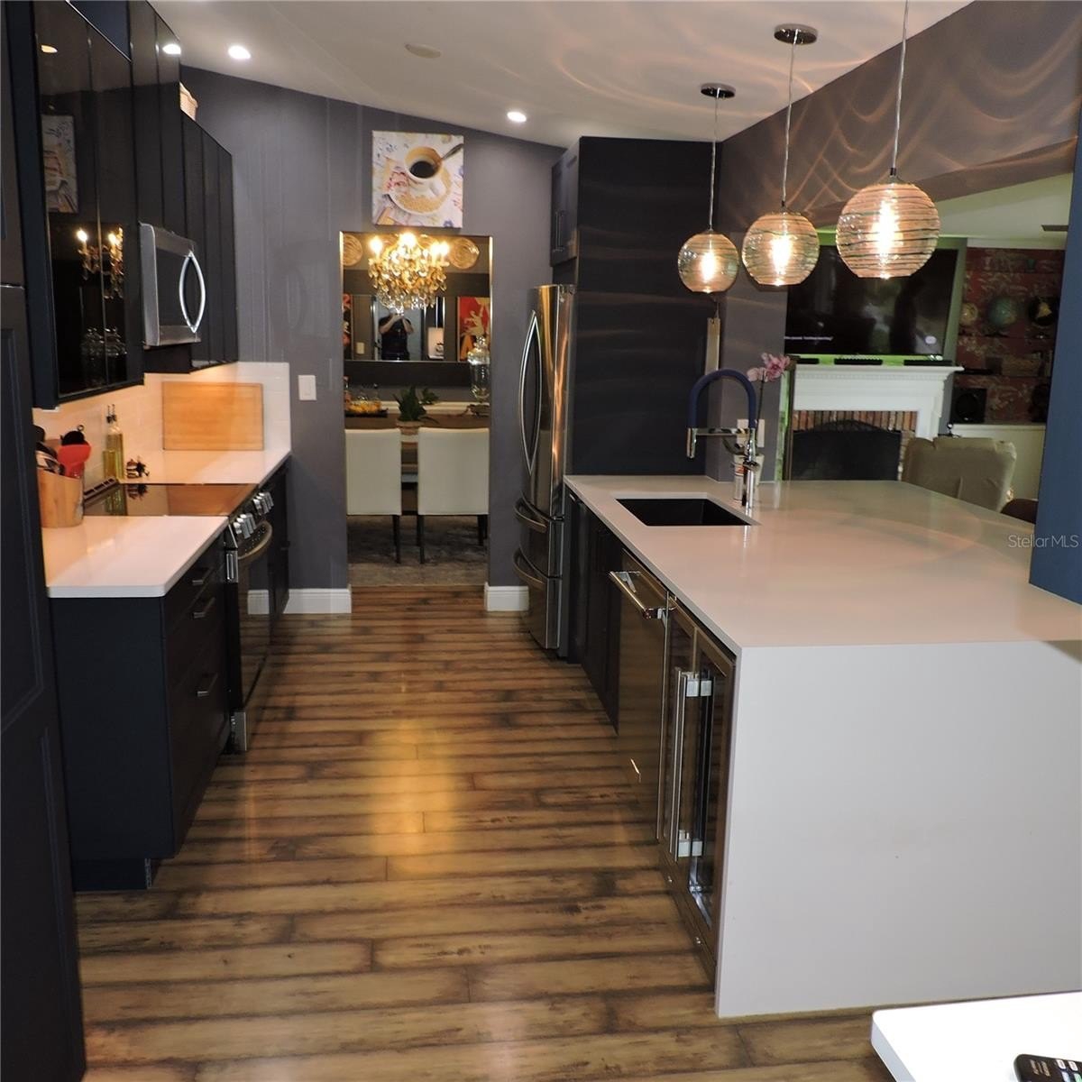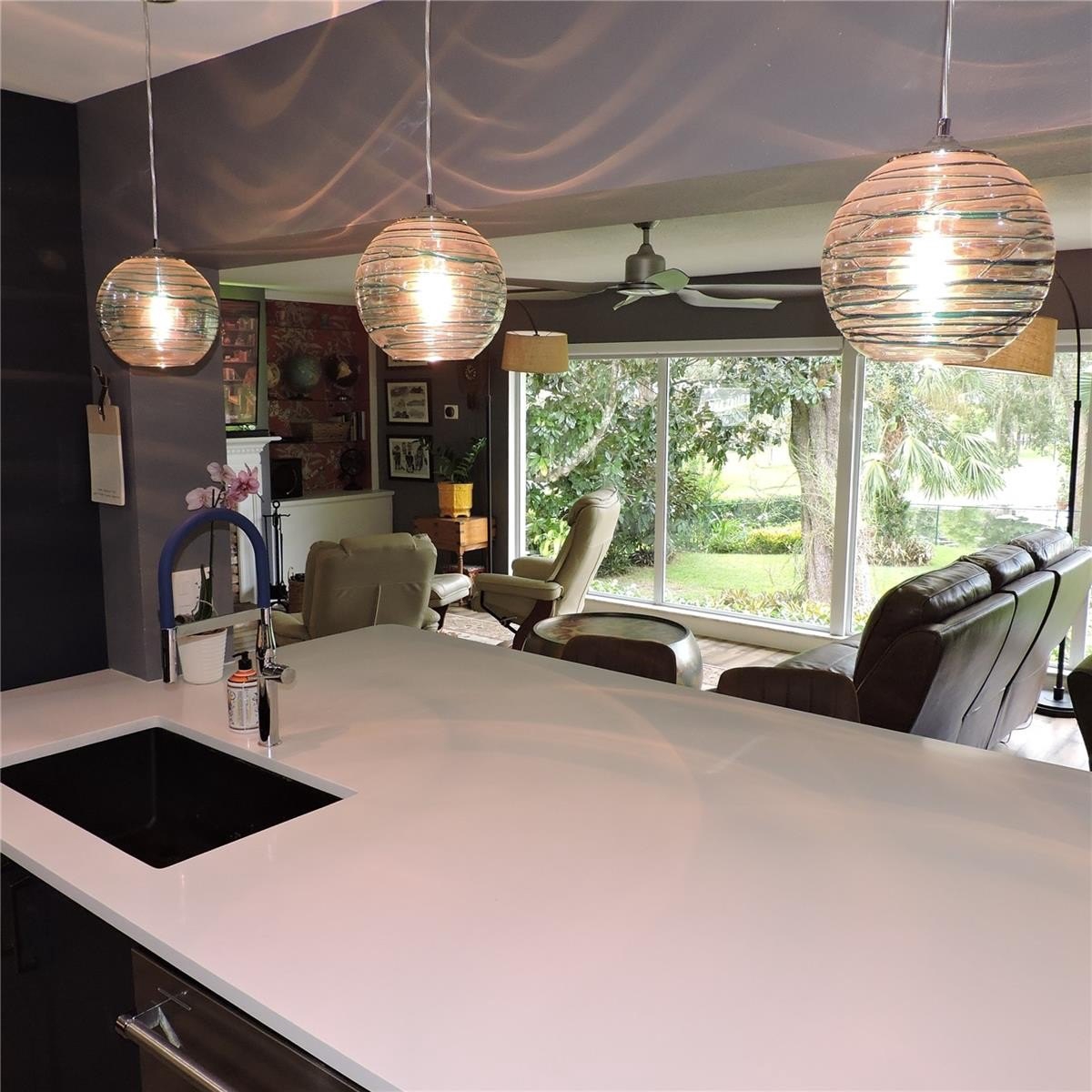 Beautifully remodeled LAKEFRONT home on Lake John in the desired Pinecrest neighborhood of Mount Dora. Originally built by well known local custom home builder Matsche Designers & Contractors (original 1975 Blue Prints stay with the home!). So many recent upgrades have been done and no expense was spared. Custom cabinetry with lighting inside the soft close drawers, under the cabinets and also in the glass door cabinets. High end stainless steel appliances. Large oversized quartz kitchen waterfall edge peninsula island overlooks the family room with wood burning fireplace. Lavish oasis inspired landscaping with large shade trees, orchids, wide range of flowers, plants, privacy hedges and four fruit trees (Palestine Indian Sweet Lime, Valencia Orange, Meyer Lemon and Rhodesia Red Valencia) on a 1/3rd acre fenced in lot. Let nature and the awesome lake view come into the family room and open kitchen through the huge floor to ceiling fixed glass window or choose to enjoy the view from the oversized screened in patio. Newer roof, kitchen, double pane energy efficient windows, doors, HVAC, water heater, custom closet systems, built-ins in nearly every room and two solar tubes in hallway and living room to let in even more natural light. Motion sensors in the central house smoke detectors will automatically light your way for safety in the dark. Even an authentic Baccarat Chandelier (with documentation certificate) hangs in the dining room. Custom remote control window shades on every window. Smart home where you can control by phone app the Rain Bird 5 zone irrigation system, garage door opener, Nest thermostats and two security cameras (front and back) Nice mini air-conditioned workspace in the garage. Short 15-20 minute walk to downtown Mount Dora or choose to take advantage of the approved golf cart allowed option. Lots of walking trails. Lake John is perfect for canoe/kayak/SUP. Travel across the lake to land on the shores of Forest Park with it’s hiking trails. This is a very special home waiting for a special new owner.