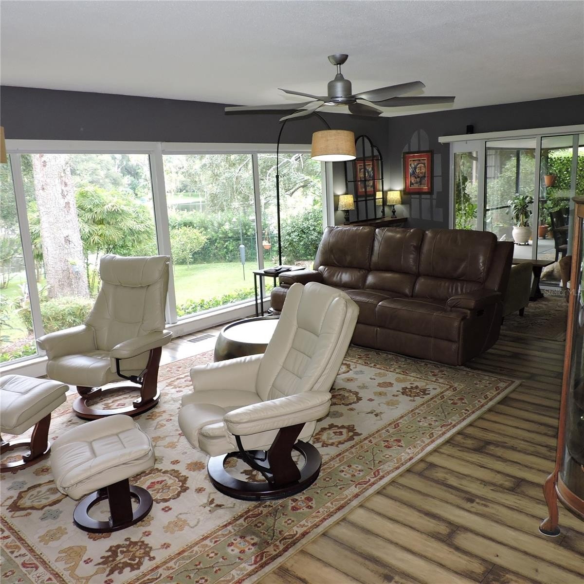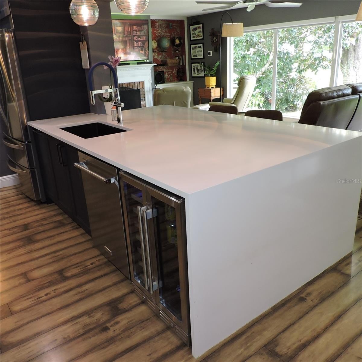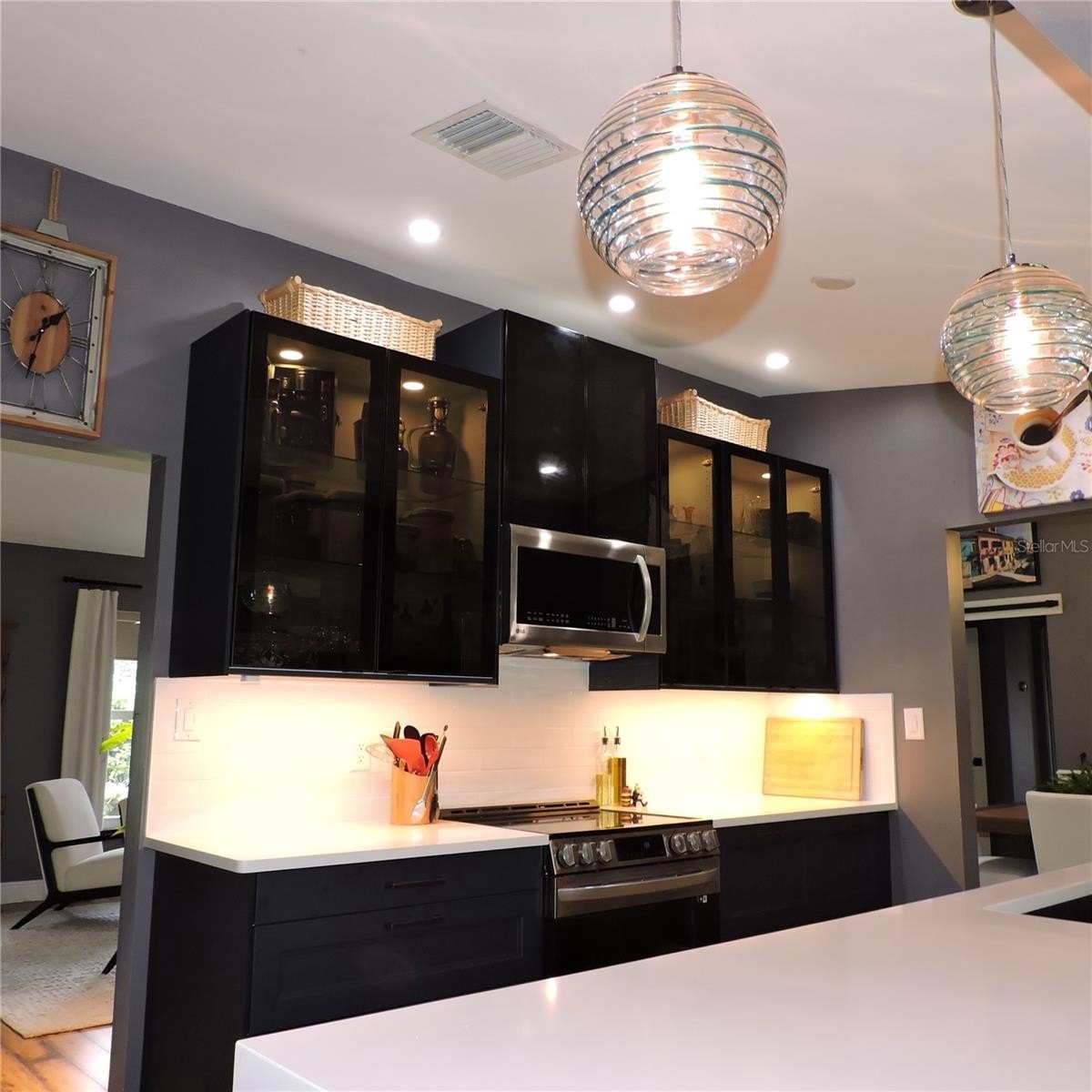 Beautifully remodeled LAKEFRONT home on Lake John in the desired Pinecrest neighborhood of Mount Dora. Originally built by well known local custom home builder Matsche Designers & Contractors (original 1975 Blue Prints stay with the home!). So many recent upgrades have been done and no expense was spared. Custom cabinetry with lighting inside the soft close drawers, under the cabinets and also in the glass door cabinets. High end stainless steel appliances. Large oversized quartz kitchen waterfall edge peninsula island overlooks the family room with wood burning fireplace. Lavish oasis inspired landscaping with large shade trees, orchids, wide range of flowers, plants, privacy hedges and four fruit trees (Palestine Indian Sweet Lime, Valencia Orange, Meyer Lemon and Rhodesia Red Valencia) on a 1/3rd acre fenced in lot. Let nature and the awesome lake view come into the family room and open kitchen through the huge floor to ceiling fixed glass window or choose to enjoy the view from the oversized screened in patio. Newer roof, kitchen, double pane energy efficient windows, doors, HVAC, water heater, custom closet systems, built-ins in nearly every room and two solar tubes in hallway and living room to let in even more natural light. Motion sensors in the central house smoke detectors will automatically light your way for safety in the dark. Even an authentic Baccarat Chandelier (with documentation certificate) hangs in the dining room. Custom remote control window shades on every window. Smart home where you can control by phone app the Rain Bird 5 zone irrigation system, garage door opener, Nest thermostats and two security cameras (front and back) Nice mini air-conditioned workspace in the garage. Short 15-20 minute walk to downtown Mount Dora or choose to take advantage of the approved golf cart allowed option. Lots of walking trails. Lake John is perfect for canoe/kayak/SUP. Travel across the lake to land on the shores of Forest Park with it’s hiking trails. This is a very special home waiting for a special new owner.
