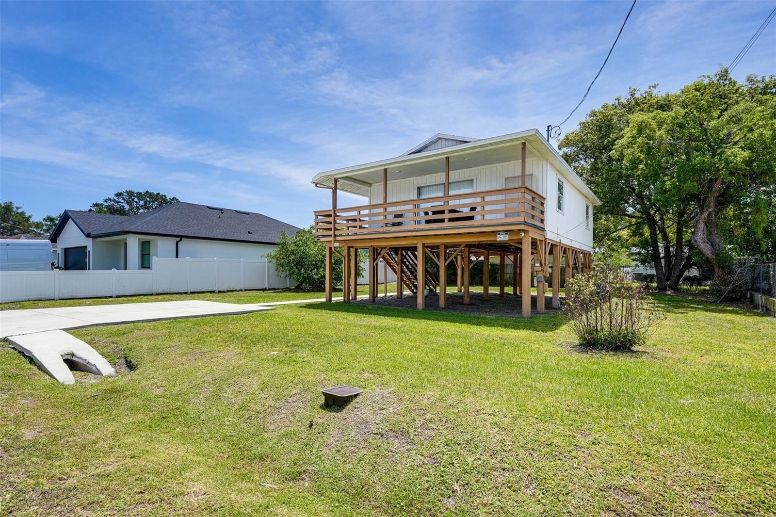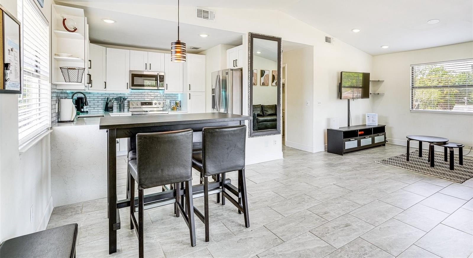 Welcome to 3022 W Frierson Ave, a modern stilt home in the heart of Tampa offering style, convenience, and a rare financing opportunity. Take advantage of the assumable FHA loan at a low 3.625% interest rate,offering qualified buyers significant monthly savings compared to today’s rates. The home features a cleared under-stilt area with potential for an added unit and a brand-new driveway plus thoughtful upgrades throughout such as, all-new tile flooring, sleek black hardware accents, custom slow-close kitchen cabinets, and a white granite waterfall-edge countertop.