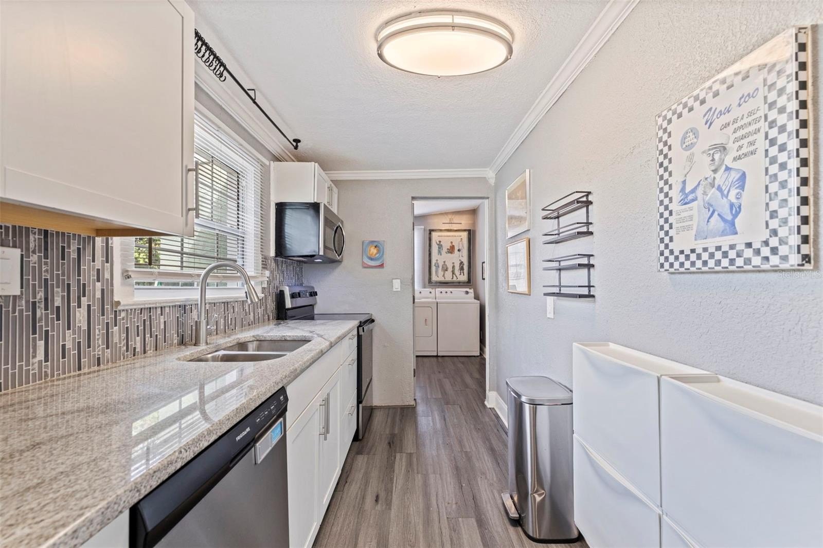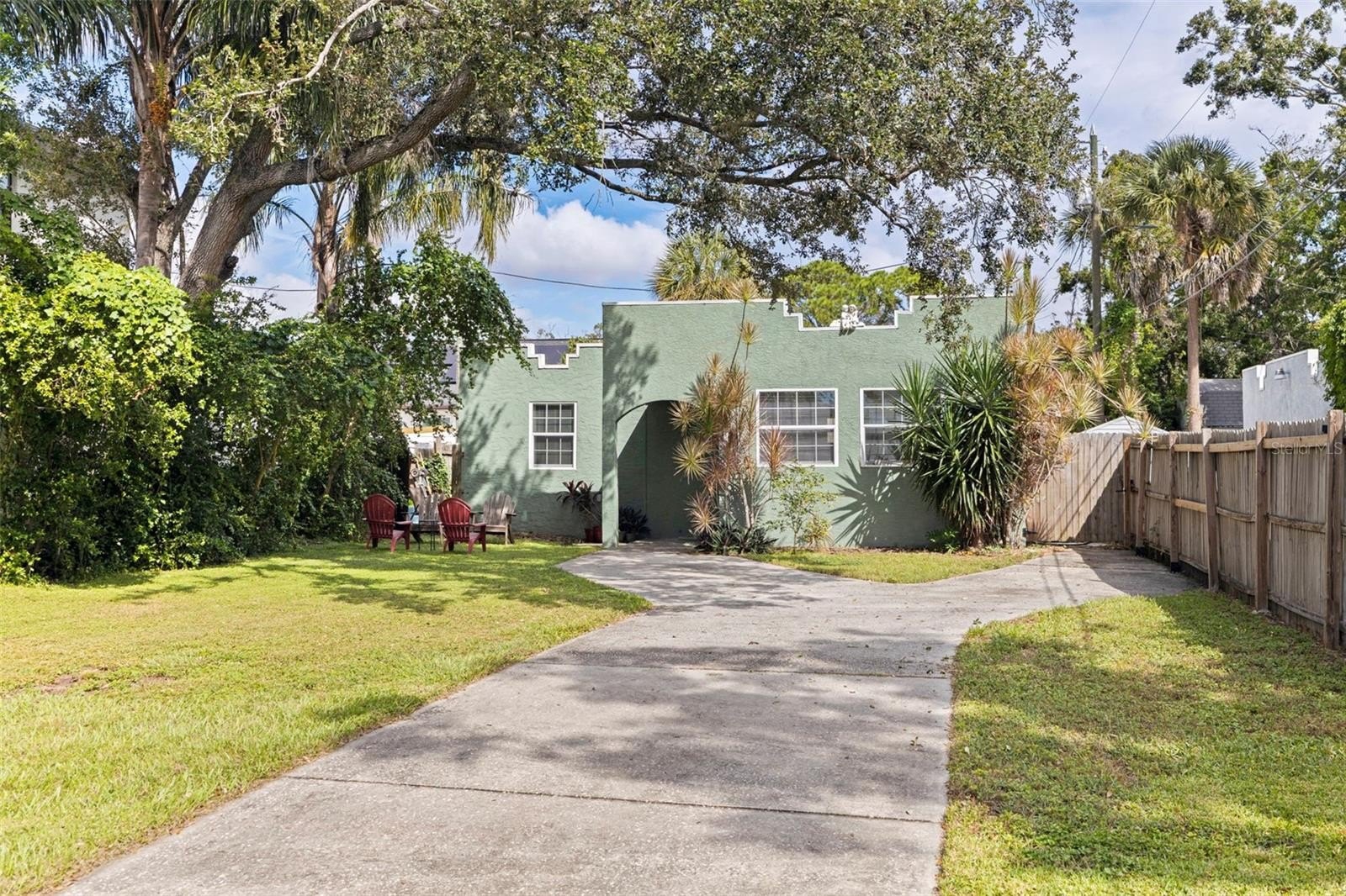 NEW IMPROVED PRICE! MEDITERRANEAN soul meets MODERN ease in this sun-kissed ST. PETE BUNGALOW — a true GEM that blends timeless architecture with thoughtful upgrades. UPDATED, high and dry (Flood Zone X), and full of charm, this 2BR/1BA lives LARGER than expected thanks to its smart layout and OVERSIZED 45’ x 126’ LOT with FENCED yard, alley access, and a long driveway for multiple cars, guest parking, or recreational vehicles. Inside, you’ll find the perfect mix of vintage architecture and 2020 updates — a NEW ROOF, AC, STAINLESS STEEL APPLIANCES, WATER HEATER, LUXURY VINYL PLANK, KITCHEN CABINETS, GRANITE COUNTERTOPS, DUAL SINKS in the BATHROOM, CROWN MOULDING, and FRESH PAINT—all adding to its MOVE-IN READY appeal. The LIVING ROOM glows with natural light through big windows, and the ARCHWAY to the kitchen brings a touch of ART DECO whimsy. The kitchen is a delight — open, FUNCTIONAL, and full of STORAGE with ample counter space and a hanging pot rack that’s ready for your inner chef. Off the kitchen is an expansive LAUNDRY/FLEX ROOM with direct BACKYARD ACCESS — perfect as a creative studio, home office, or even a potential third bedroom. The Jack-and-Jill bath connects a bedroom and the living space, making it CONVENIENT for guests while maintaining privacy. Every inch of this home has been thoughtfully REFRESHED for comfort and style. Step outside to your private BACKYARD OASIS — fenced, minimal maintenance, and ready for gatherings under the Florida sun. Add a fire pit, string lights, and you’ve got the ultimate ST PETE VIBE: casual, coastal, and full of personality. And then there’s the LOCATION — tucked in a quiet neighborhood just 10 minutes from DOWNTOWN ST PETE, 30 minutes to DOWNTOWN TAMPA, and a quick drive to GULF BEACHES, boutiques, and cafés. Whether you’re looking for your first home, downsizing, or investing, this one checks all the boxes. STYLISH. SOLID. SUPERBLY LOCATED. Enjoy a home that feels like a SUNNY RETREAT every day—modern comfort, timeless style, and a PRIME St. Pete location all in one!