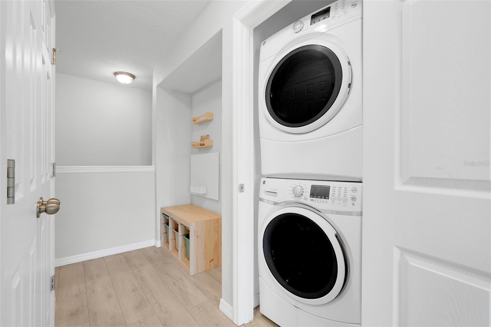 Step inside to find an open-concept layout with oversized porcelain tile flooring on the first floor and laminate throughout the second—no carpet in sight! The kitchen is a chef’s dream with solid surface countertops, stainless steel appliances, and plenty of space for cooking and entertaining. Upstairs, has a separate laundry closet that adds functionality and convenience.