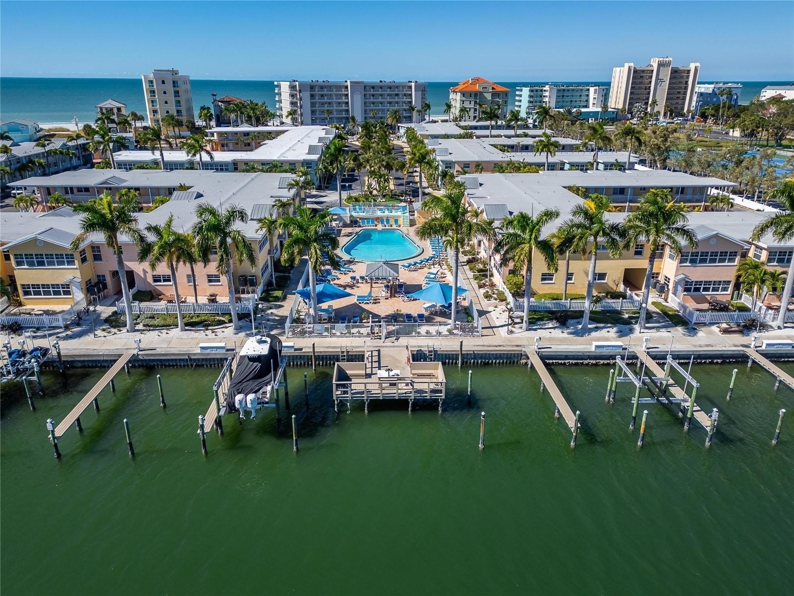 Nestled between the Gulf of America and the Intracoastal Waterway, this Newly remodeled condo offers the perfect blend of coastal charm and modern updates. Featuring 1 bedroom, 1 bath, and a bright bonus sunroom, the unit is designed with an open floor plan, ceramic tile flooring, white crown molding, beautiful cabinetry, and exceptional storage throughout. The generously sized bathroom includes built-in linen shelving, a fully tiled walk-in shower, and upgraded frameless glass doors. Refreshed, light and bright! The living room flows seamlessly into the dining area and sunroom, where barn doors provide privacy—making it an ideal space for a sleeper sofa or a dedicated home office. The updated kitchen boasts quartz countertops and brand-new appliances, including a refrigerator, stove, and dishwasher. Cable and internet are conveniently included in the HOA fee. Barefoot Beach offers resort-style living just steps from your front door. This waterfront oasis spans five acres along 400 feet of Intracoastal shoreline and features lush landscaping, a heated pool, sun deck, new community fishing dock, BBQ grills, outdoor dining areas, abundant laundry facilities (every building and first and second floors), bike storage, a club room, and private boat slips available for rent or purchase (subject to availability). Best of all, residents enjoy PRIVATE DEEDED BEACH ACCESS with an on-demand signalized crosswalk directly to the white powder-like sandy beach of Indian Shores. With NO rental period restrictions, or owner stay restrictions, this condo is an ideal investment property, second home, or primary residence. Owners may use the on-site property management company, select another rental service, or self-manage for maximum flexibility. The quaint beach town of Indian Shores offers nearby dining, shopping, miniature golf, and endless recreation. The Suncoast Beach Trolley stops just steps away, providing easy access up and down the Pinellas coast. Conveniently located near John’s Pass, Downtown St. Pete, museums, nightlife, the famous pier, and two international airports—PIE (25 minutes) and TIA (45 minutes)—this property truly delivers the best of Florida coastal living.