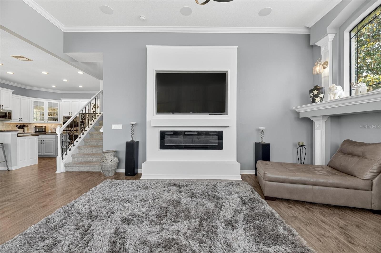 Welcome to 121 Falling Drive—where luxury, comfort, and thoughtful design come together in one exceptional residence. Located in the highly sought-after gated community of Stonewood, this home sits among meticulously maintained streets and lush landscaping, offering both privacy and prestige from the moment you arrive. Inside, you’ll find over 4,500 square feet of beautifully updated living space, including seven true bedrooms, three full baths, and two half baths—one conveniently positioned off the pool for effortless indoor-outdoor living. Over the past two years, the home has undergone impressive upgrades: a fully renovated chef’s kitchen, a refreshed pool area, a custom living room buildout, and an additional bedroom that expands the home’s already generous footprint. Designed with flexibility in mind, the layout easily supports multi-generational living, work-from-home needs, or simply room to spread out. Entertain in the oversized home theater equipped with ceiling-mounted surround sound throughout the house, stay active in the private gym with commercial-grade equipment, or unwind by the pool near glowing fire bowls. The gourmet kitchen features a gas cooktop, double ovens, abundant counter space, and an easy flow for hosting or everyday connection. When it’s time to recharge, the primary suite offers a true retreat—complete with dual showers, double vanities, two walk-in closets, an additional flex room ideal for an office or nursery, and direct access to the sparkling pool just steps away. Notable upgrades include a 2023 roof, tankless gas water heater, spray-foam-insulated walk-in attic, electric vehicle charging station, and wiring for a whole-home generator—delivering convenience and peace of mind. Outdoors, the backyard feels like a private resort. A travertine pool deck surrounds the infinity-edge spa, fire bowls, and fire pit, all overlooking an oversized, fully fenced yard. The covered lanai is pre-plumbed for an outdoor kitchen and equipped with built-in speakers and multiple TV hookups—perfect for quiet mornings or weekend gatherings. A private rear gate opens to a peaceful pond where you can enjoy fishing or simply unwind with the water views. Don’t miss the charming third-floor bonus room, complete with a bay window overlooking the pond—an ideal hideaway for reading, working, or relaxing.