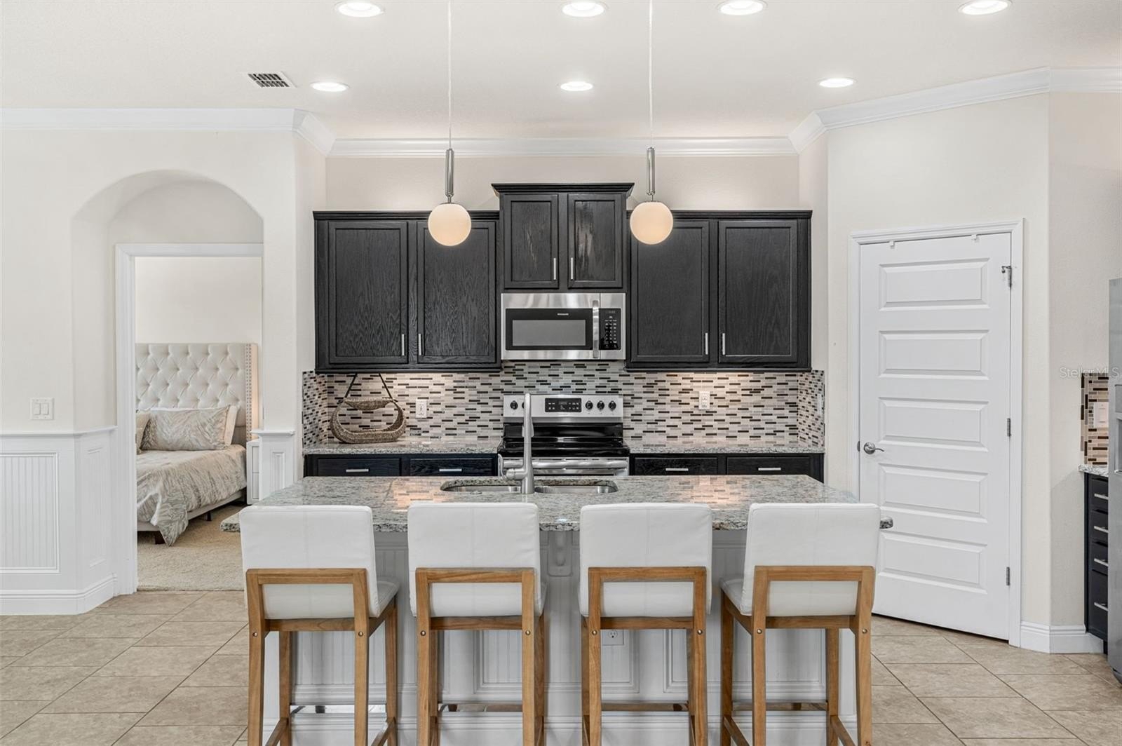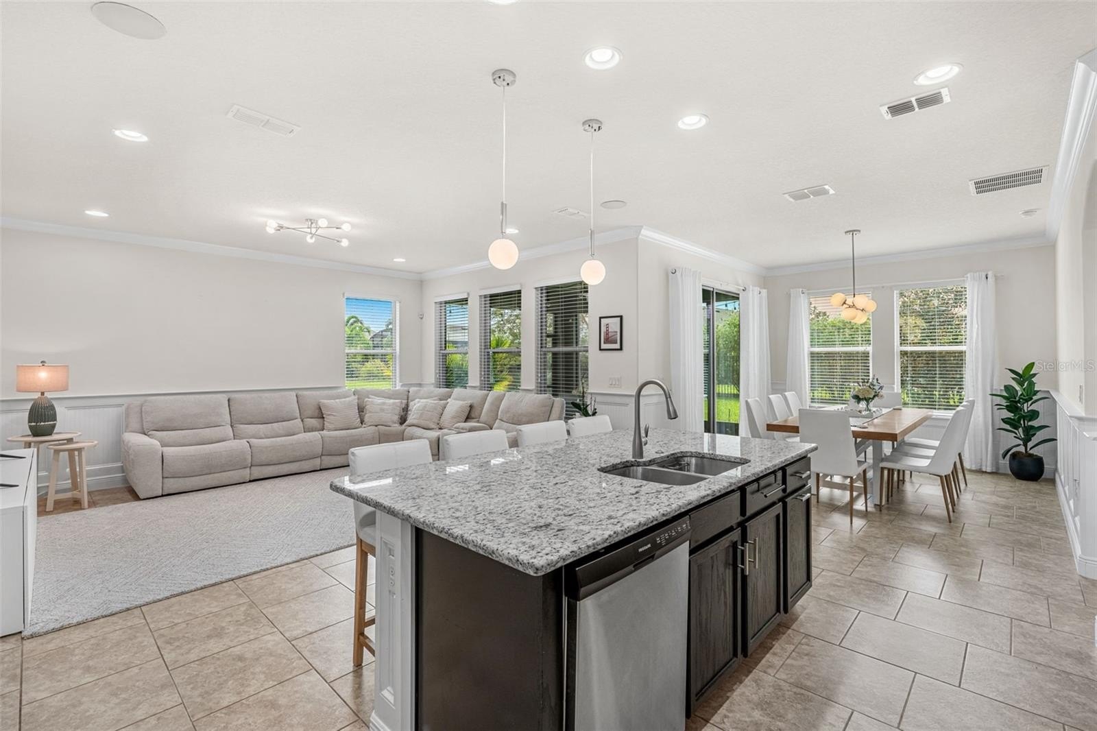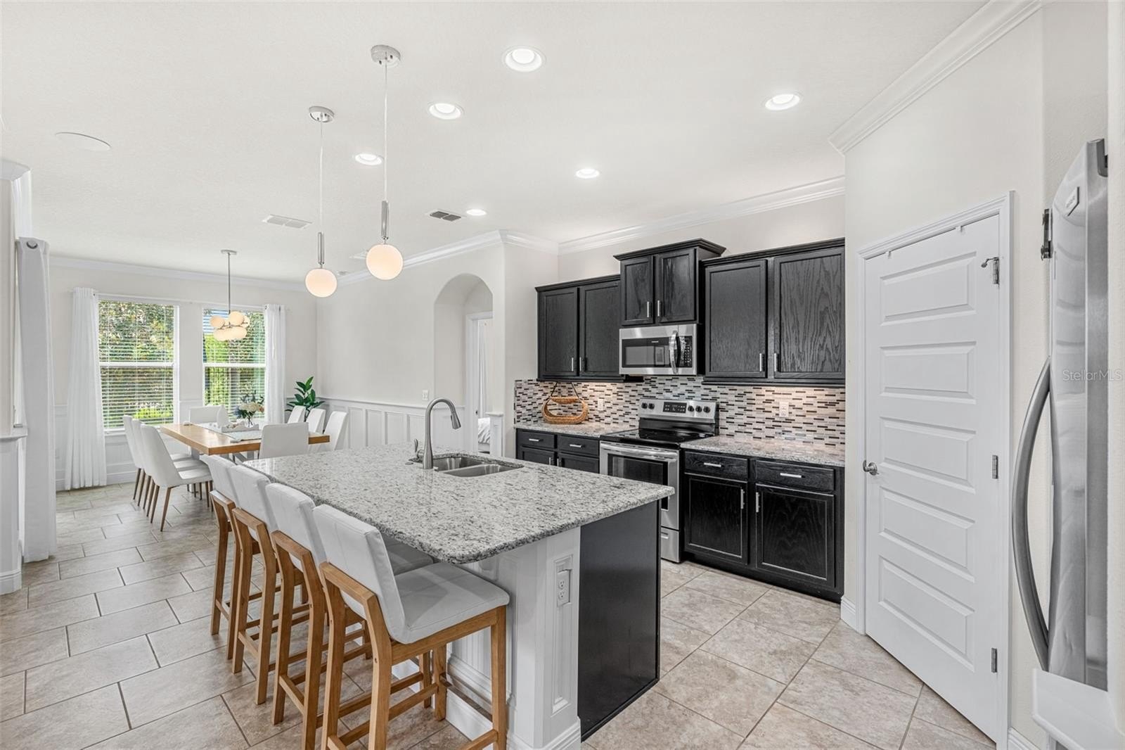 At the heart of the home, the spacious kitchen features stainless steel appliances, abundant cabinetry, and a large center island that flows effortlessly into the living and dining areas—ideal for hosting gatherings or enjoying quiet family dinners. The primary suite is a true retreat with a walk-in closet, dual vanities, and a luxurious en-suite bath. Three additional bedrooms provide ample space for guests, a home office, or a growing family.