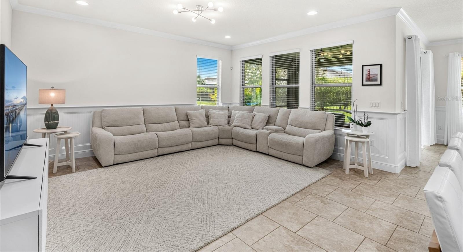 Step outside to the screened lanai and take in serene views of the surrounding landscape, or unwind on the covered front porch as the neighborhood comes alive with friendly faces and golf carts passing by.