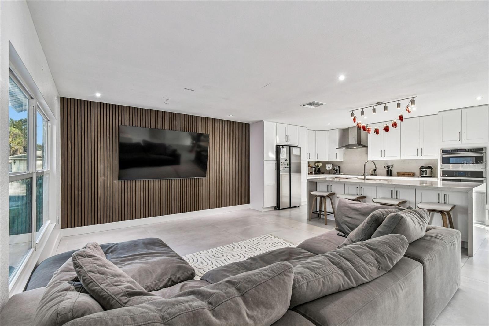 Seller motivated! This fully renovated 4-bedroom, 3-bath home offers a modern open floor plan and exceptional quality throughout, featuring a completely updated kitchen with a massive waterfall island, double ovens, drop-in cooktop with hood range, new cabinets, countertops, light fixtures, doors, flooring, accent walls, and all new plumbing behind the walls. All bathrooms have been remodeled within the last year and include automatic toilets, hotel-style mirrors, upgraded fixtures, and beautifully tiled showers. The master suite features a custom wood ceiling, a large walk-in closet, and a spa-inspired bathroom with a separate tub and shower and dual sinks. Additional recent improvements include new ductwork, new AC, new roof, new windows, new exterior water heater, updated stucco texture, fresh interior and exterior paint, new fascia, soffits, gutters, and updated landscaping with new palm trees. The home also offers a two-car garage, fully fenced yard, and renovated lanai, with no deferred maintenance. Property is priced under appraised value, and the current appraisal is available. Also a clean four-point.