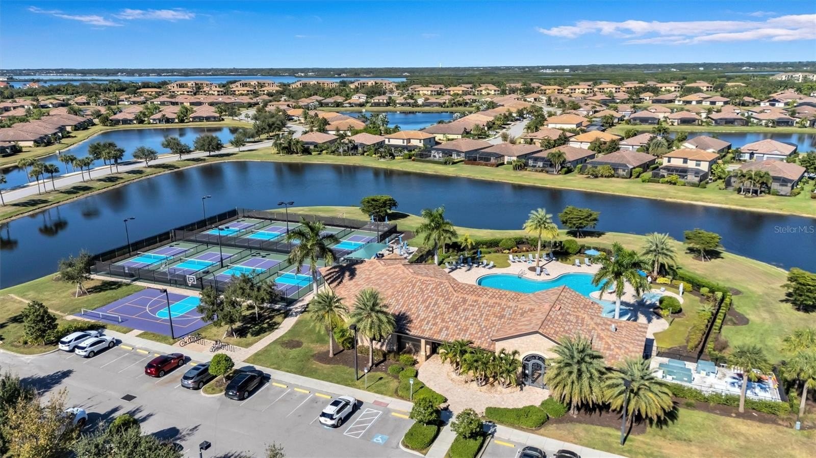 Welcome to the ultimate Florida lifestyle in the premier gated community of River Strand Golf & Country Club, where luxury meets leisure and every day feels like a vacation! This spacious property features 3 Bedrooms, 2 Baths, and a 3-Car Garage, and includes Golf Deeded Membership to the premier 27-hole championship golf course designed by renowned architect Andrew Green. The heart of the home is its open-concept main living area, featuring an inviting family room and a bright, eat-in kitchen that seamlessly connects to your own private backyard oasis through hurricane-impact sliding doors. Step outside to your personal paradise: a large, covered lanai featuring a heated, saltwater pool and spa, all set within an upgraded No-see-UM screened enclosure ideal for soaking up the Florida sunshine. A true bonus of this property's footprint is the extended backyard greenspace, offering ample room to enjoy the outdoors. As you walk through your front screened lanai area, you’ll note that the interior has been upgraded with Plantation shutters throughout, and the kitchen boasts recently replaced appliances, including a new dishwasher and refrigerator, both installed in 2024. The primary bedroom offers an ample walk-in closet, garden tub and tiled shower. The community offers two resort-style pools (one with a lazy river and Tiki Bar) and six satellite pools. For the active resident, there are eight Pickleball Courts, 9 Har-Tru tennis courts, and a fitness center. All amenities are enjoyed within an environment that offers 24-hour security, gated entry, and a bustling year-round social calendar. River Strand residents recently voted in favor of an $8.4+ million master plan upgrade project, set to expand the Grille Room & Bar, outdoor dining and pergola area, lobby decor, painting of the entire Clubhouse, and enlargement of the Tiki Bar,. River Strand is just 5 minutes from I-75, Costco, Target, the upcoming Whole Foods, and The Marketplace Shops, with Lakewood Ranch, The Mall at UTC Town Center, and Waterside Place all nearby. World-renowned Gulf Coast beaches of Siesta Key and Anna Maria Island, and the Sarasota, St. Pete, and Tampa airports are all a quick commute away. Schedule your showing and discover why River Strand isn't just a community – it’s a LIFESTYLE!