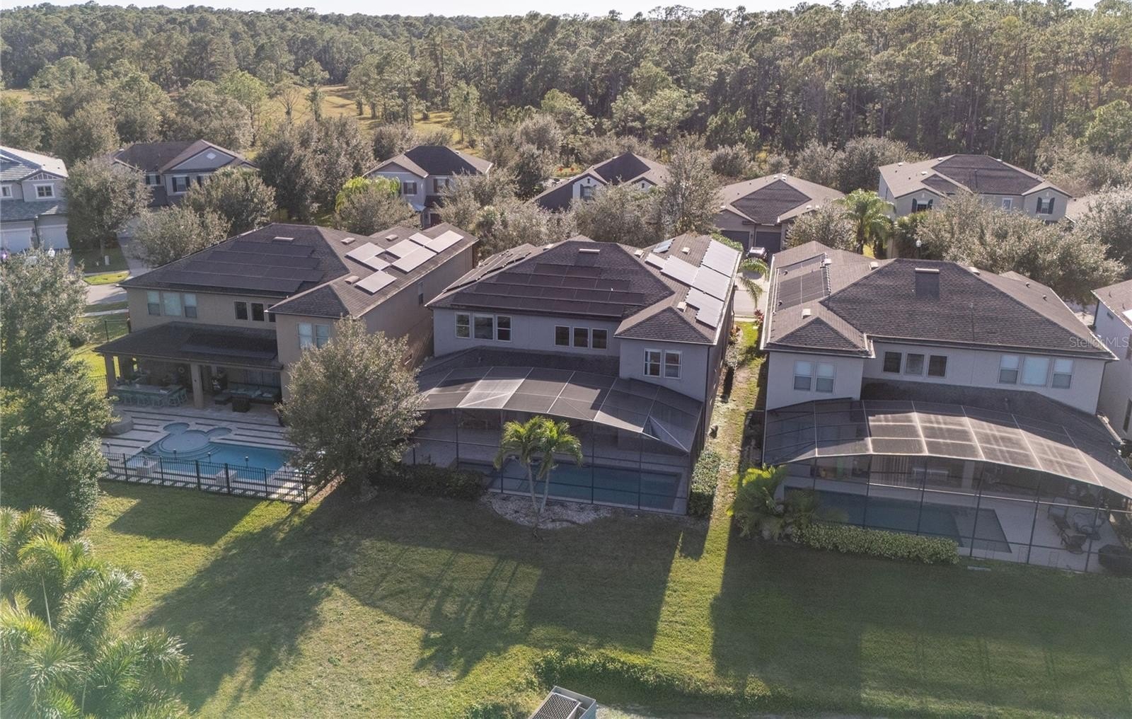Outdoors, enjoy a heated pool and spa, enclosed under a screen cage overlooking a serene pond — perfect for relaxing, entertaining, or enjoying Florida weather year-round. A large covered lanai and deck surround the pool, offering outdoor living appeal. The home also includes a 3-car attached garage, a private elevator (rare in single-family homes), and a landscaped. The house is equipped with a salt water filtration system.