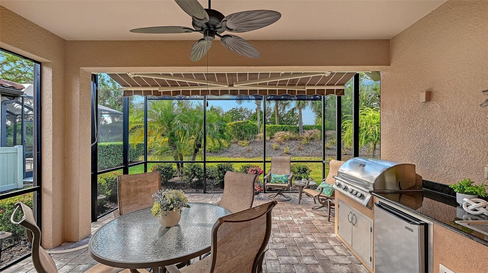 Beautifully positioned in the amenity-rich Esplanade Golf & Country Club, this home offers a truly effortless Lakewood Ranch lifestyle. A brand-new A/C system, whole-house Generac generator, and clear hurricane shutters provide exceptional comfort and peace of mind, while natural light enhances thoughtful interior details including upgraded flooring in the primary suite and study, stainless steel appliances, tray ceilings, crown molding, and a spacious open floor plan. The primary suite is a serene retreat with a walk-in shower, dual-sink vanity, and custom organized closet. Outdoor living is exceptionally inviting with an extended lanai featuring an outdoor kitchen, paver patio, Sun Setter retractable awning, and pull-down shades—andit’s the perfect place to unwind and enjoy the beautiful sunsets. Additional enhancements include a laundry room with storage, utility sink, and built-in drying racks, an epoxy-finished garage floor, overhead storage, and work bench. With pay-and-play golf available to non-deeded members and a short walk to the community’s pools, fitness centers, sports courts, and the Bahama Bar, this home offers an easy, elevated way to embrace everything Esplanade living has to offer, all just minutes from Lakewood Ranch’s world-class shopping, dining, entertainment, beaches, schools, and medical facilities.