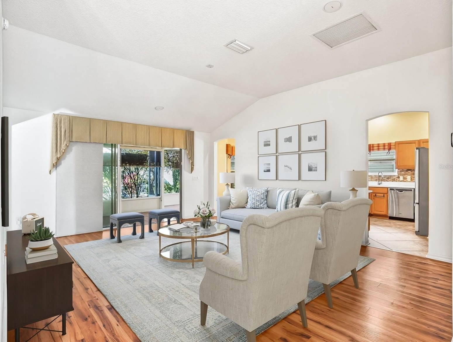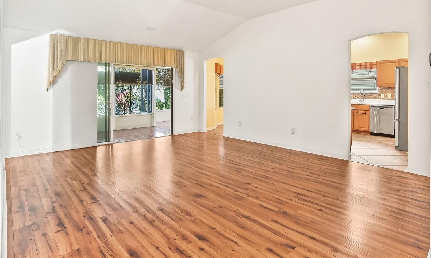 Inside, you’ll find a tasteful blend of wood laminate and tile flooring throughout. The spacious great room with dining area features sliding glass doors that open to a covered, screened, and extended lanai, plus an outdoor patio with barbecue grill connected to natural gas. This home is perfect for indoor and outdoor living.