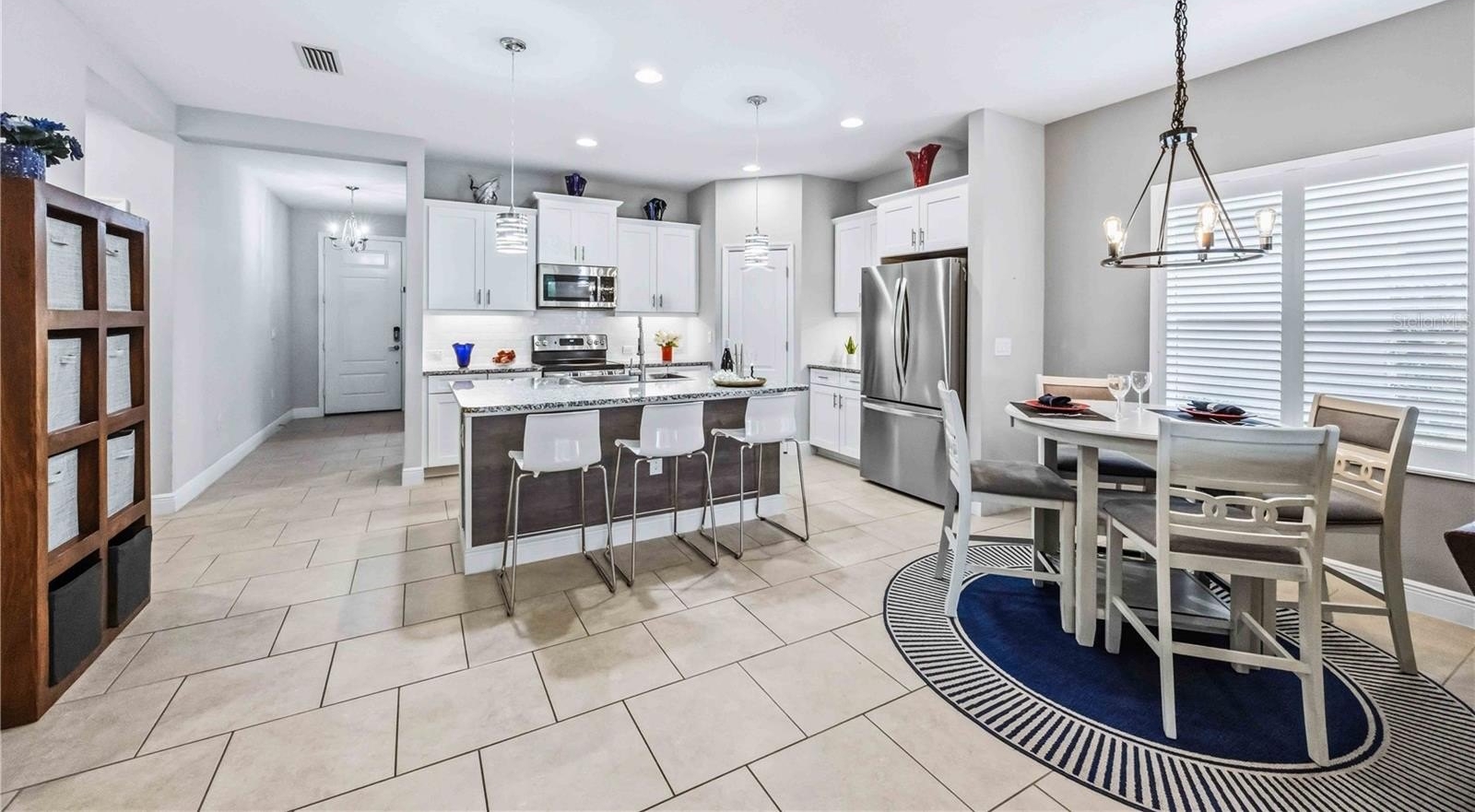 Step inside to an open-concept living space filled with natural light. The great room impresses with a striking tray ceiling, adding architectural depth, while ceramic tile flooring flows throughout the main living areas for a clean, elegant look.