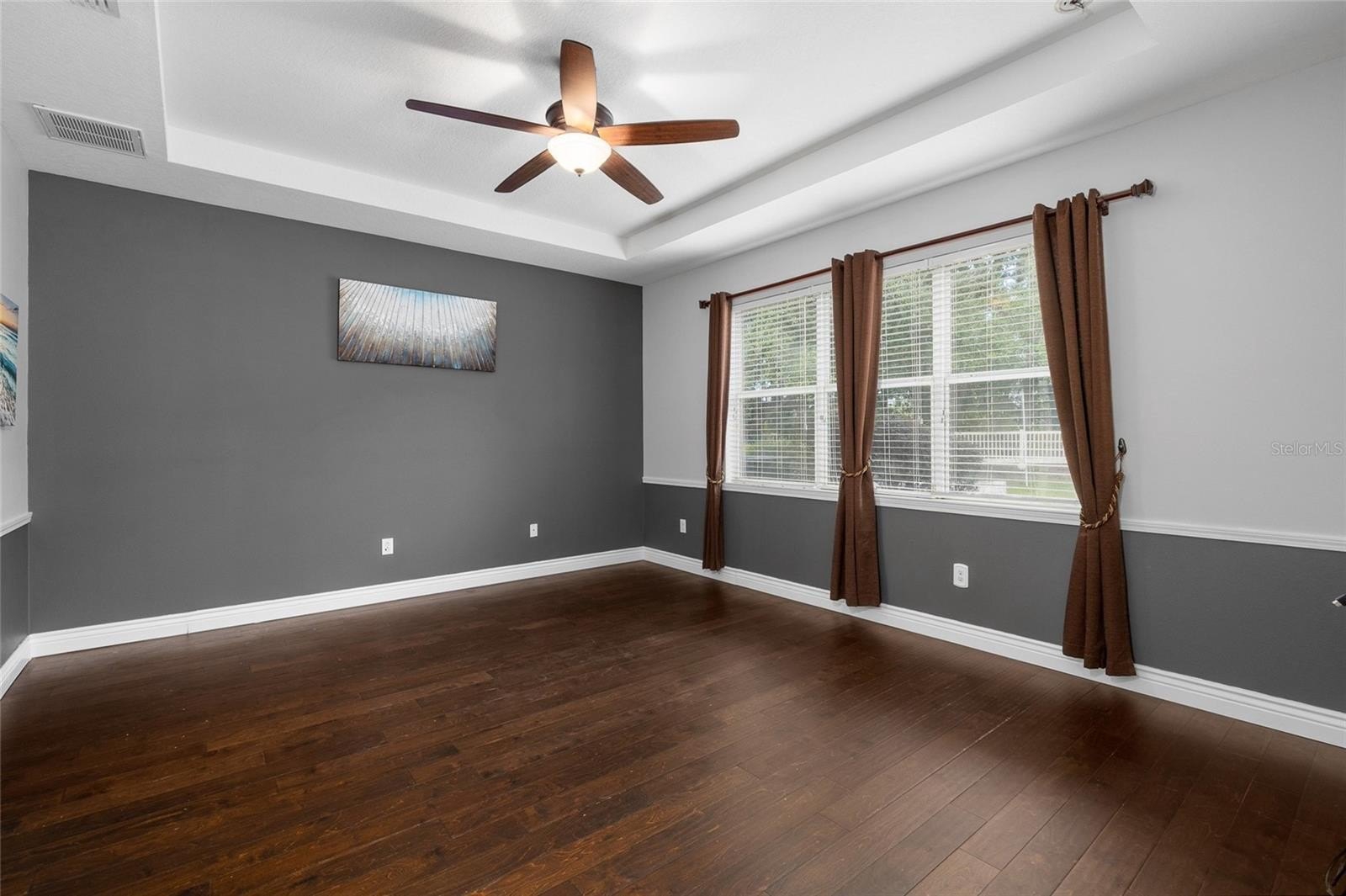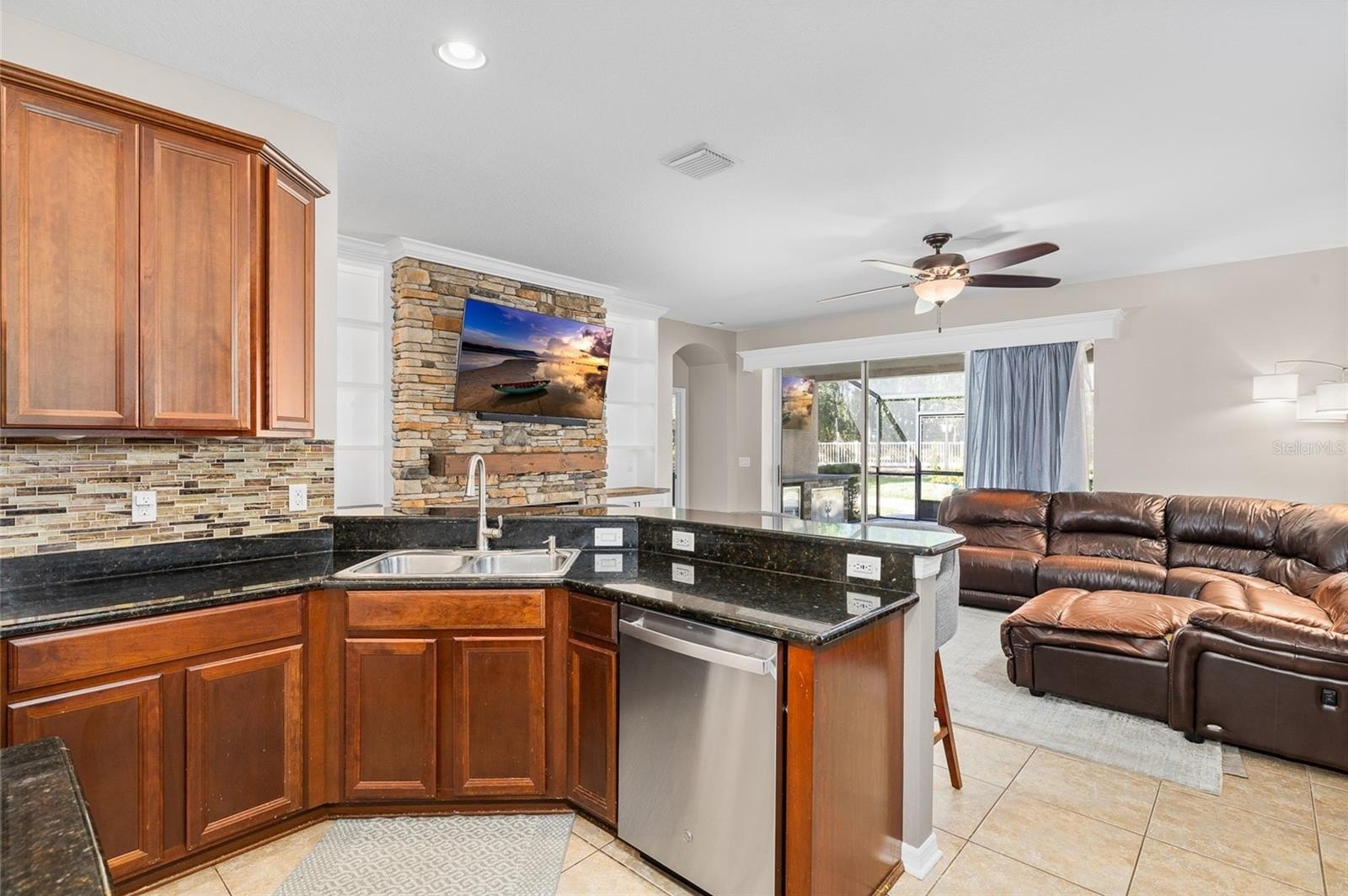 OVERSIZED CONSERVATION LOT! This wonderful home is located in the desirable Channing Park! This Taylor Morrison home showcases the well-designed Elmhurst model, which includes 4 bedrooms, 3 full bathrooms, an open split floorplan, and a dining room/ living room combo. Upon entry, you will notice the tray ceilings and tile floors throughout, as well as a unique Rotunda with Crown Molding at the center of the home. One of the bedrooms and full bathrooms is separately located next to the entryway, perfect to use as a Guest bedroom for extra privacy! The open kitchen features Stainless-Steel Appliances, Beautiful Wood Cabinets, Mosaic Tiled Backsplash, Granite Countertops, Breakfast Nook, Breakfast Bar, and a Center Island! The kitchen overlooks the family room which can be ideal for entertaining guests, with an Electric Fireplace and a Beautiful Stone Mantle, as well as a built-in entertainment center! The primary suite is very spacious, featuring a large Walk-in Closet with Organizers, and an ensuite bathroom with a Double Sink Vanity, Tiled Garden Tub, & Separate Walk-in Shower! Step outside and enjoy the Extended, Screened in Lanai with Stone Pavers, a Built-in dry bar with a mini fridge, Fire Pit, and Playground! The backyard is very private with plenty of space for endless possibilities! This community has so much to offer, with zoning for A-rated schools, a community pool, clubhouse with a gym, dog park, and skate park/ basketball court! CALL TODAY FOR YOUR PRIVATE VIEWING!