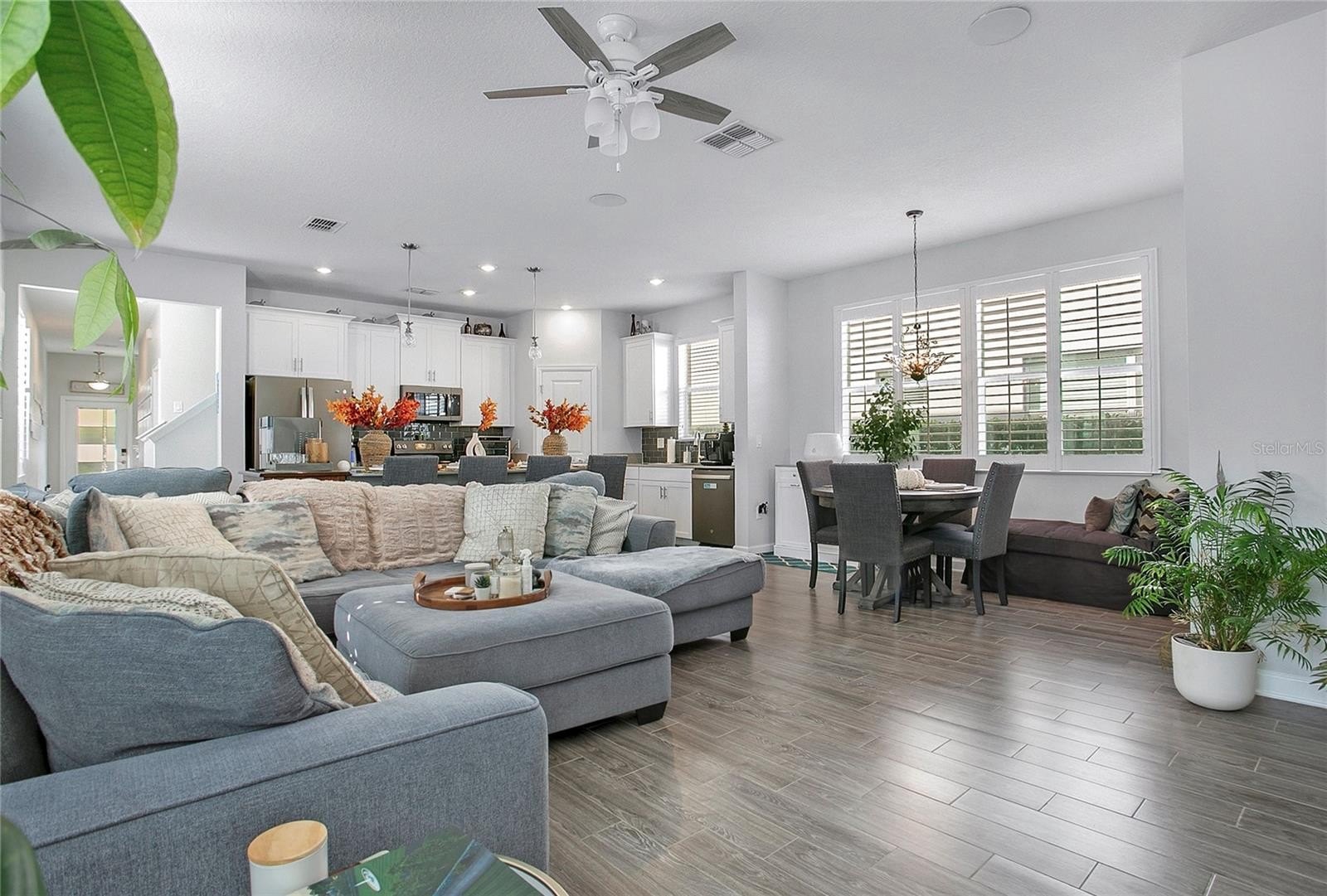 Welcome to this beautifully updated 4-bedroom, 3.5-bathroom home in the sought-after Storey Park community! This meticulously maintained residence features nearly $60,000 in recent improvements, making it truly move-in ready. You'll be greeted by an open floor plan with a spacious living room, dining, and kitchen combo that flows seamlessly. Desirable *FIRST-FLOOR PRIMARY BEDROOM* with ensuite bathroom, walk-in closet and custom California Closet system. First-level half-bath convenient for guests. Head upstairs to discover a versatile, generously sized loft area and a *SECOND PRIMARY BEDROOM* with ensuite bath and walk-in closet. Two additional bedrooms share a Jack-and-Jill bathroom. The home features wood-look and ceramic tile, with carpeting in upstairs bedrooms for a sophisticated blend of style and comfort. The sleek kitchen showcases stainless steel appliances, a new dishwasher (2023), large pantry, quartz counters and solid wood cabinets. Interior laundry room adds convenience. Energy efficiency meets modern living with solar panels and a new Culligan water filtration system (2024). The home also features a Tesla EV wall charger, updated garage door opener with new springs and bearings, and a whole-home Ring security system. Other recent updates include fresh exterior paint (2025), newer interior and garage paint, new dryer (2025), wood tile flooring installed throughout (2021), new gutters and downspouts, exterior caulking and roof sealing, pressure-washed and sealed pavers, and plantation shutters. Elegant chandeliers grace the dining room, front hall, and kitchen, while ceiling fans throughout provide comfort year-round. Exceptional outdoor curb appeal features professional landscaping and decorative pavers. The irrigation system with conserve settings maintains the lush landscape effortlessly. The garage offers great storage with shelving units. Located in the award-winning Storey Park community, residents enjoy amenities such as resort-style swimming pools, playground, tennis and basketball courts, and more. Don't forget top-rated schools and convenient access to Orlando's attractions, Orlando International Airport, major highways, extensive dining & shopping, and world-class theme parks. About a one-hour drive to Florida's Space Coast and Cocoa Beach. This home is primed and ready for its new owners! Be sure to check out the 3-D Walkthrough Tour.