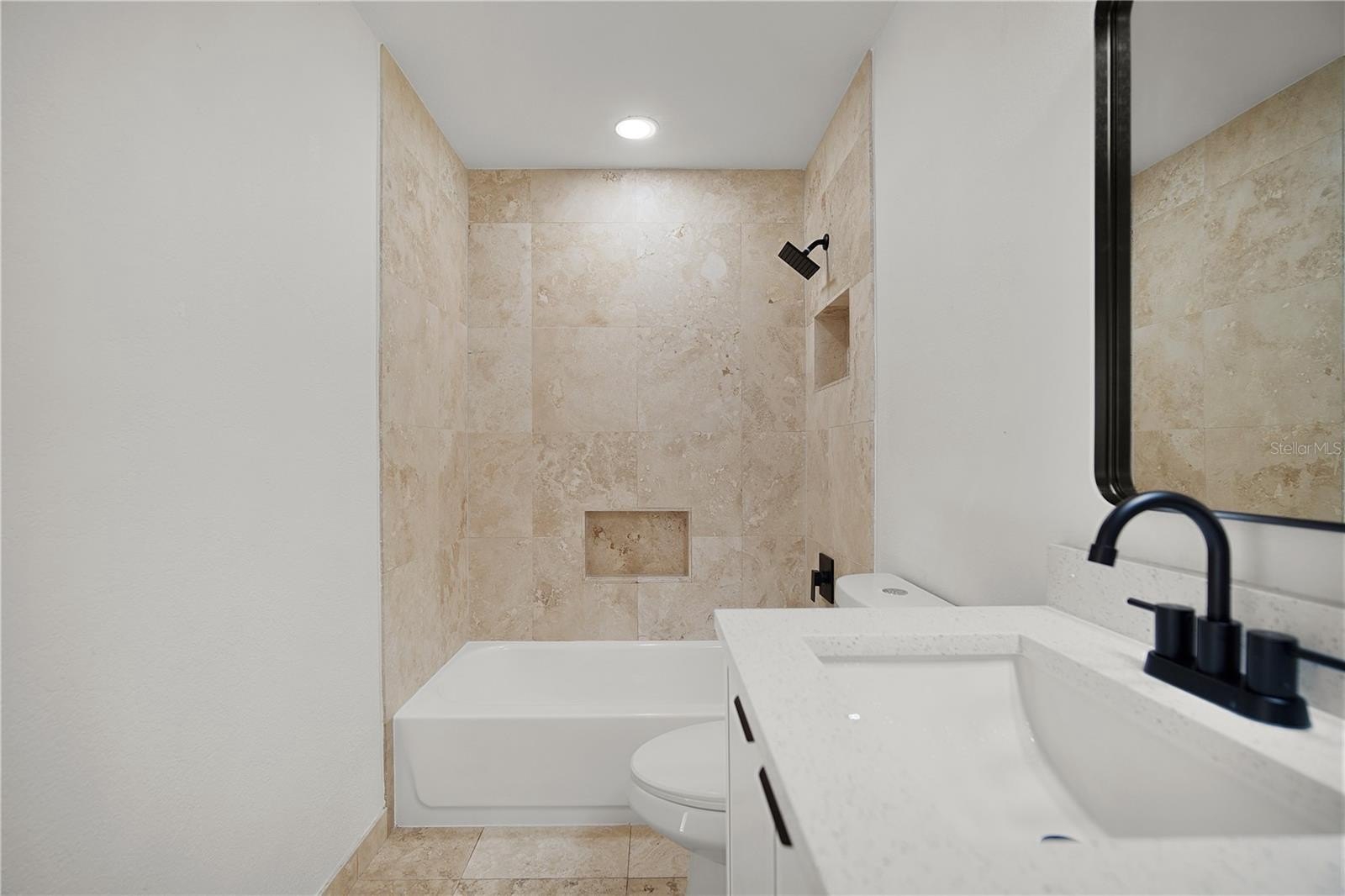 Recent improvements include a new roof installed in 2024, an approximately 8-year-old AC system that has been regularly maintained, and a newer water heater. The home offers an updated kitchen with quartz countertops, modern cabinetry, and stainless steel appliances, updated flooring throughout, and fully renovated bathrooms with contemporary finishes. Numerous additional upgrades throughout the home enhance comfort and overall presentation.