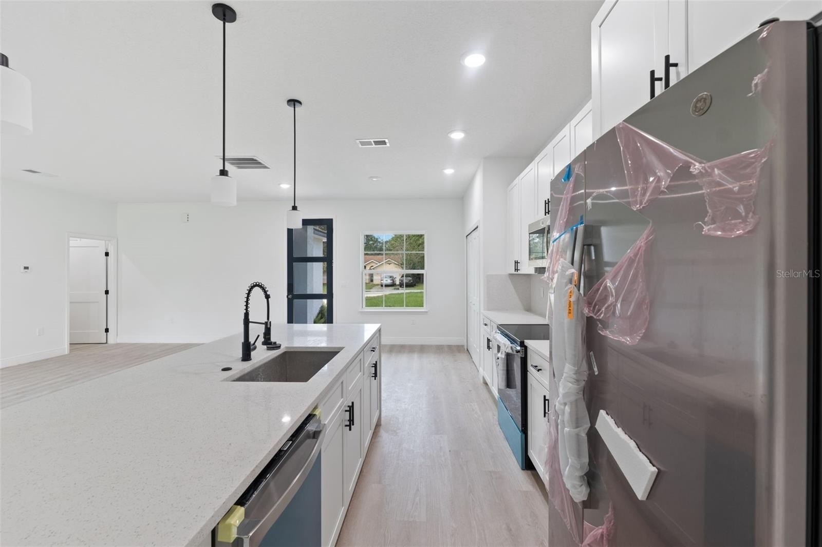 Step inside to a bright and airy living room and dining room, ideal for entertaining or relaxing with loved ones. The heart of the home is the gorgeous kitchen, featuring solid wood cabinets, stone countertops, and modern appliances, all included. Whether you're cooking for guests or enjoying a quiet meal, this space blends function with style.