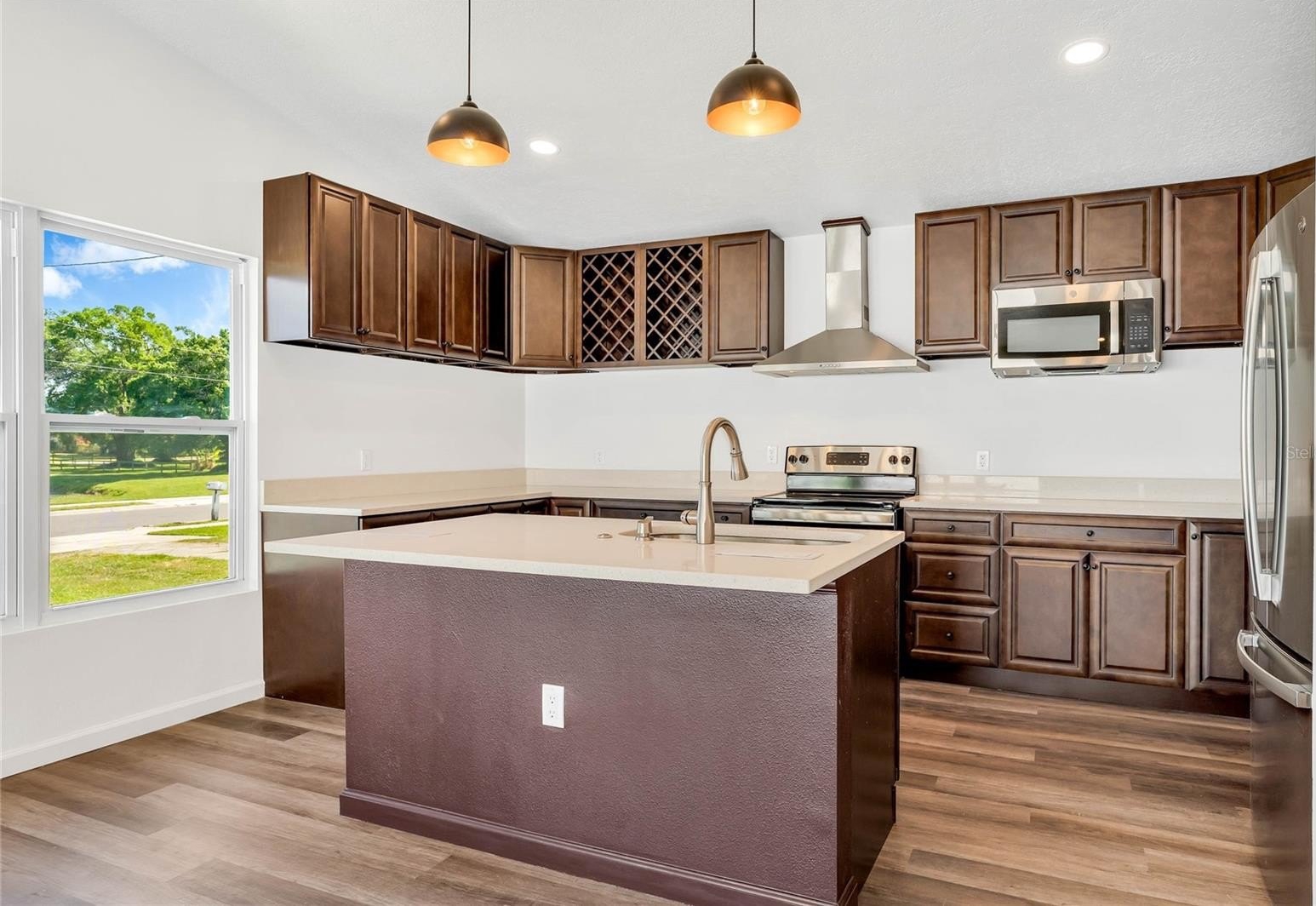 • Your Family will appreciate the upscale features like the Kitchen’s Quartz Counter tops with pop-up Power Outlets, Soft-Close Cabinets and Stainless-Steel Appliances.