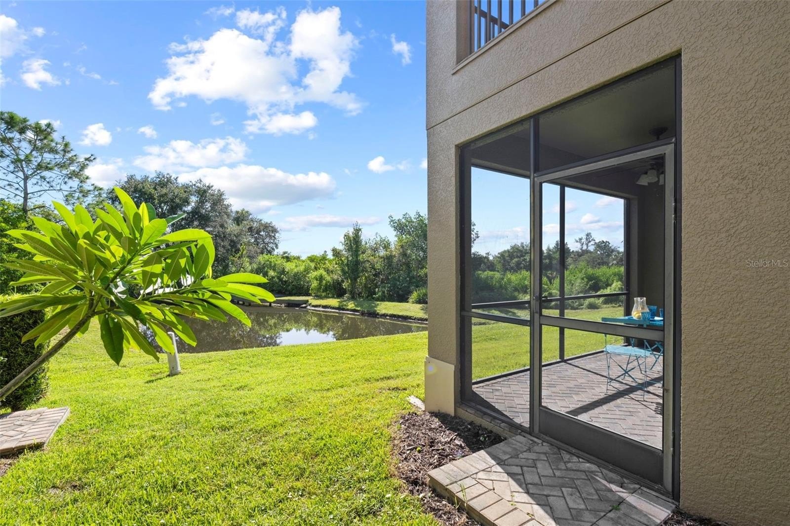 The first level is designed for comfort and entertainment, featuring two bedrooms and a large living room complete with a wet bar and mini fridge—a perfect setup for hosting guests. Just outside, relax on your screened patio overlooking a tranquil private pond. This floor also boasts a full bath and a spacious laundry room for added convenience.