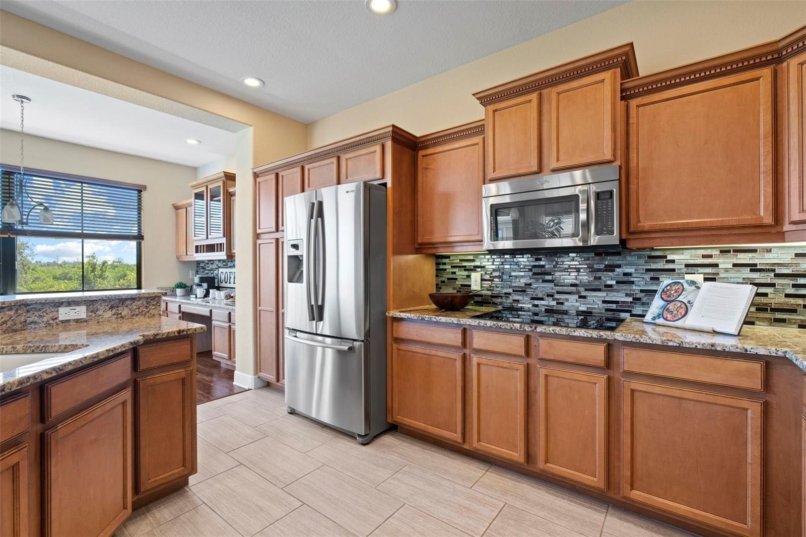 Venture upstairs to the second-floor living area, and you'll be greeted by beautiful hardwood flooring that flows throughout most of the space. The kitchen is a chef's dream, equipped with solid wood cabinets, granite counters, and stainless steel appliances, all while offering private water views and wildlife sightings from the covered balcony. The kitchen's dinette section includes a versatile built-in desk or buffet area and opens to an inviting patio, ideal for savoring your morning coffee. The expansive living room and formal dining area are perfect for relaxing or entertaining friends and family. The bonus loft area serves as a versatile office space or a cozy play area for children.