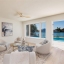 Large interior living spaces easily host intimate gatherings or lively celebrations. The chef’s kitchen features white shaker cabinetry, generous drawer storage, premium stainless steel appliances including a KitchenAid double oven/convection range and microwave. The expansive quartz countertops offer an oversized breakfast bar ideal for entertaining. The split bedroom plan provides privacy, with a spacious waterfront primary suite large enough for a seating area or office. The spacious primary bedroom includes a waterfront seating area, Luxurious bath with a dual-sink vanity, walk-in custom shower, and a beautifully finished custom walk-in closet. Two guest bedrooms, one of which is waterfront, share an updated, spacious, well-appointed bath.