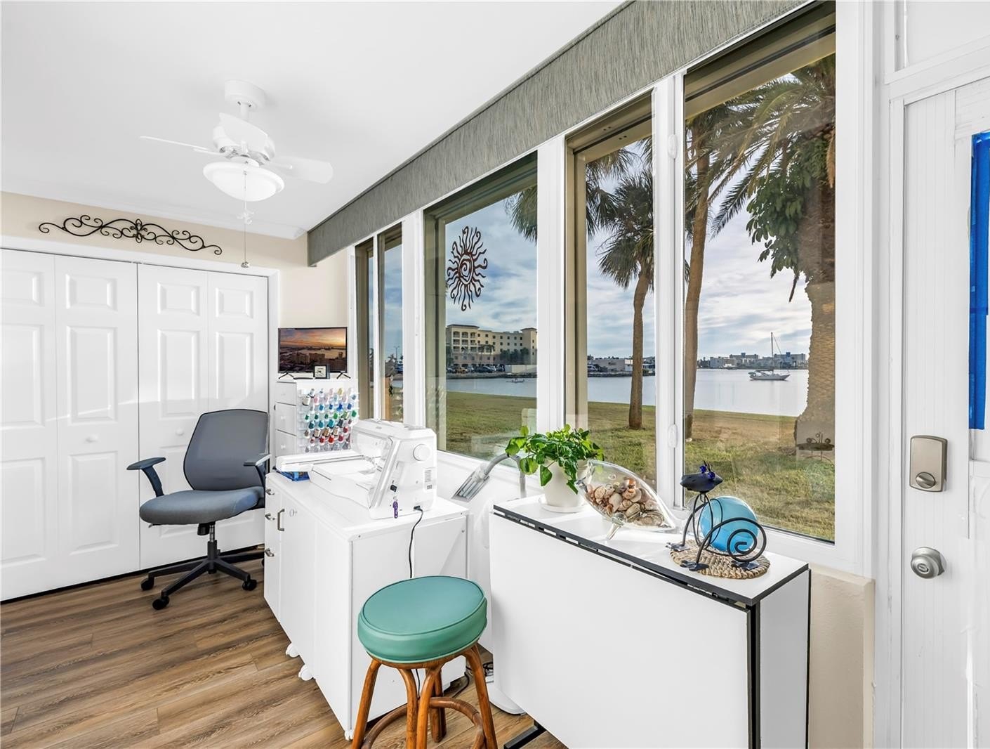 This wonderful waterfront condo is a few mere steps to Boca Ciega Bay and offers magnificent water views and majestic sunsets. It features 2 bedrooms, 2 baths plus a bright and airy Florida room. The kitchen has quartz countertops, glass tile backsplash and lots of cabinets. All new LVP flooring throughout and fresh interior paint. New stainless appliances and water heater in 2015, new AC in 2021, totally replumbed in 2015, impact windows along the waterside and hurricane shutters on all windows and on the Florida room door. Another nice touch is motorized blinds on the west windows plus custom closet shelving in both closets. Your assigned covered parking space is just steps from your front door and is deeded to the unit. Sea Towers has amenities galore, including 2 heated pools, a clubhouse, tennis courts, shuffleboard courts, fishing dock, putt-putt golf, pickleball & 24 hours security guard, You're just away from some of the best beaches in the world, shopping & restaurants. New lower HOA fee for 2026, down to $871 from $991 in 2025!
