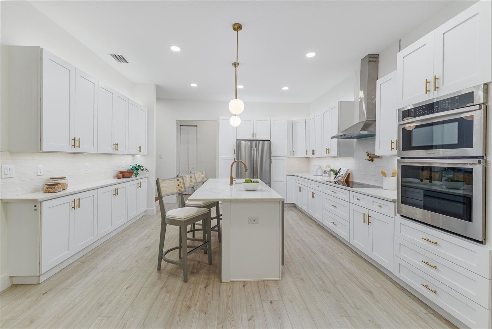 A second chance at a great home! The previous contract did not proceed due to buyer financing, making this property available once again. Built in March 2024, this almost-new, custom 4-bedroom, 3.5-bath residence offers high-end finishes, thoughtful design, and exceptional functionality. Situated on a spacious corner lot in an established neighborhood, the home features two large, separate driveways with parking for 8+ vehicles—ideal for gatherings, multi-vehicle households, or recreational parking. Inside, you’ll find a luxurious, oversized kitchen and laundry room designed for both beauty and efficiency. The kitchen features 42” upper cabinets, quartz countertops throughout, and includes all appliances. The first floor boasts 8-foot doors and custom closets throughout, adding to the home’s upscale feel. A commercial-grade reverse osmosis drinking water system supplies filtered water directly to the refrigerator and pot filler—an exceptional upgrade for both convenience and quality. The laundry room is equipped with a premium LG WashTower washer and dryer. Built with performance in mind, the home includes foam block insulation for enhanced energy efficiency, along with low-E windows and doors to help maintain comfortable indoor temperatures year-round. Outdoor living is equally impressive with a large covered tiled front porch, a tiled rear covered patio, and a generously sized, fully fenced backyard with a 6-foot privacy fence—perfect for entertaining, pets, or relaxing in your own private space. This is a truly turnkey, high-quality home that combines modern construction, custom details, and an ideal lot layout. Staging furniture is available for purchase separately, making this an easy move-in opportunity. Conveniently located close to Bartow High School, and Downtown Bartow—home to local events and beloved community parades. Just minutes from Mary Holland Park, the Bartow Library, youth baseball and soccer fields, middle schools, and a short drive to Nye Jordan Park featuring pickleball courts and basketball courts. This home presents a rare opportunity to move into a custom newer build without the wait of new construction. For added peace of mind, this home includes a one-year warranty starting at closing.