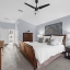 The home welcomes you with beautifully landscaped grounds and a southwest-facing front elevation that captures warm afternoon light. Inside, the open-concept floor plan is bathed in natural light, highlighting tile, laminate, and carpet flooring, high ceilings, and ceiling fans throughout. Every room is thoughtfully laid out for comfort, convenience, and a seamless flow between spaces.