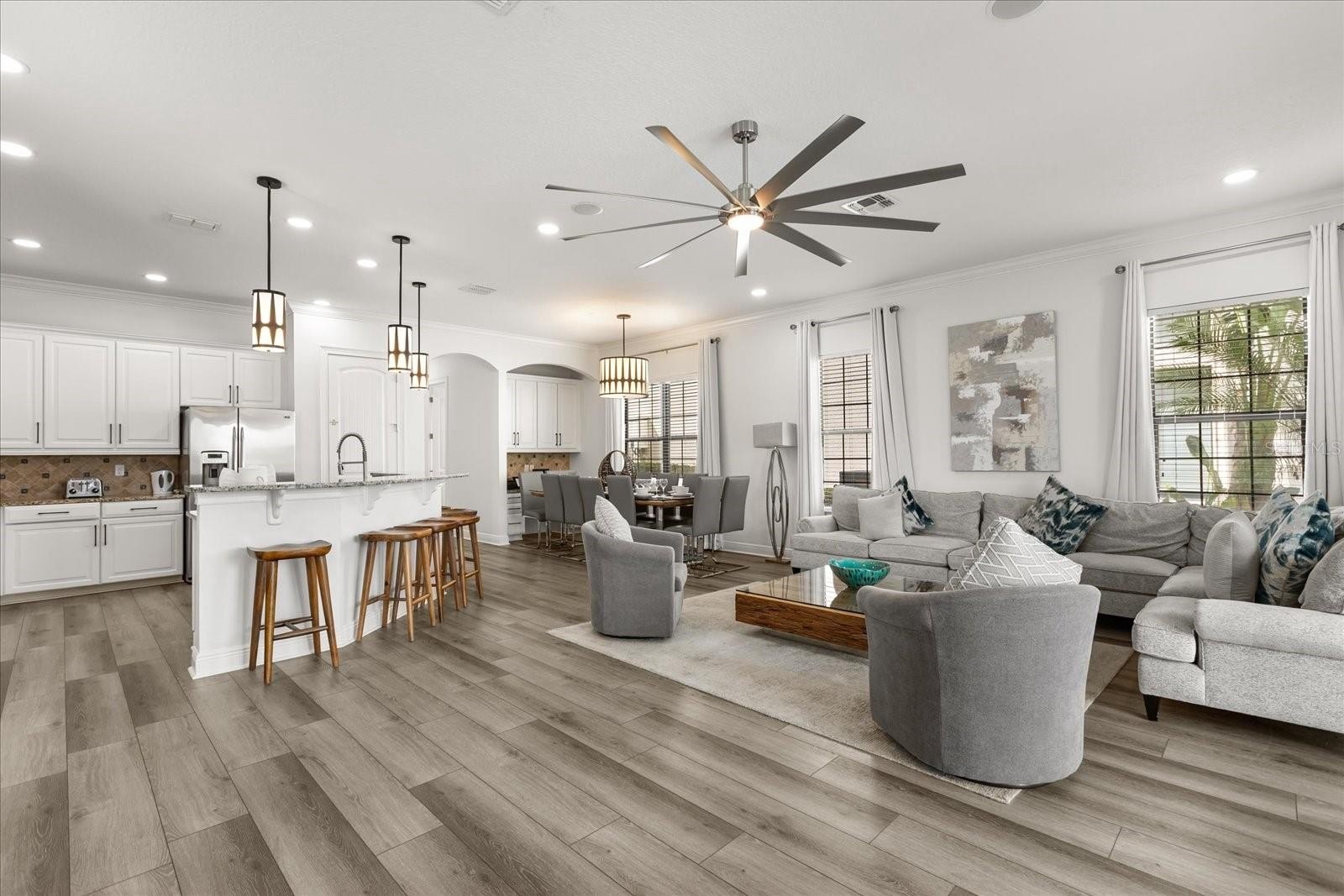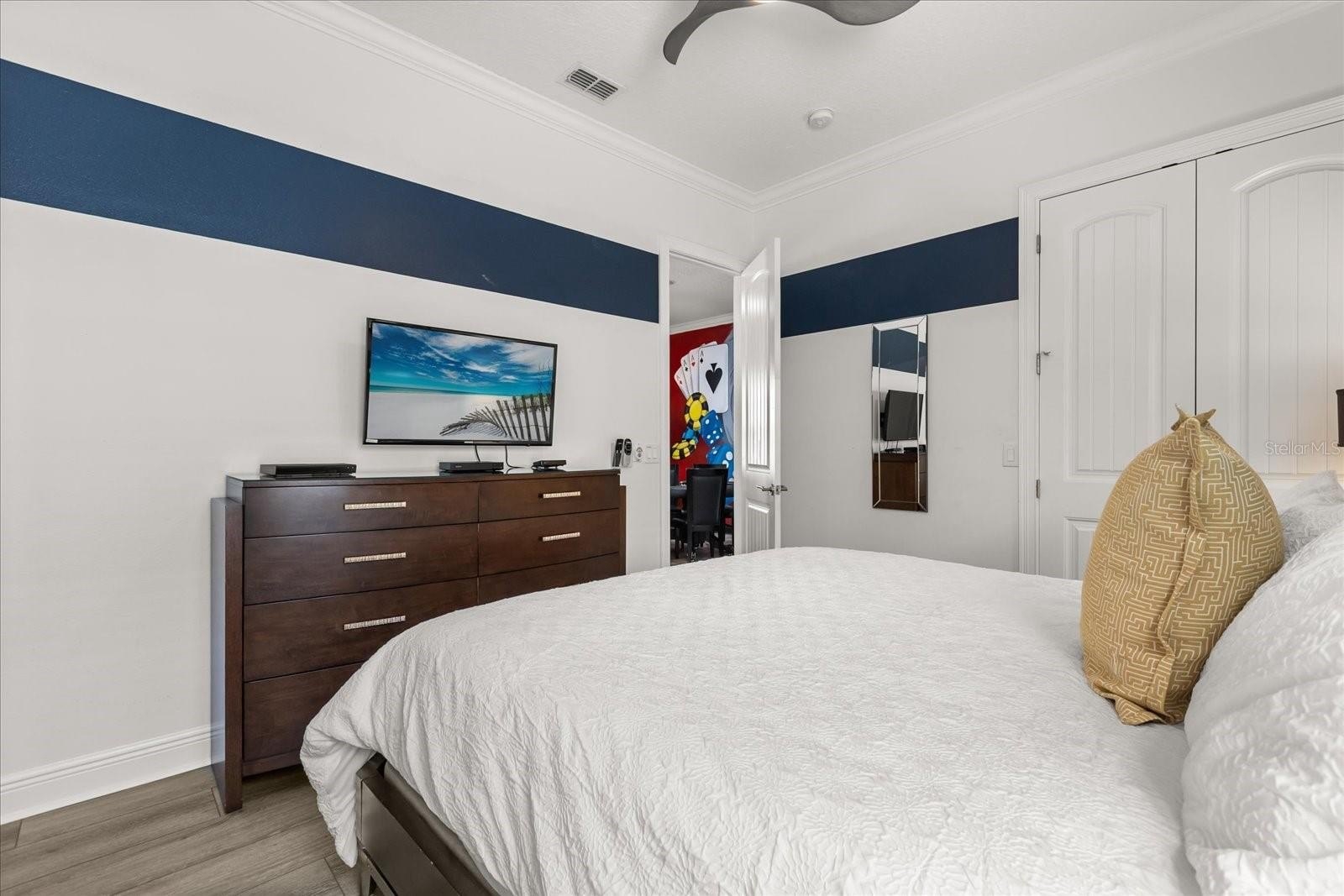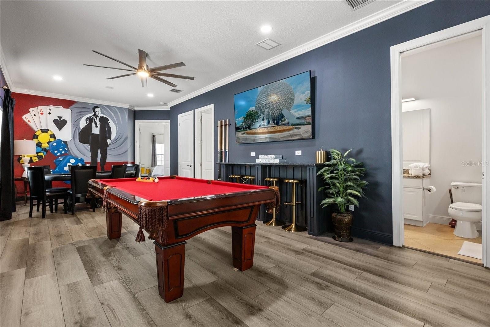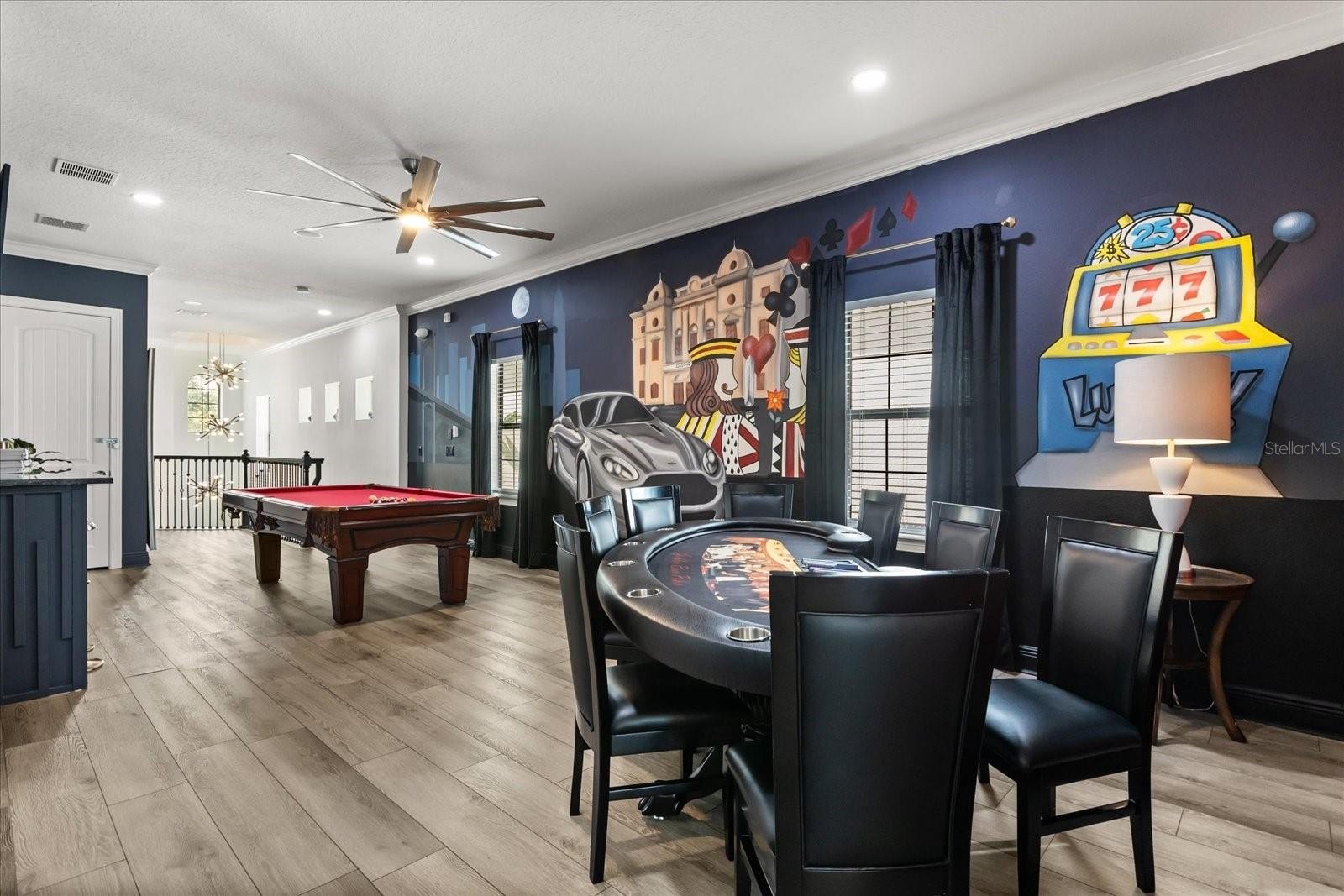 REUNION RESORT MEMBERSHIP HOME! Amazing POOL and VIEW in Reunion and fully themed and optimized home comes with it! No better floor plan for Rental Potential! 2 Master Suites-Check, Largest Pool in Reunion for Lot Size measuring 27 feet long and 19 feet wide coupled with Unforgettable Golf Course Views- For those looking for a rental home, investment home or a great family get away home this is it! This home has had over 100K in upgrades, including new flooring, theming and gaming which makes it a rental superstar. Welcome to 915 Golden Bear on “the street of GIANTS” in Reunion Resort. This 5 bedroom 5 1/2 bath home really does have it all. There is no need to go to a theme park, fight the lines, swim in some hotel pool, this home is your PERSONAL RESORT. The large open floor plan is filled with gathering spaces on both levels of the home. The main living room on the first-floor spills over into spectacular golf course views and an infinity edge pool. Once on the paver patio there is an outside kitchen with multi lounging spaces for everyone. The home sits slightly higher than the golf course and gives the property a stately feel. Theming in this home CANNOT BE understated. A MARIO BROS themed bedroom, a JUNGLE themed bunk room, an adult LOFT area with that “JAMES BOND” feel including a custom 915 Golden Bear Poker Table! You want more? The garage makeover calls out to one of the most popular attractions in the area, TRON. Toddlers, School Age, Tweens, Teens and those who never want to grow up can have an experience to call their very own at this property. Cap it all off with a private balcony off the master to escape from it all! The home is being offered furnished, and property manager information is available. Reunion Resort has everything you want in a community including 3 signature golf courses, world class dining, waterparks, lazy river, water slides, firework viewing areas, tree lined streets, dog park, playground, driving range, golf simulator, member events, in-resort shuttle service, and event space. Live the resort lifestyle like a VIP. ¡¡¡NO OTHER RESORT IN THE AREA HAS THIS!!! Click the virtual link and book a visit today Don't gamble on this one being around long. (Rimshot)