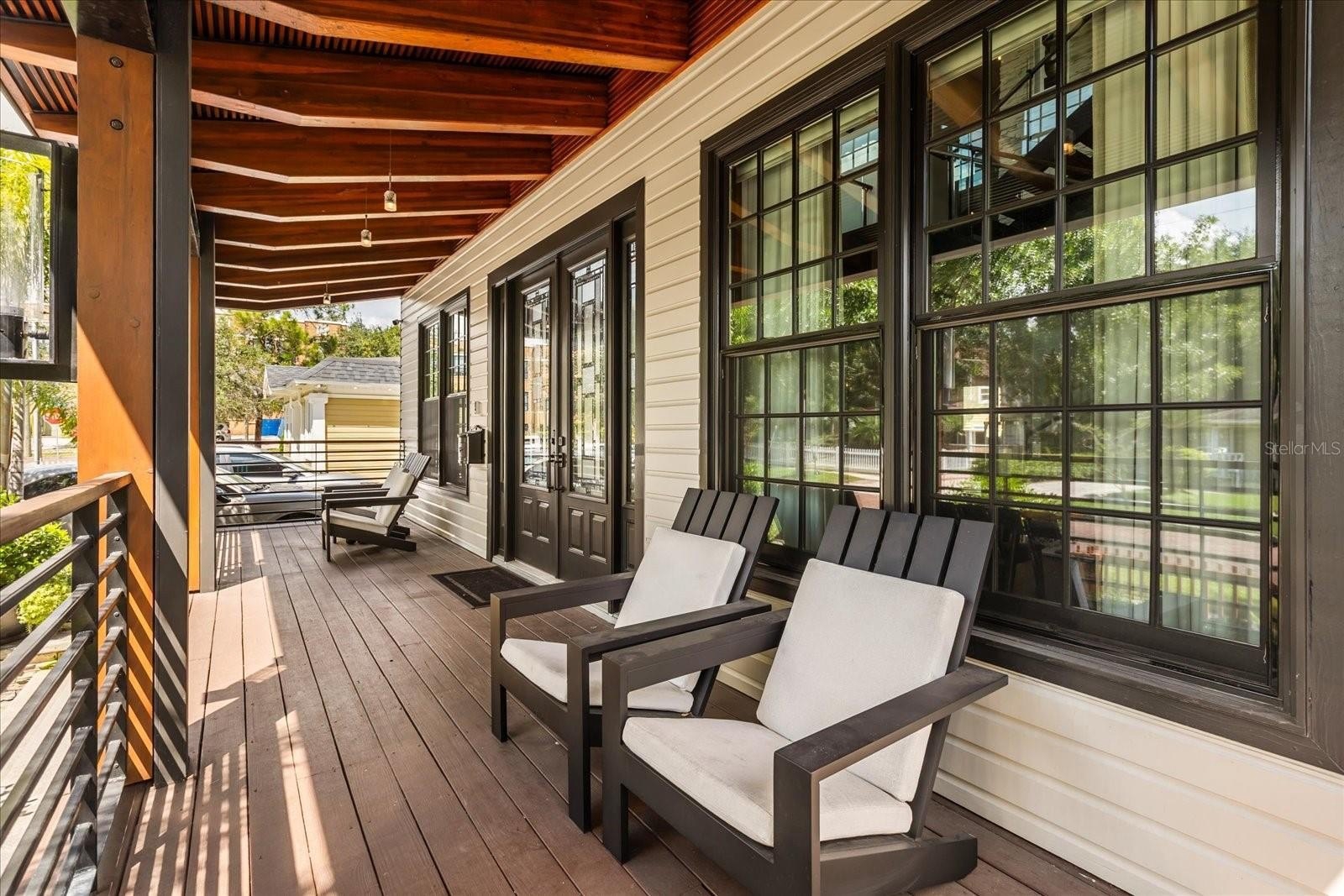Thornton Park's best kept secret is this stunning compound's home with a total of 4-bedroom, 4.5-bath designed by renowned architect Tom Dordevic and built in 2010 as a modern interpretation of early Florida Cracker-style architecture, with newly added interior features by Winter Park’s Angela Neel. Elevated for passive cooling, the home beautifully blends historic character with contemporary design through natural materials, thoughtful proportions, and abundant natural light.