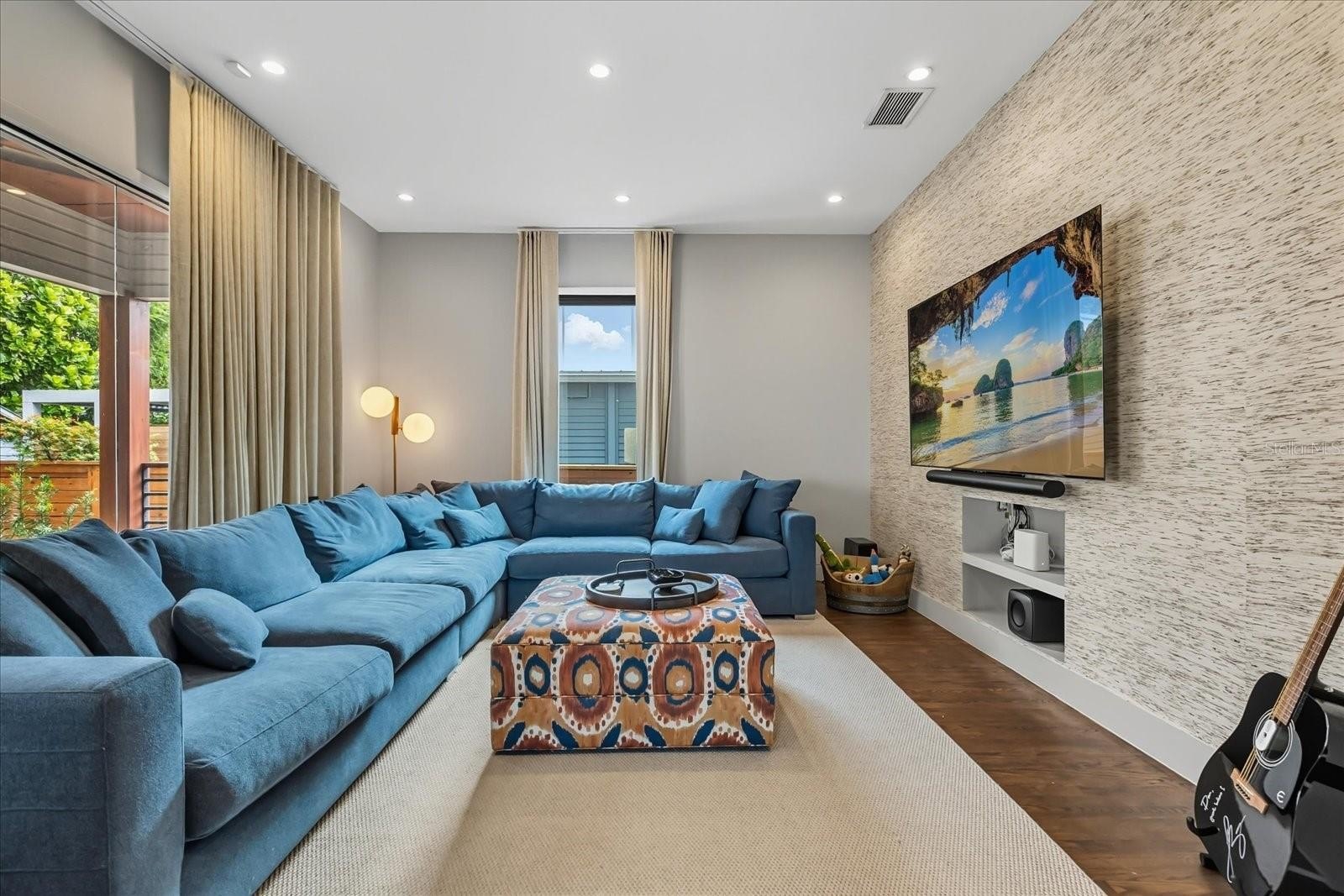 Step outside to the private and secluded back area and enjoy an over-sized porch and outdoor overlooking the newly fenced private backyard or ascend to the expansive rooftop deck with unparalleled downtown Orlando skyline views. A detached air conditioned three-car garage with pebble tech flooring, and EV charging includes a 1-bedroom, 1-bath detached guest suite at 726 square feet has a full kitchen, washer/ dryer, full bathroom and balcony—perfect for visitors or rental income.