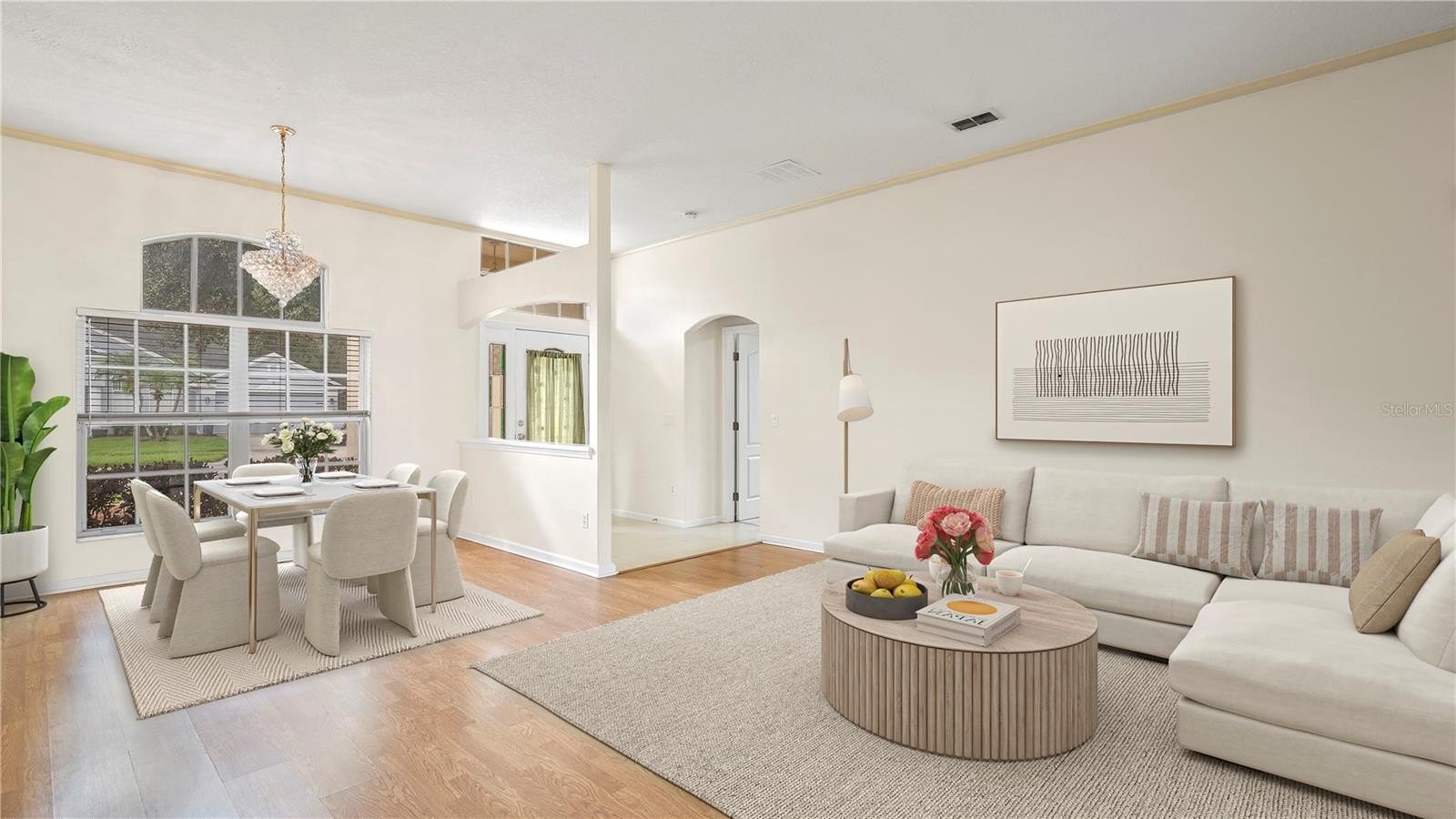 Welcome to this beautifully appointed 4-bedroom, 3-bath home, complete with a versatile bonus room off the master—perfect for a nursery, home office, or personal gym. A bright sunroom just off the living room adds extra space for relaxing or entertaining. Situated on a desirable corner lot in a prime location near top-rated A-rated schools, UCF, and just minutes from shopping, dining, and a movie theater, this home offers both convenience and lifestyle. Enjoy exceptional functionality with a 3-car garage featuring extensive overhead storage, a newly fenced backyard, and well-maintained major systems for peace of mind. Inside, the generous layout includes a spacious family room and plenty of ceiling fans throughout for added comfort. The formal dining room is accented by a sparkling crystal chandelier, adding a sophisticated touch to your gatherings. The kitchen is a standout, equipped with modern stainless steel appliances (only 2 years old) and ample cabinet space to meet all your culinary needs. Unwind in the private master suite, complete with an updated shower, Bluetooth speakers, and a luxurious jacuzzi tub with jets for a spa-like retreat. This move-in-ready home blends comfort, functionality, and thoughtful upgrades—don’t miss your chance to make it yours!