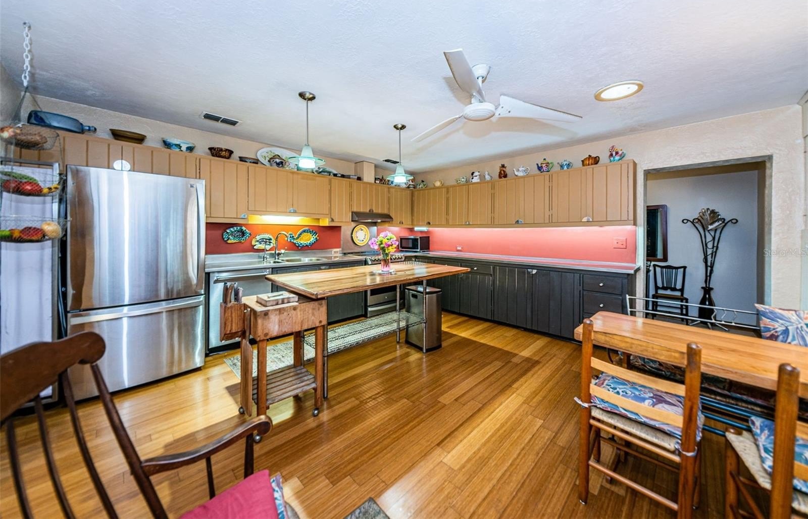 Spanning 2,300+ square feet, the home features a thoughtful layout filled with character and warmth. Off the living room, a charming breezeway is perfect for your morning coffee or a quiet read and provides easy access to the spacious front patio, an ideal spot for unwinding, entertaining, or simply enjoying the peaceful surroundings.